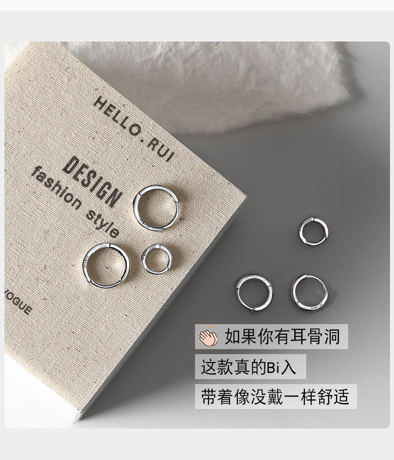 S999 pure white earrings for women 2025 new hot style ear piercing high-end ear bone nails plain hoop earrings earrings earrings