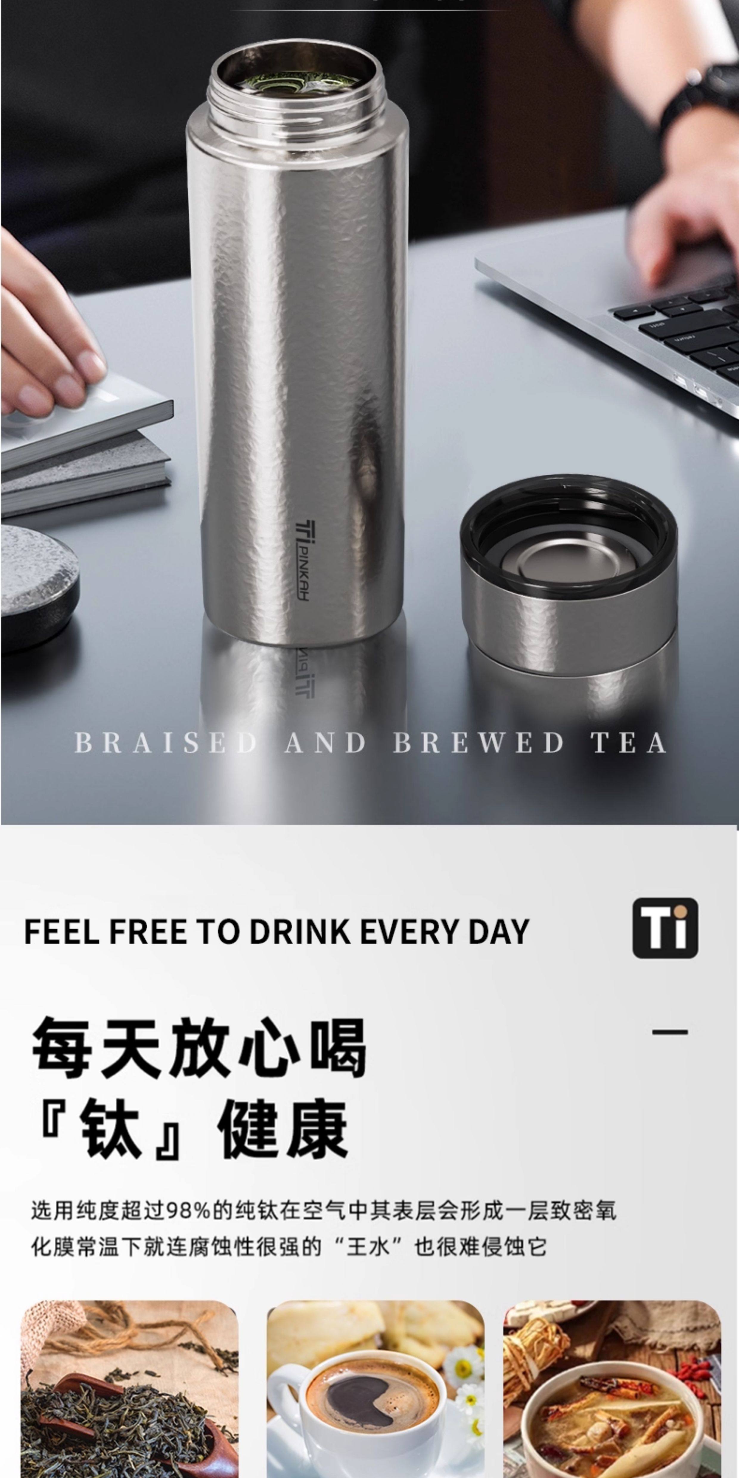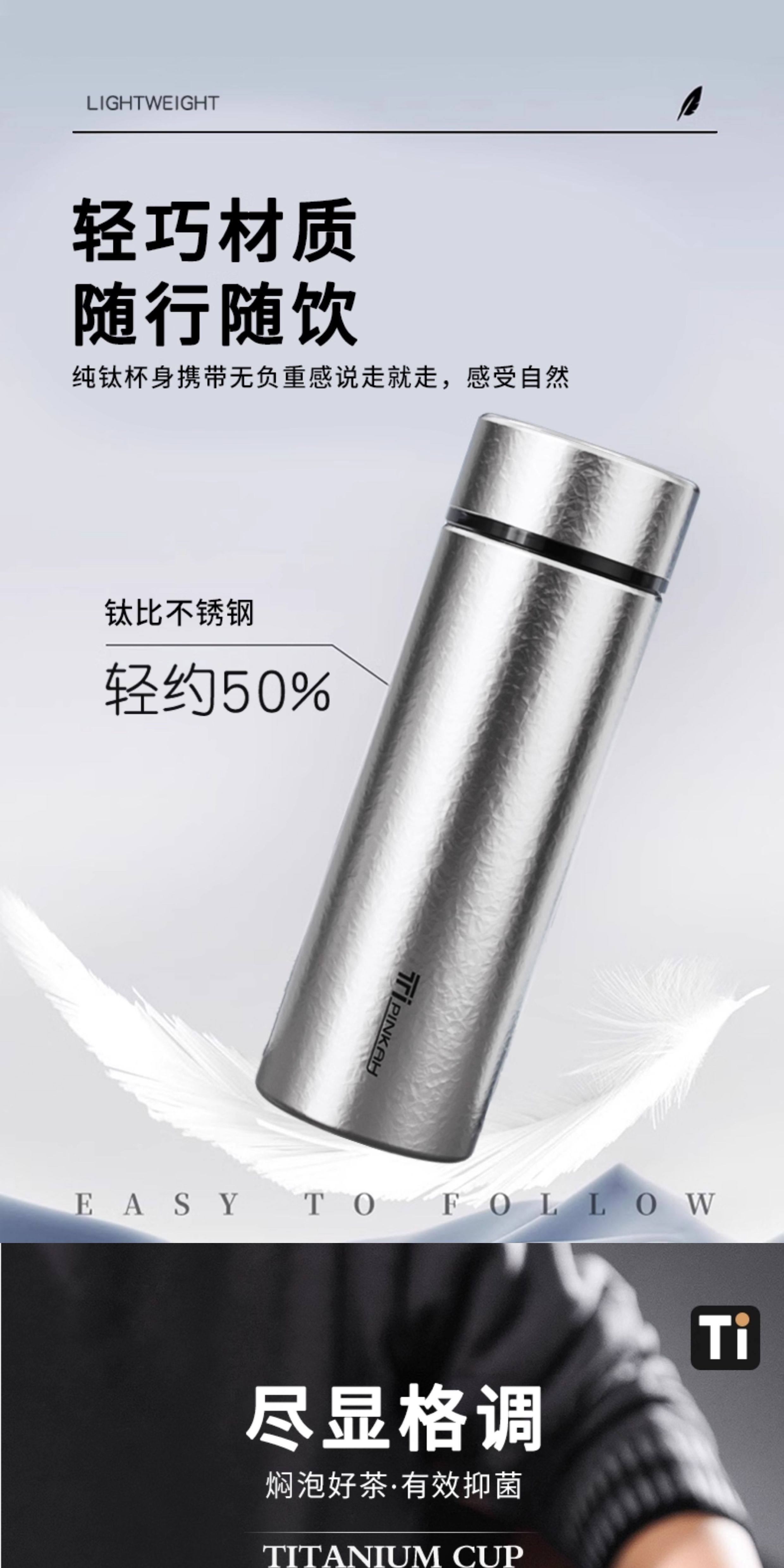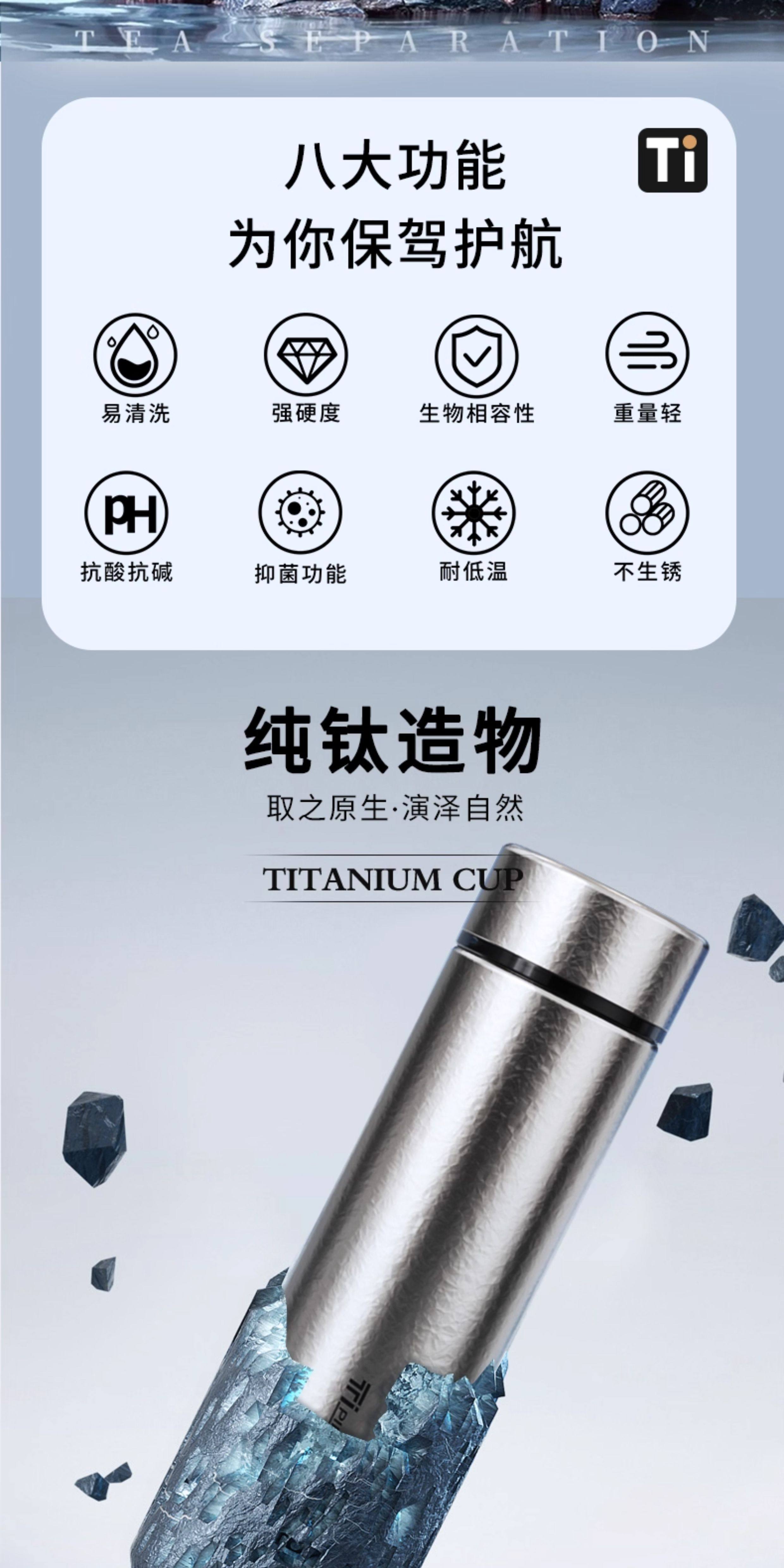Pure Titanium Thermos Cup, Car-Mounted Titanium Cup, Double-Layer Ultra-Light Portable Water Cup, Office Tea Cup, Gift Box