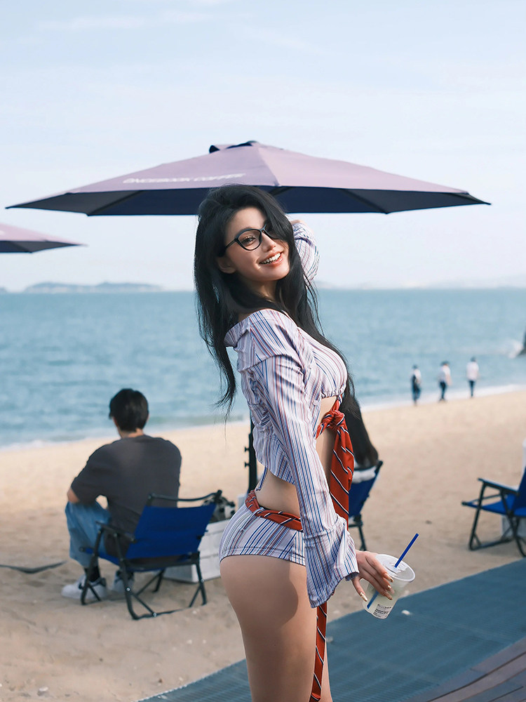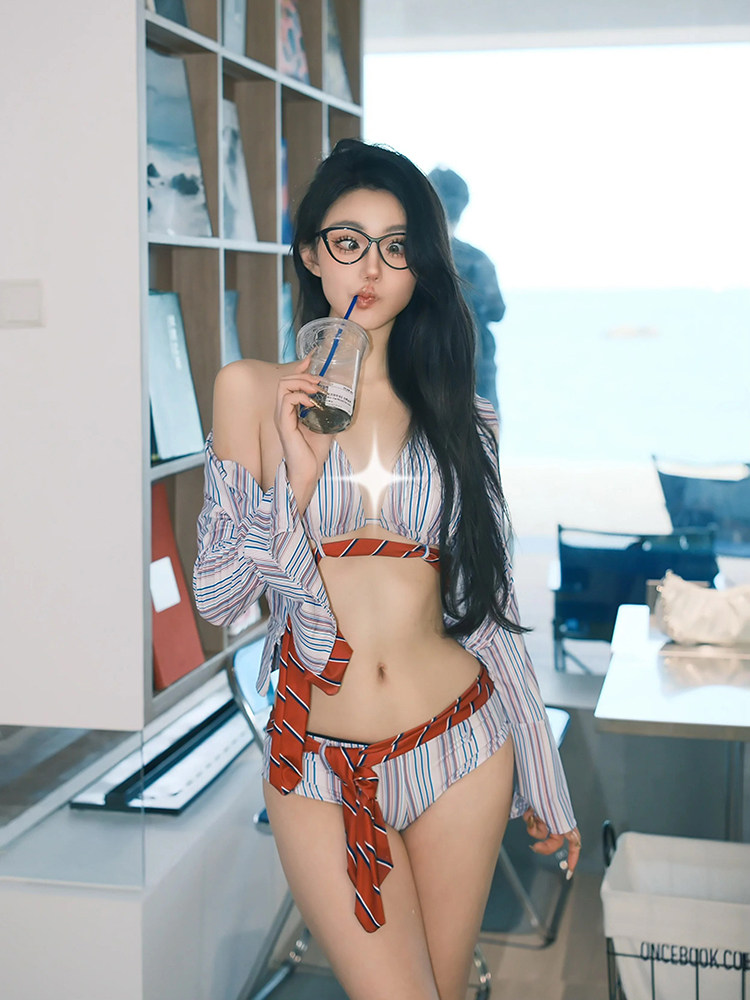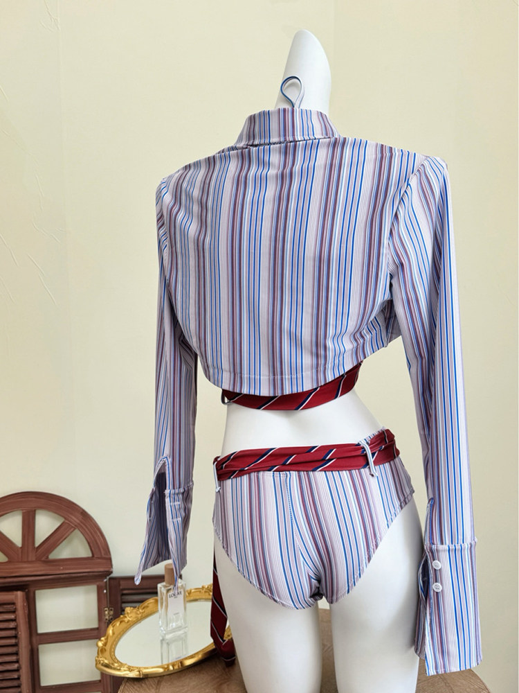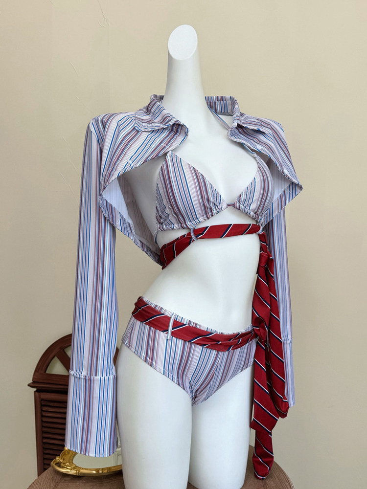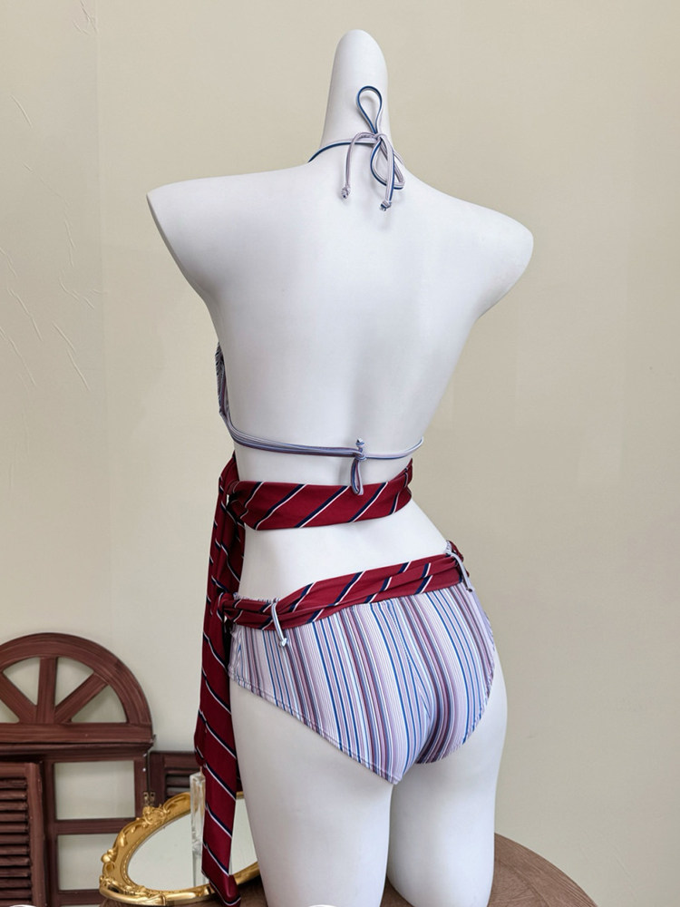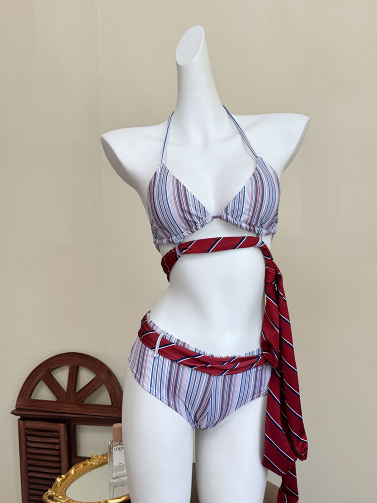 Swimsuit for Women 2026 New Style High-End Sexy Retro Striped Two-Piece Bikini Sexy Small Bust Pure Desire Swimwear