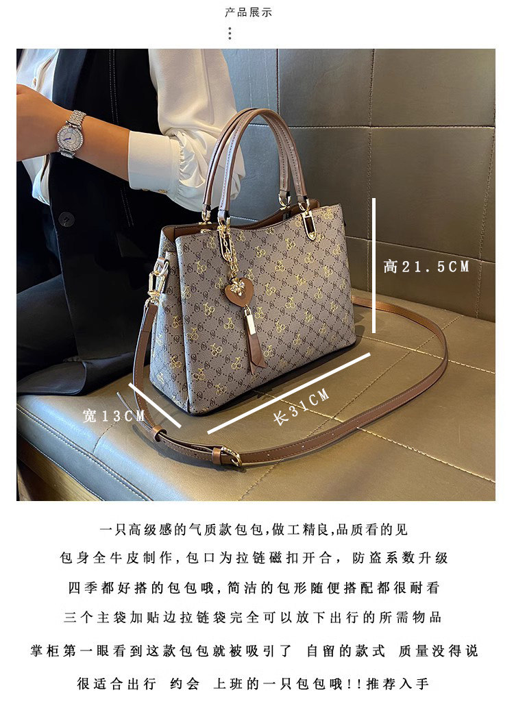 French MK&ins Genuine Leather Handbag 2024 New High Quality Versatile Crossbody Bag Women's Fashion Textured Tote Bag