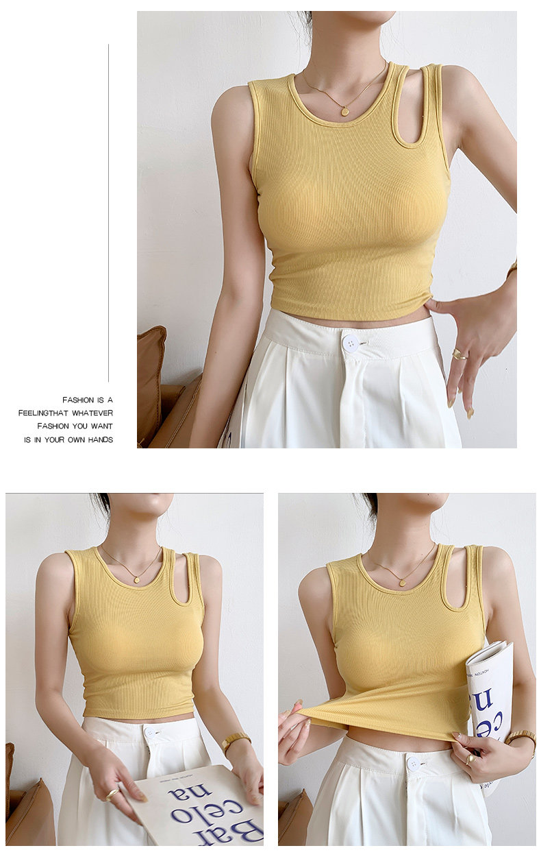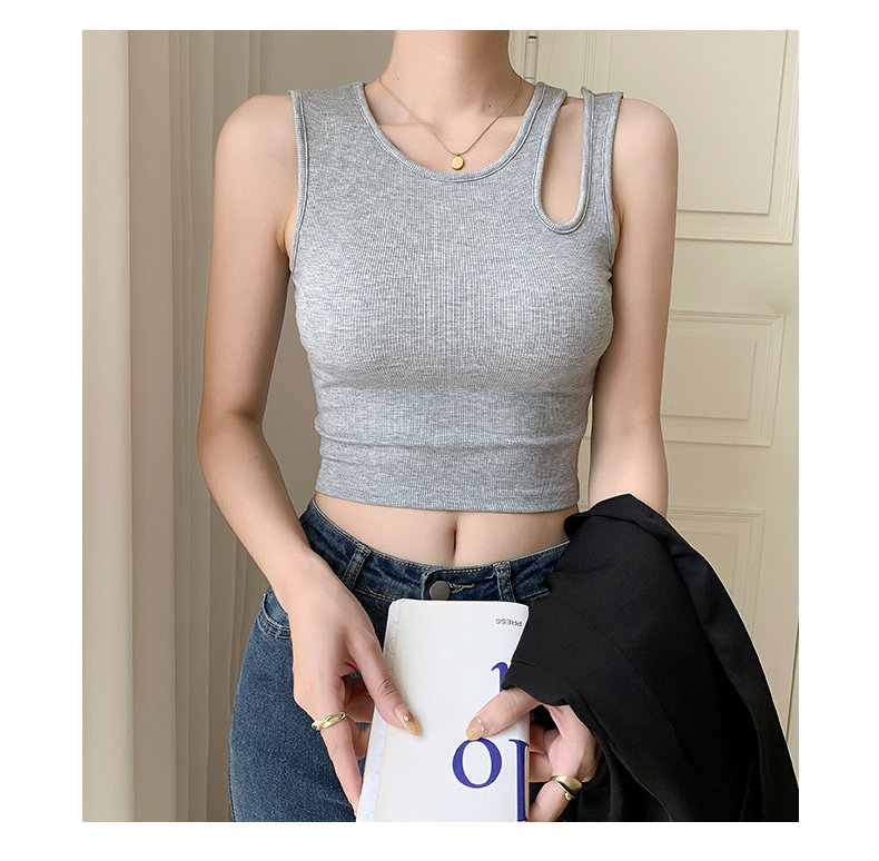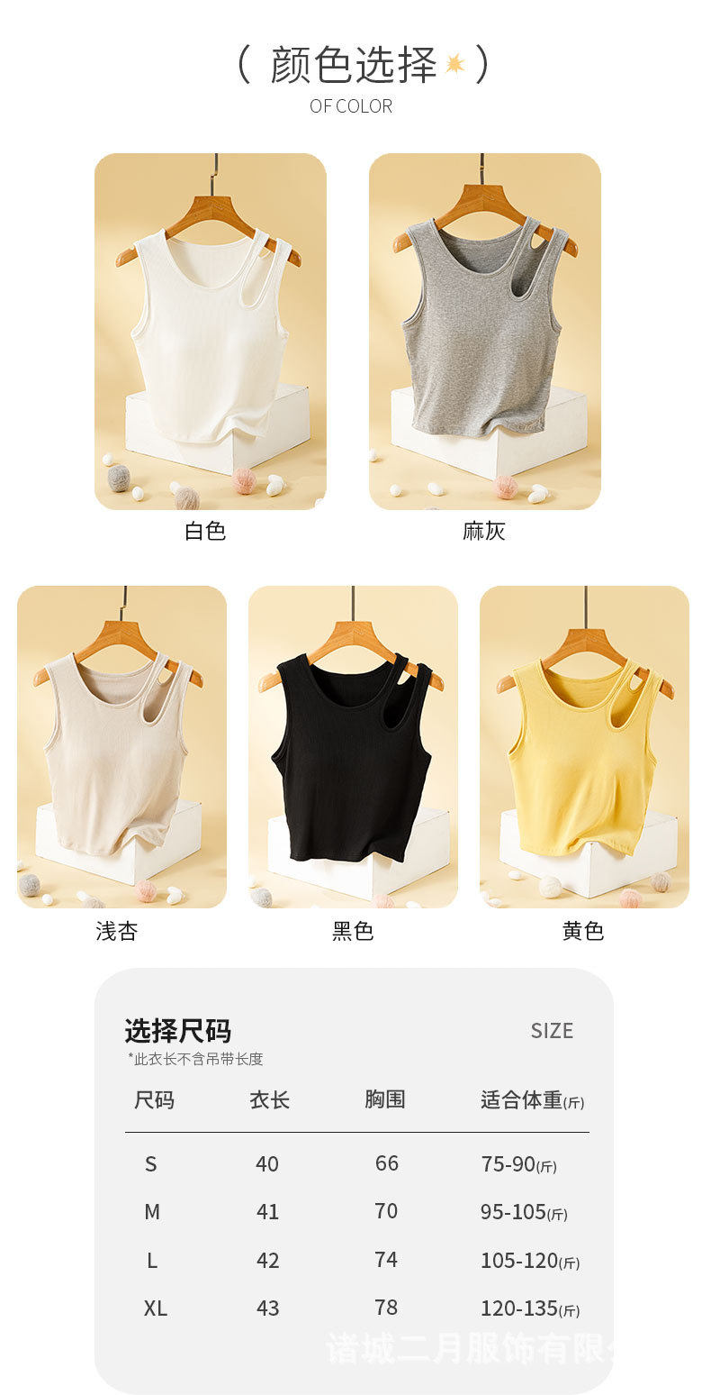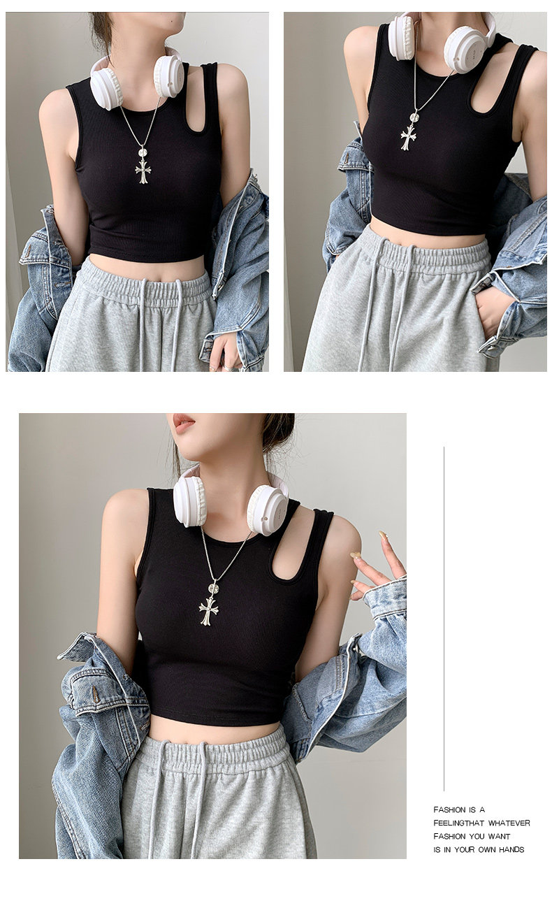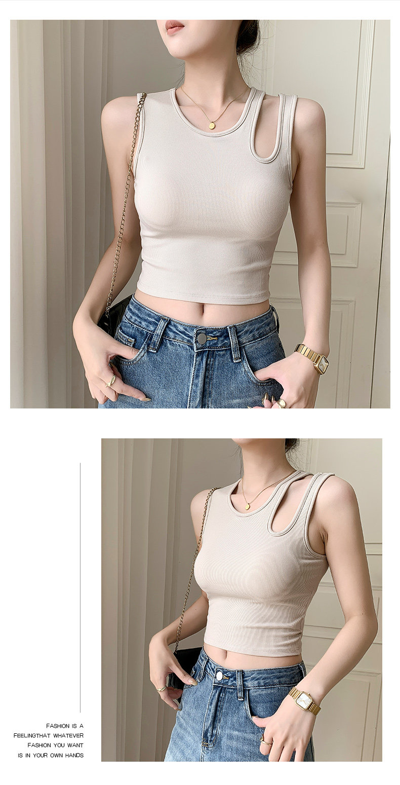 Women's 2026 Summer Hot Girl Style Irregular One-Shoulder Crop Top with Chest Pads and Hollow-Out Straps, Suitable for Wearing Outside as a Sports Tank Top