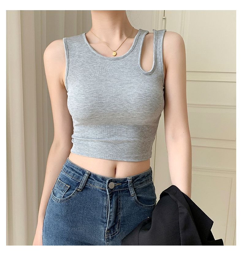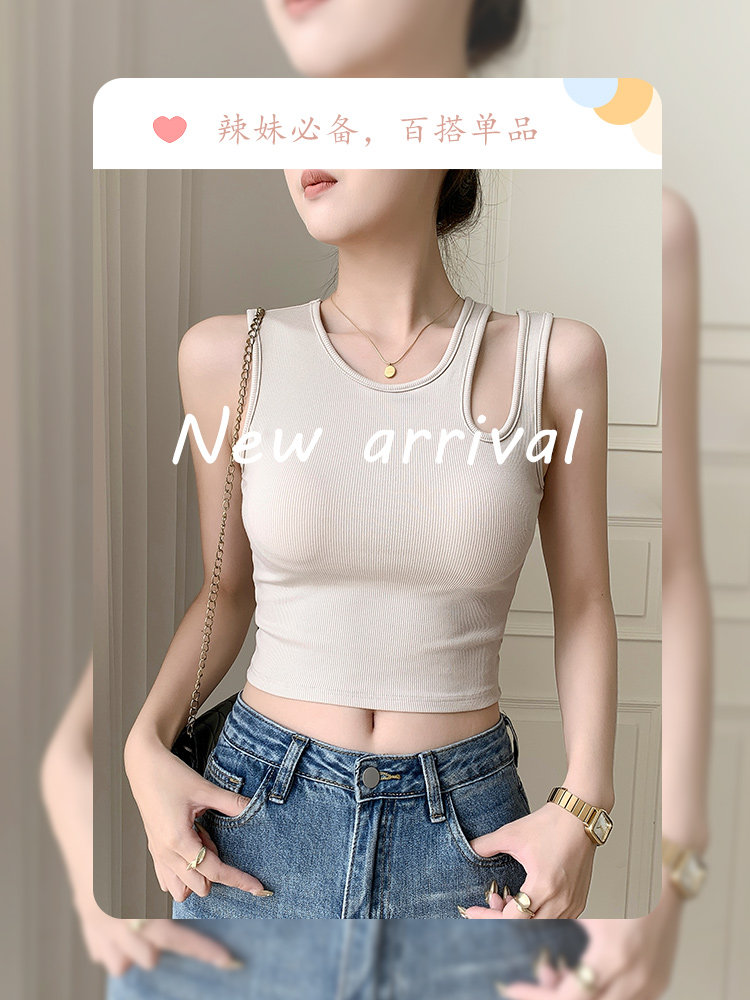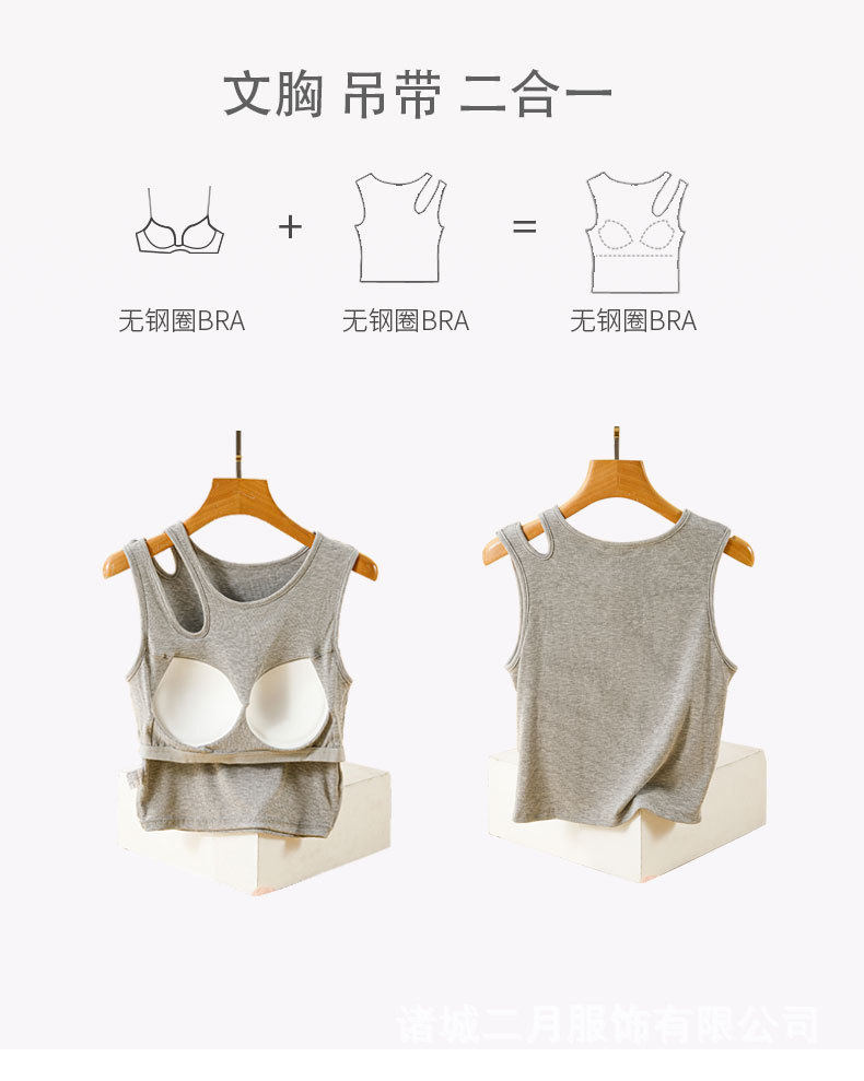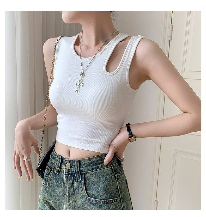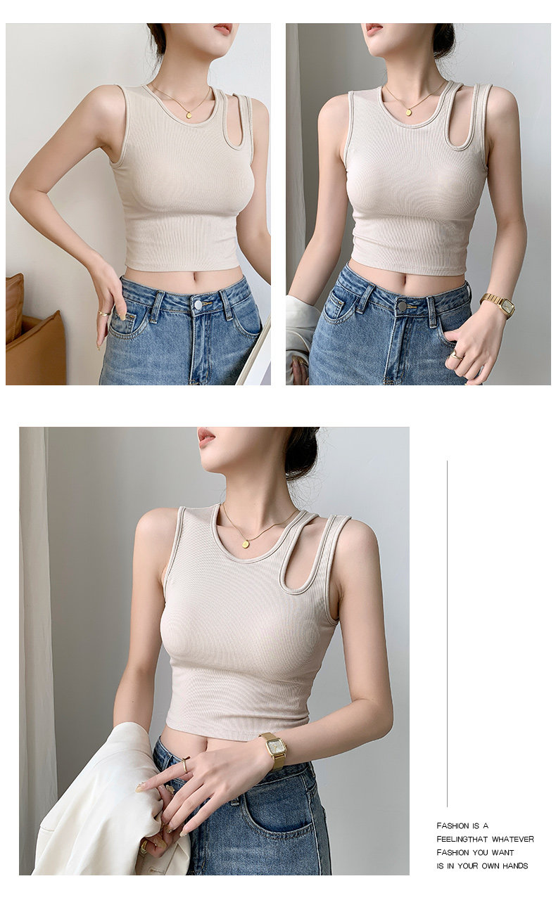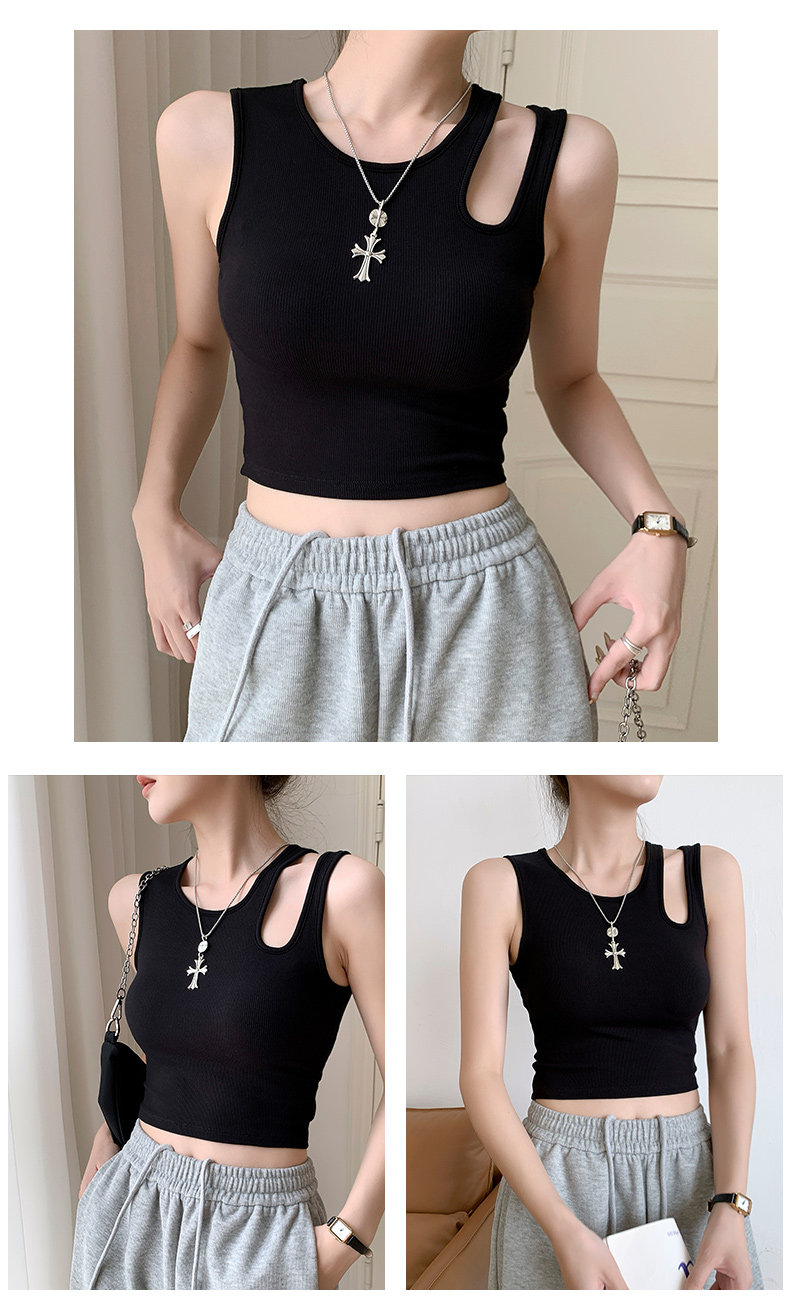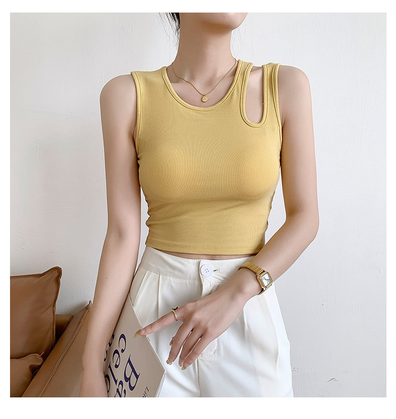 Women's 2026 Summer Hot Girl Style Irregular One-Shoulder Crop Top with Chest Pads and Hollow-Out Straps, Suitable for Wearing Outside as a Sports Tank Top