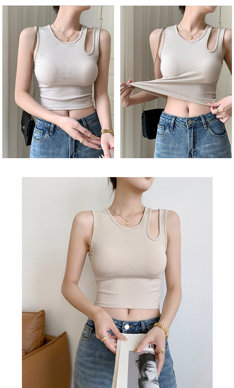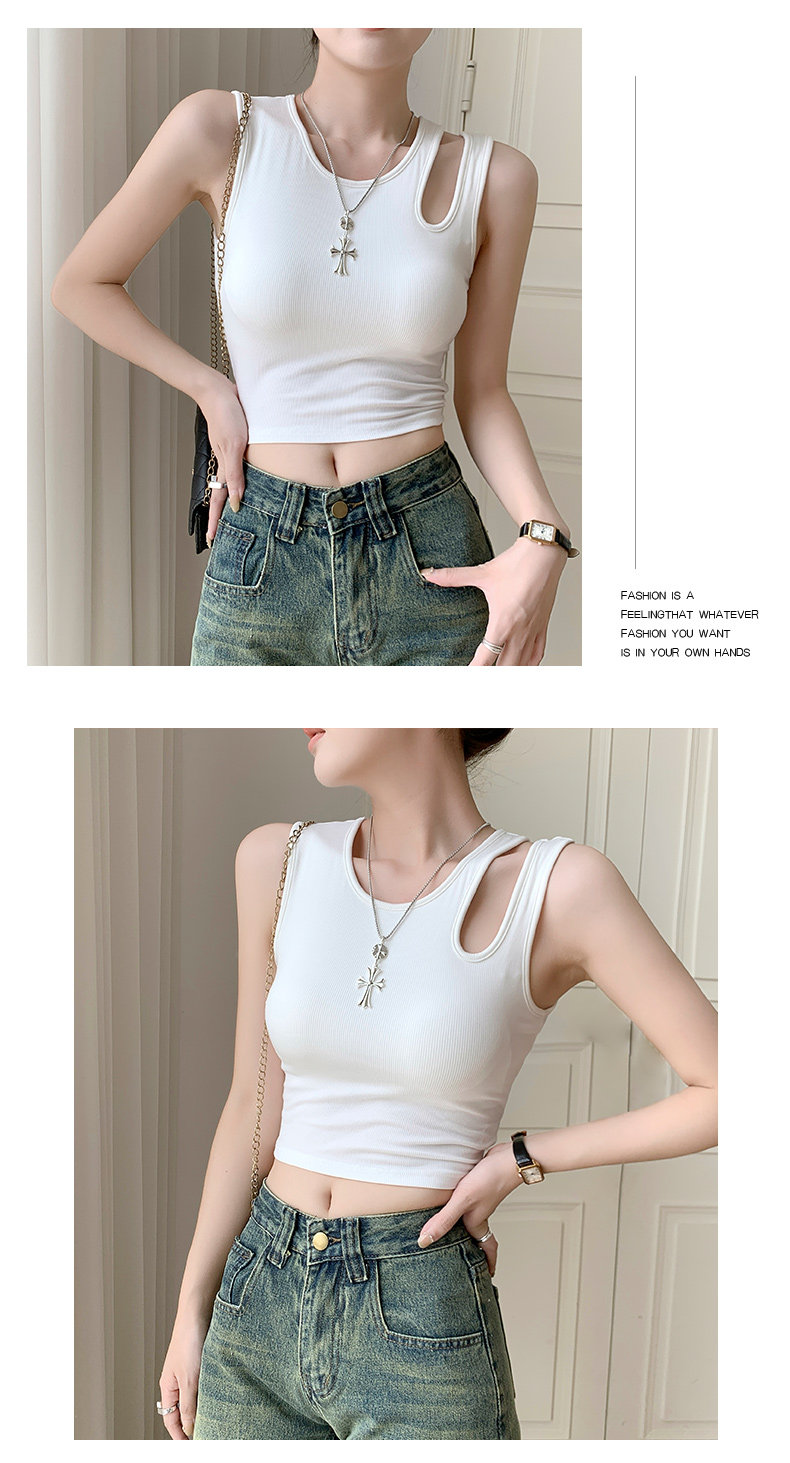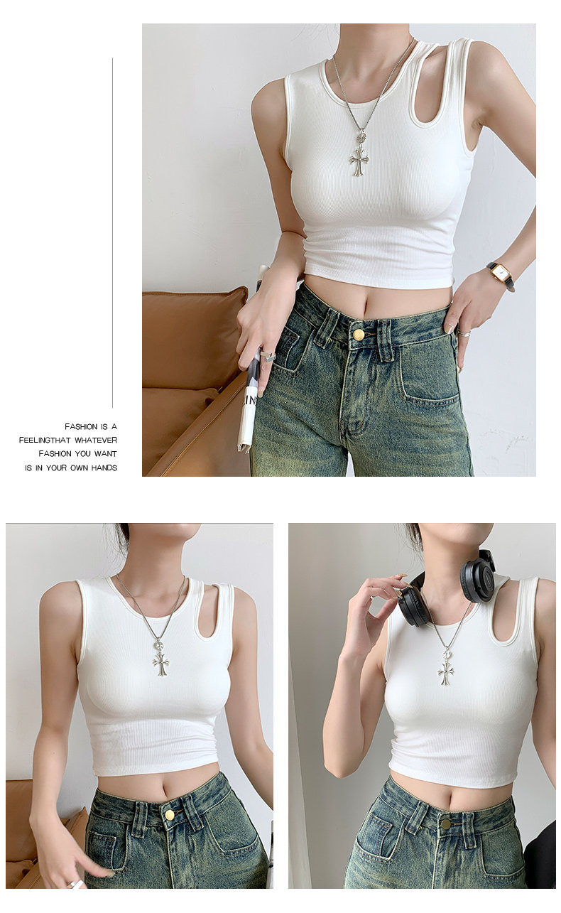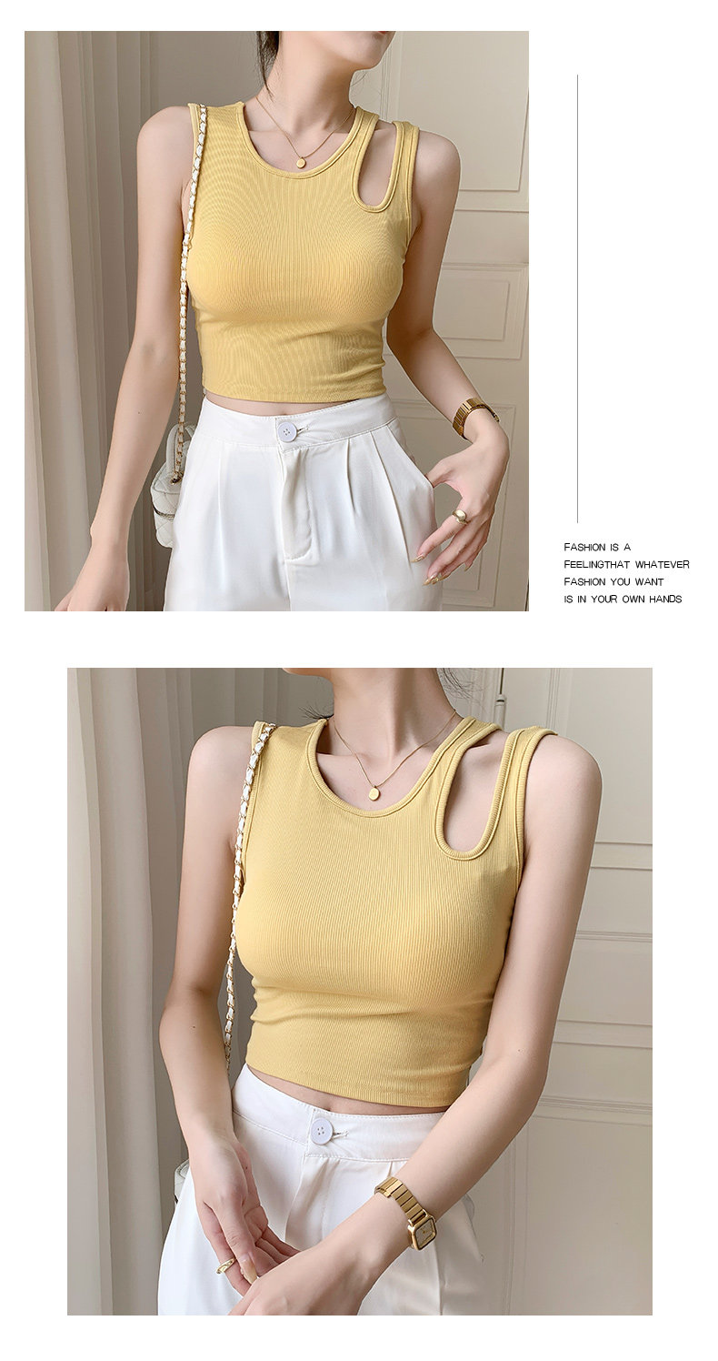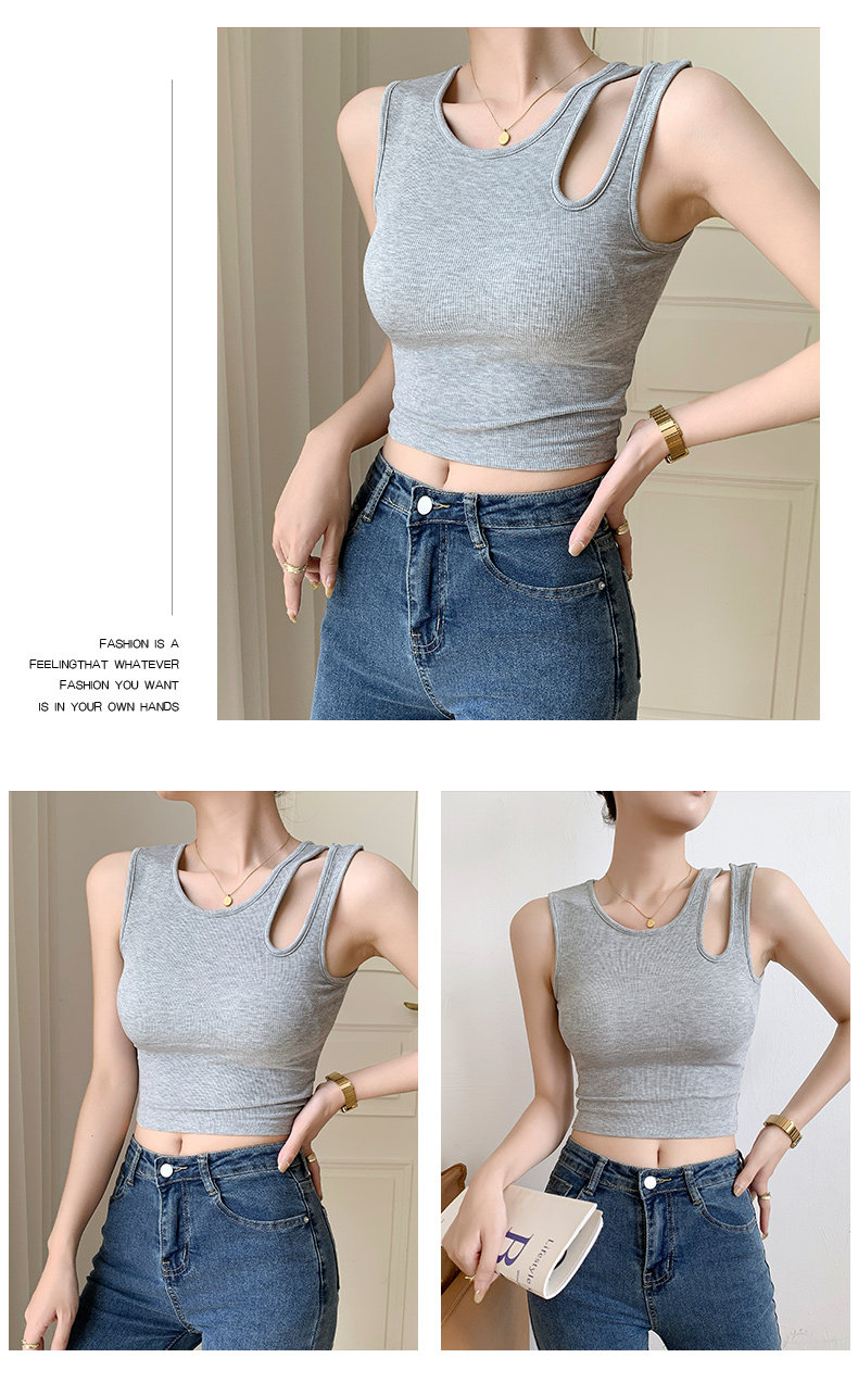 Women's 2026 Summer Hot Girl Style Irregular One-Shoulder Crop Top with Chest Pads and Hollow-Out Straps, Suitable for Wearing Outside as a Sports Tank Top