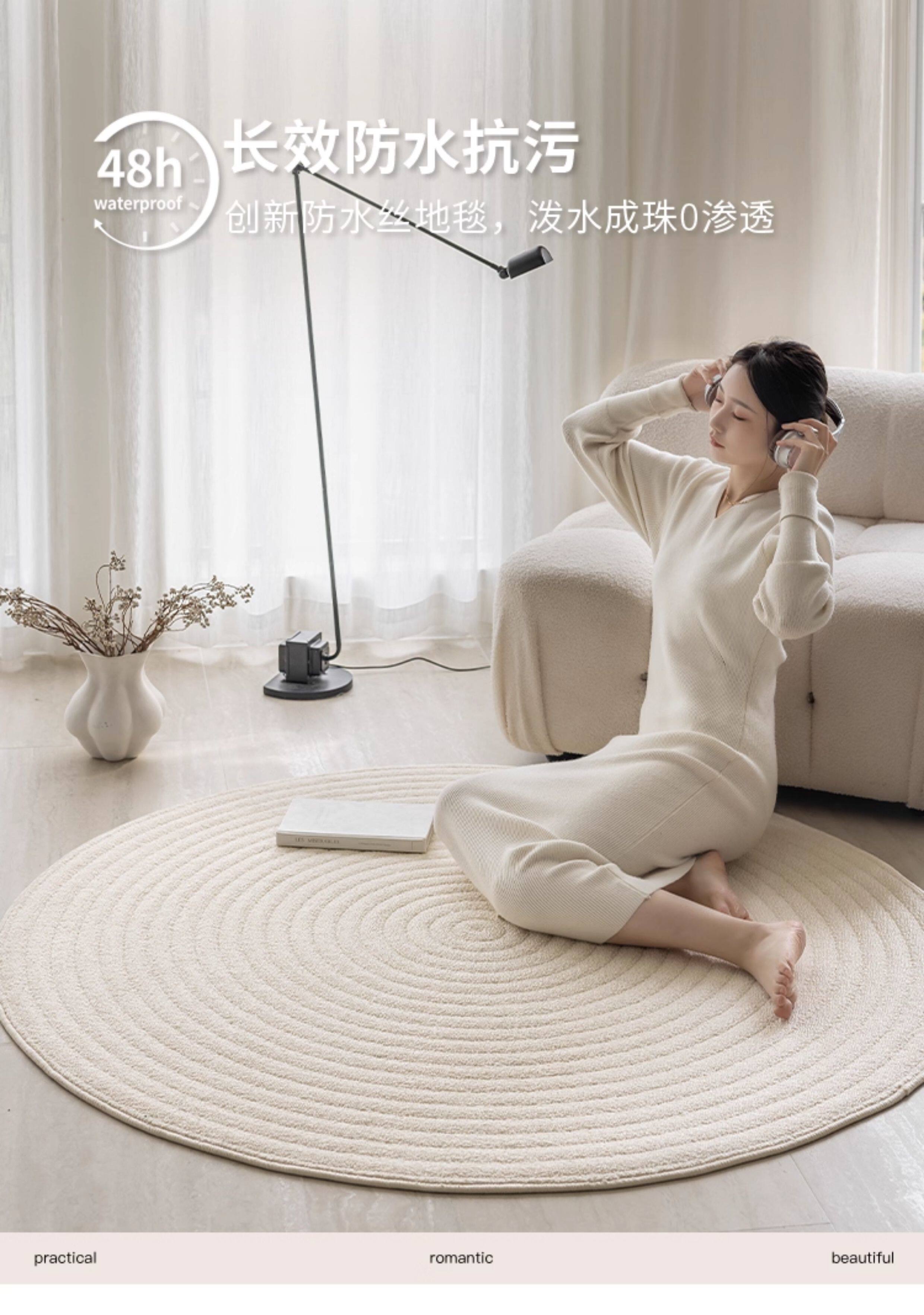French waterproof and anti-fouling round carpet, cream style living room rocking chair, sofa blanket, high-end swivel chair, makeup chair floor mat