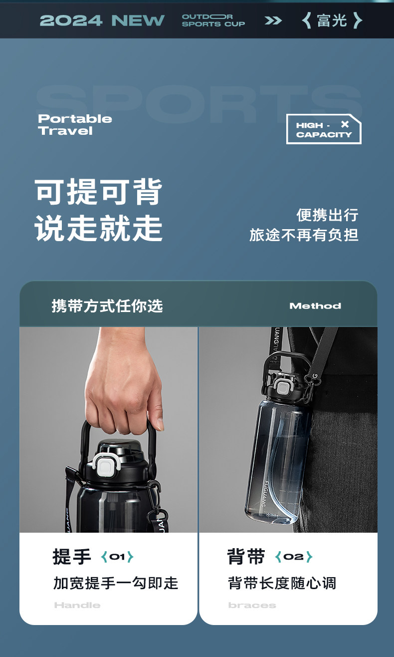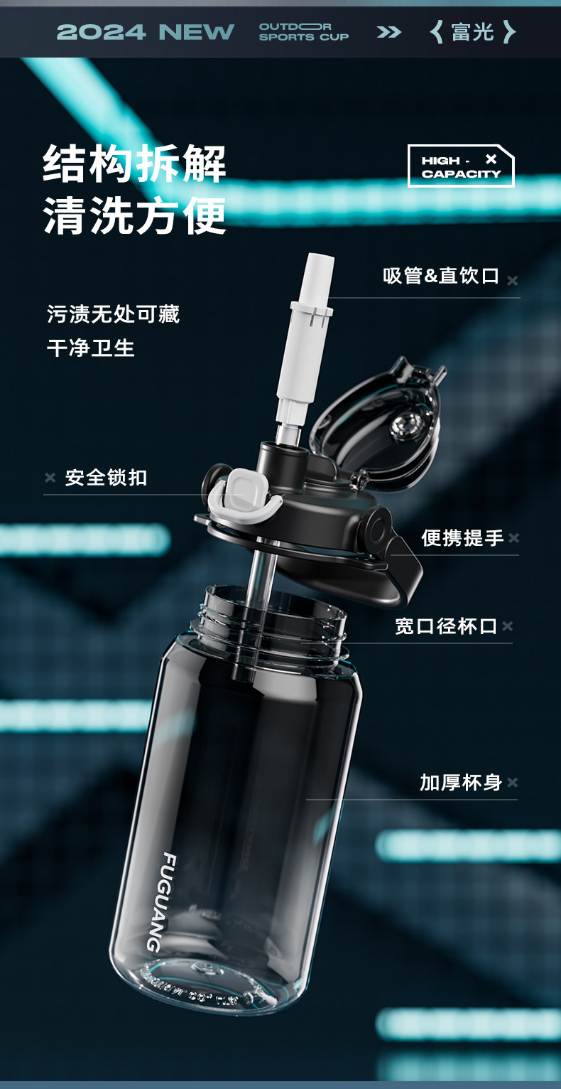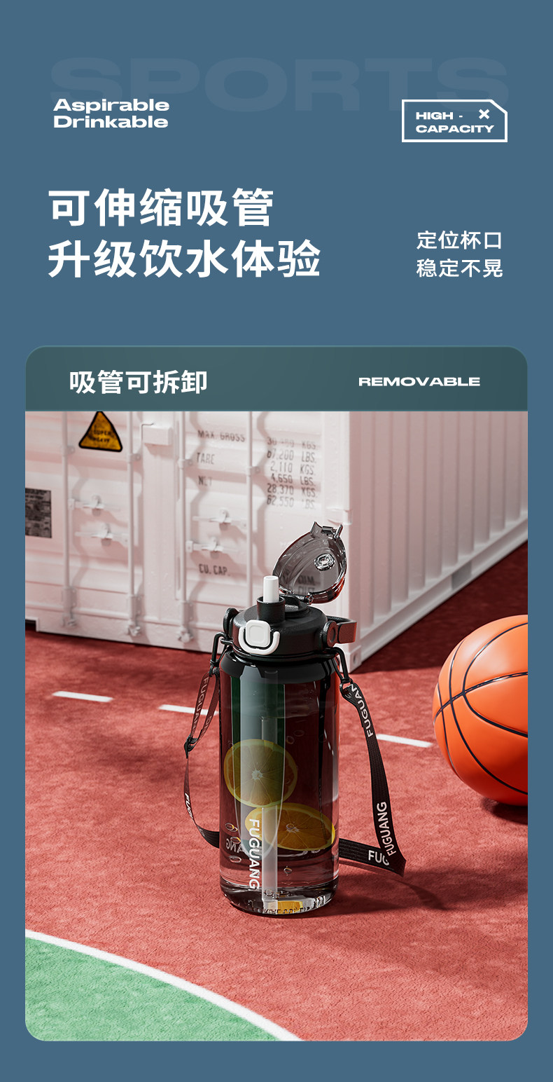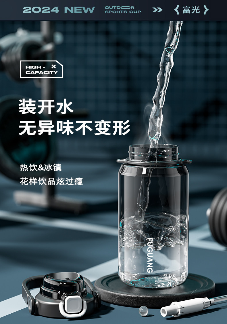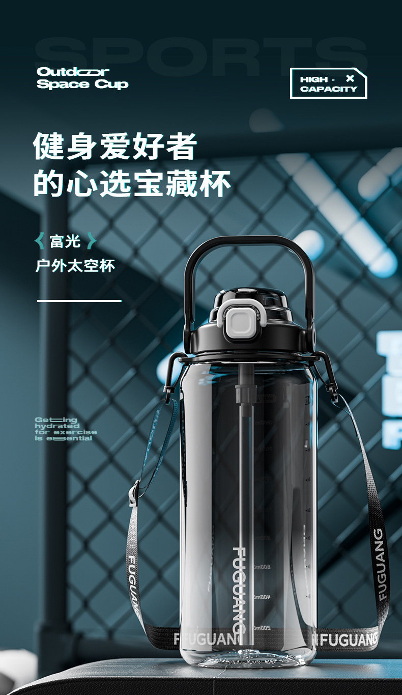 Fuguang Water Bottle for Men, Large Capacity Water Jug, Summer High-Temperature Resistant, Ton-Ton Bucket, Outdoor Portable Sports Fitness Space Cup