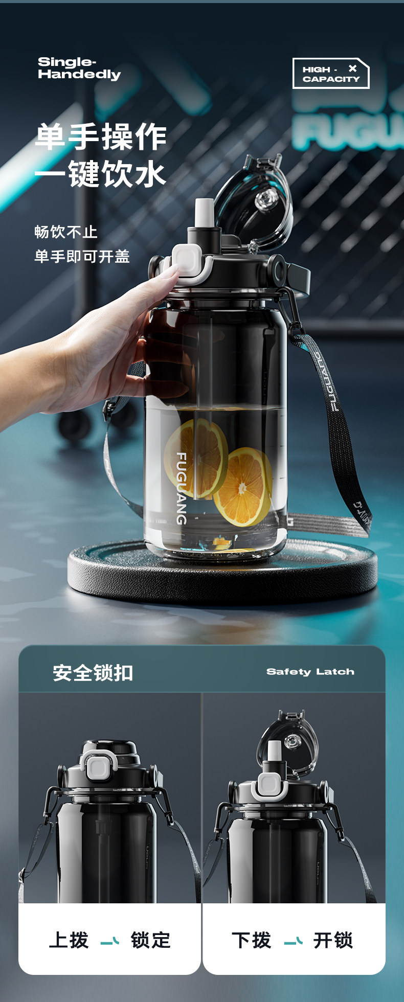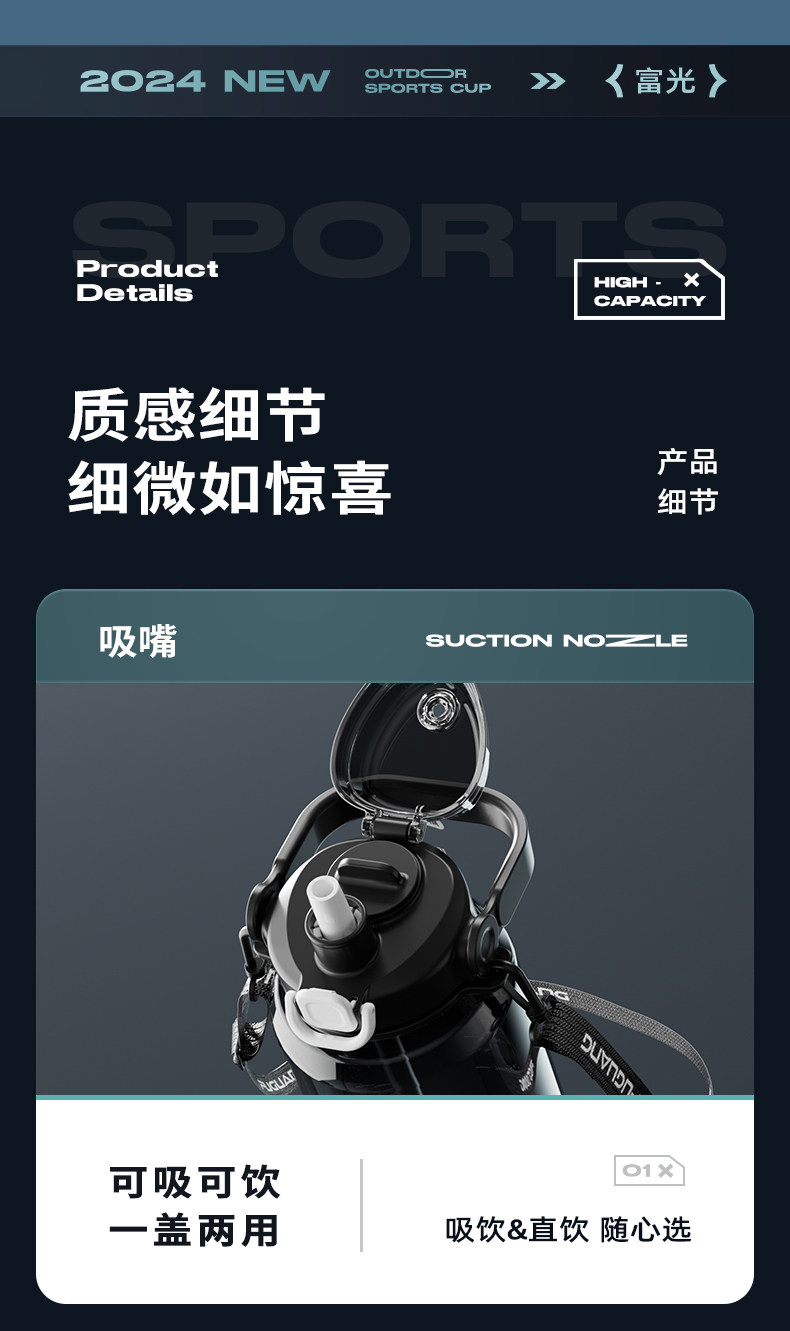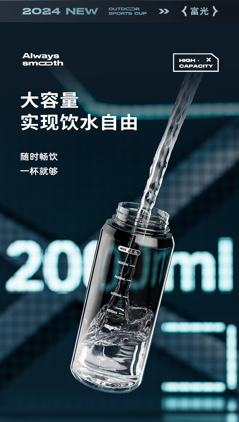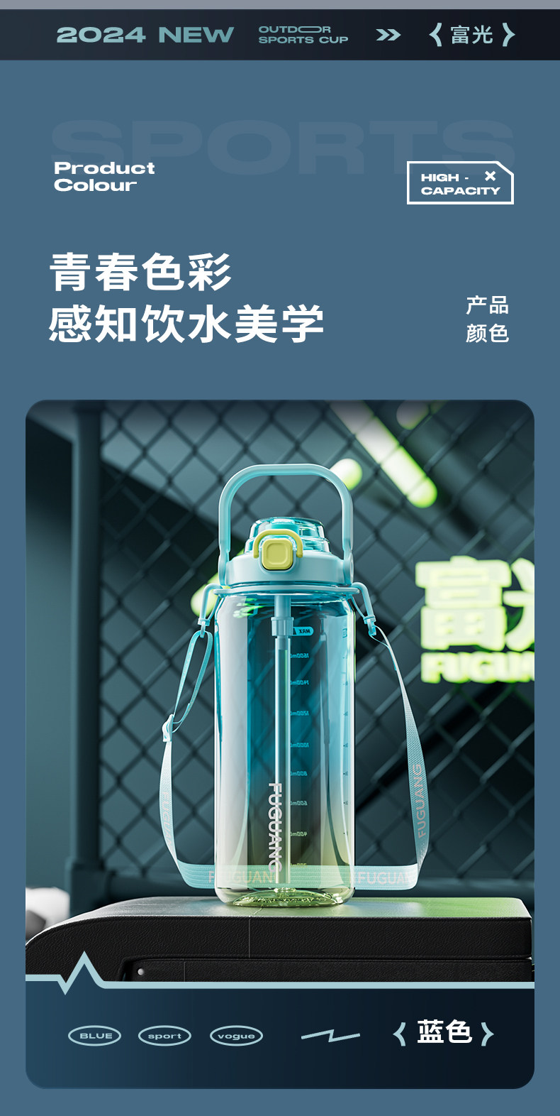 Fuguang Water Bottle for Men, Large Capacity Water Jug, Summer High-Temperature Resistant, Ton-Ton Bucket, Outdoor Portable Sports Fitness Space Cup