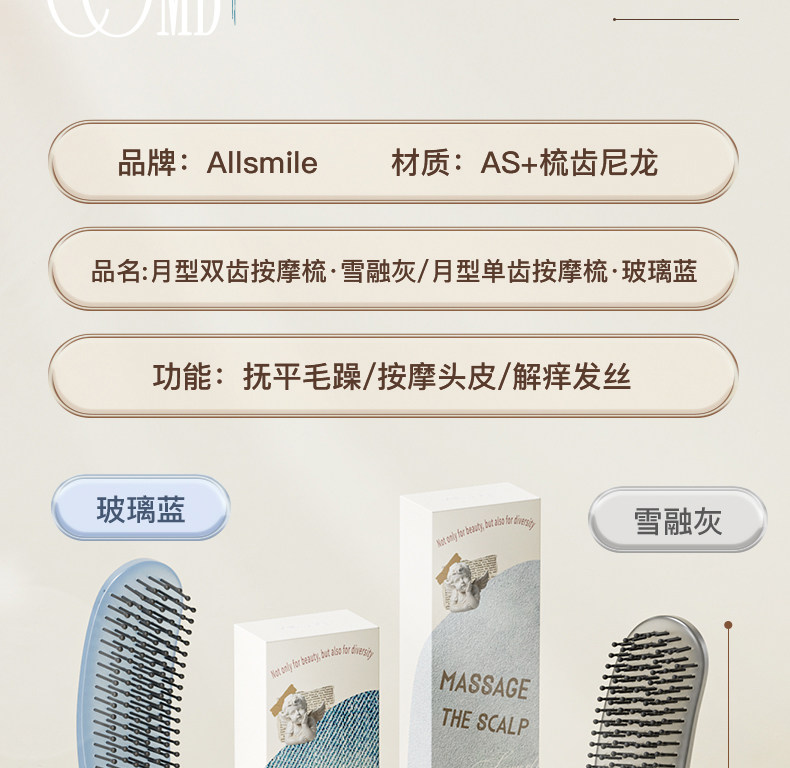 Sort by color Double Teeth Massage Comb Snow Melt Ash,Single tooth massage comb glass blue,Double-tooth comb gray + silicone hair comb,Single-tooth comb blue + quick-drying hair cap