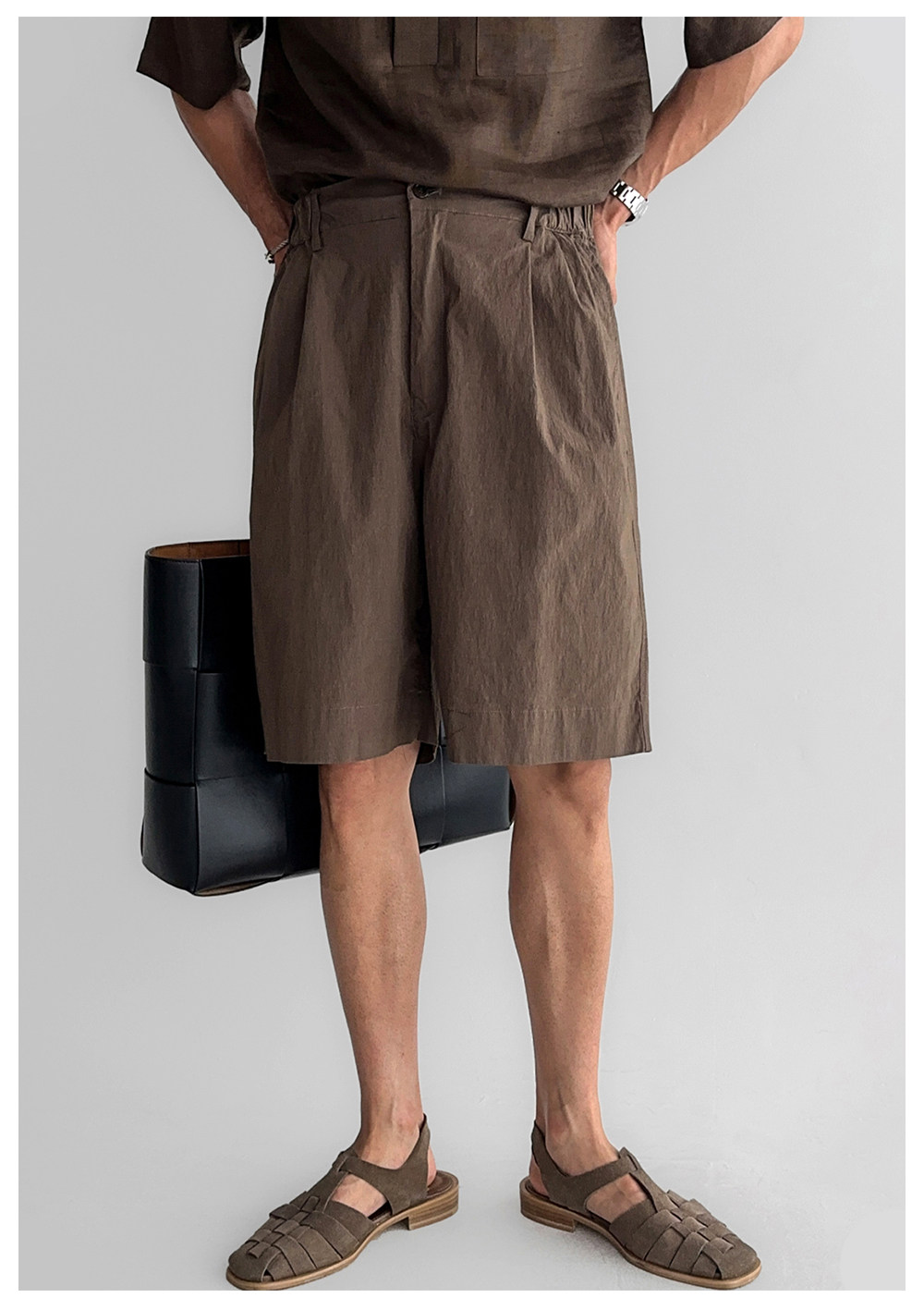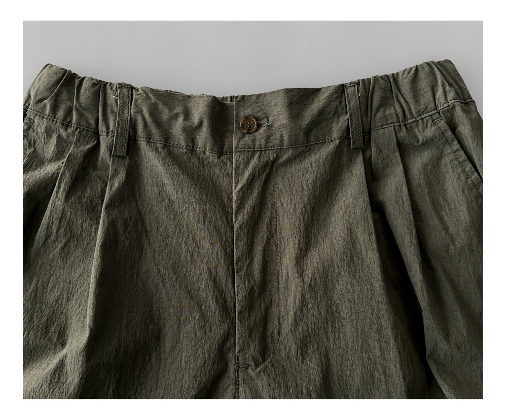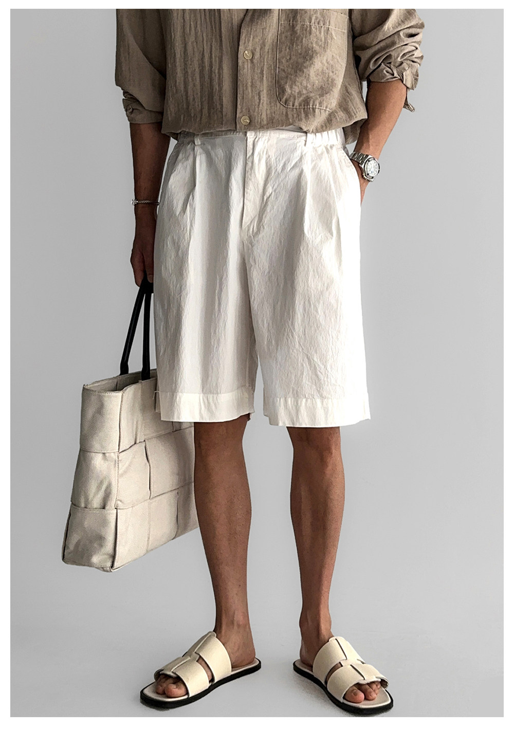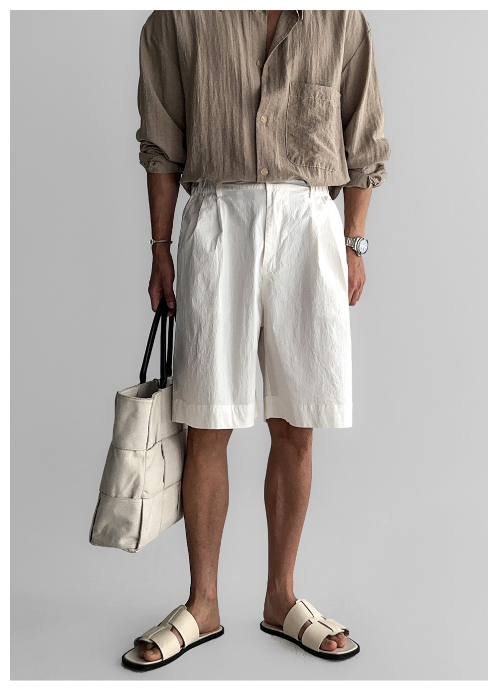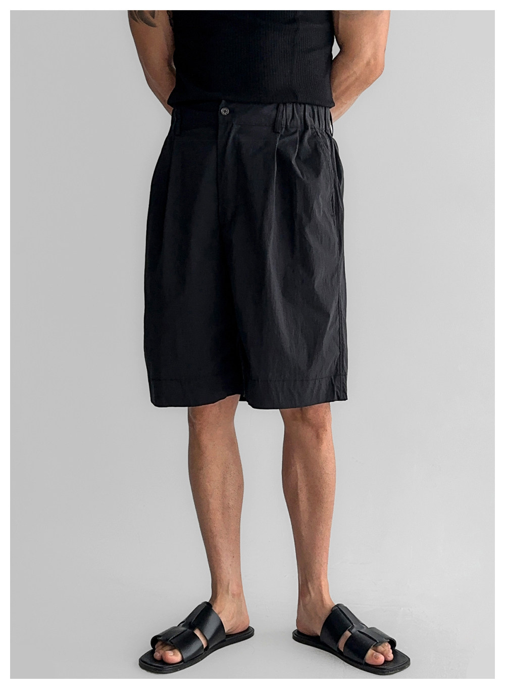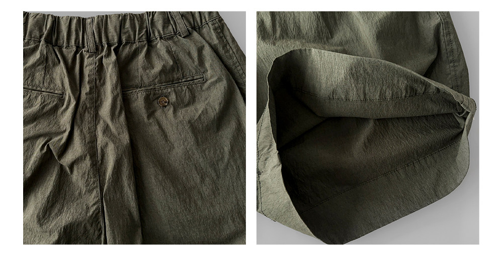 American Retro Elastic Waist Shorts for Men, Summer Nylon Double Pleated Straight Wide-Leg Knee-Length Casual Pants