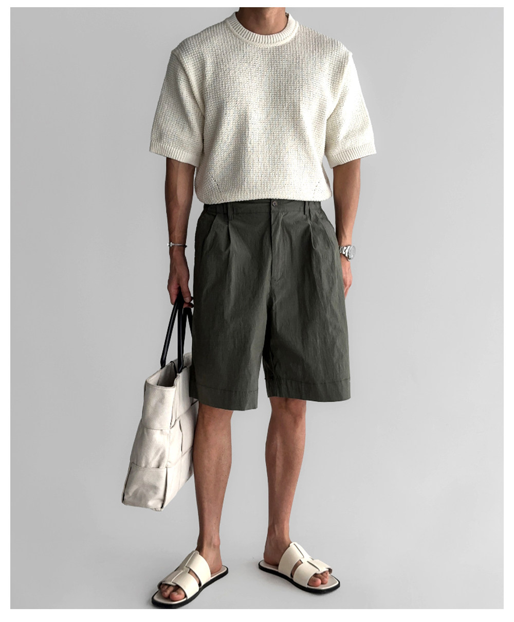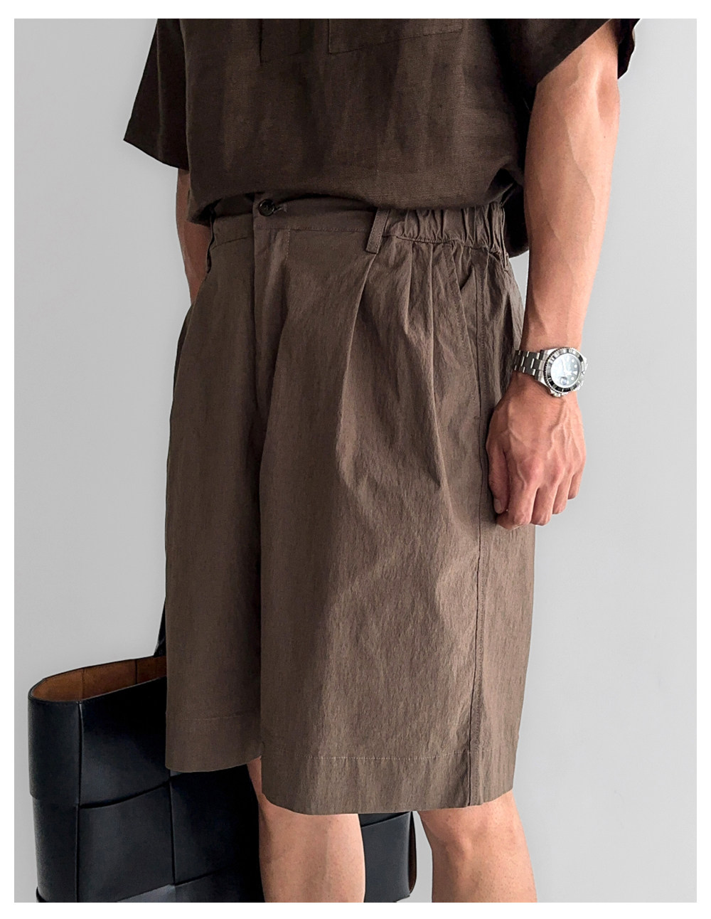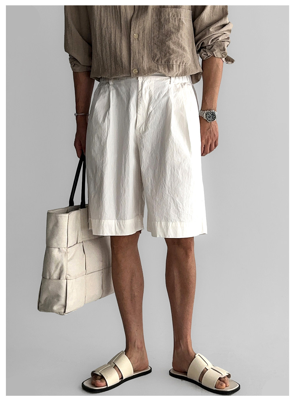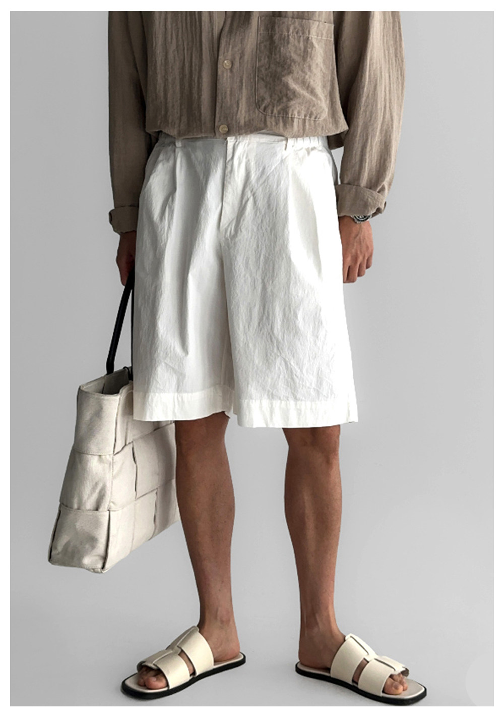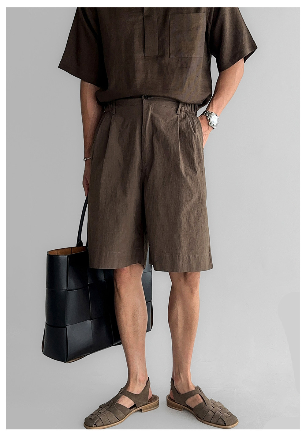 American Retro Elastic Waist Shorts for Men, Summer Nylon Double Pleated Straight Wide-Leg Knee-Length Casual Pants