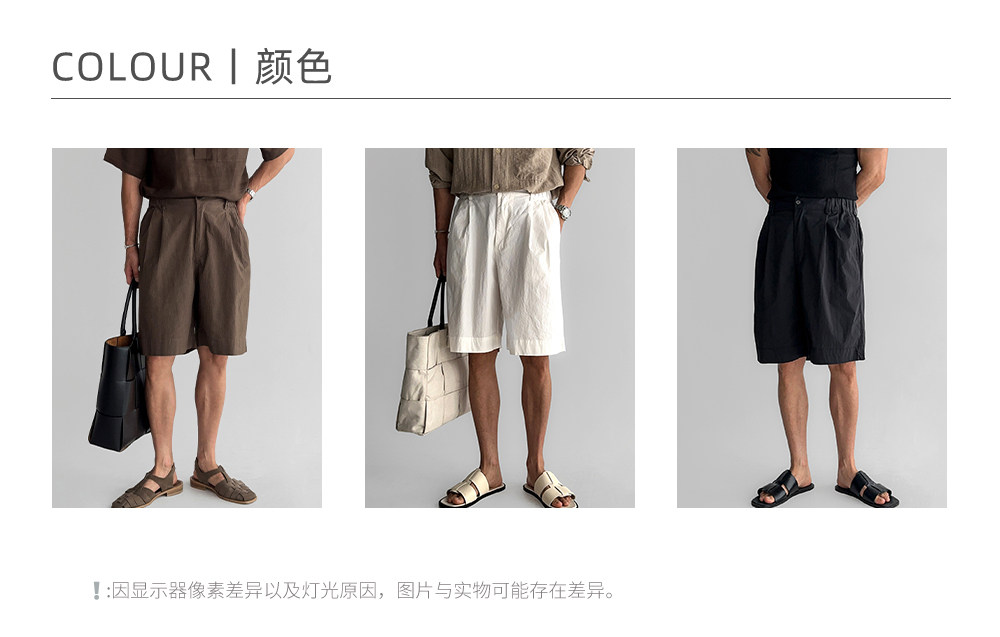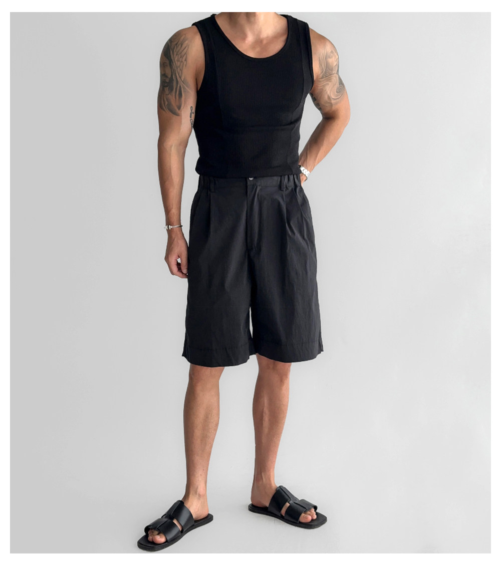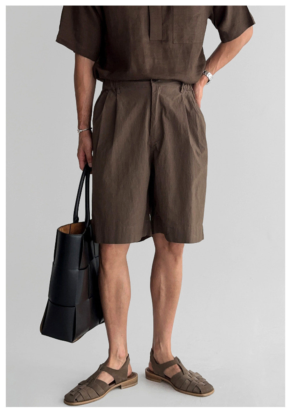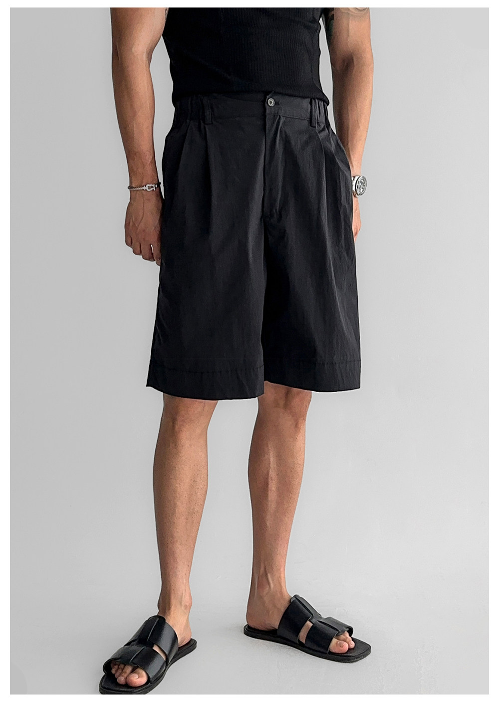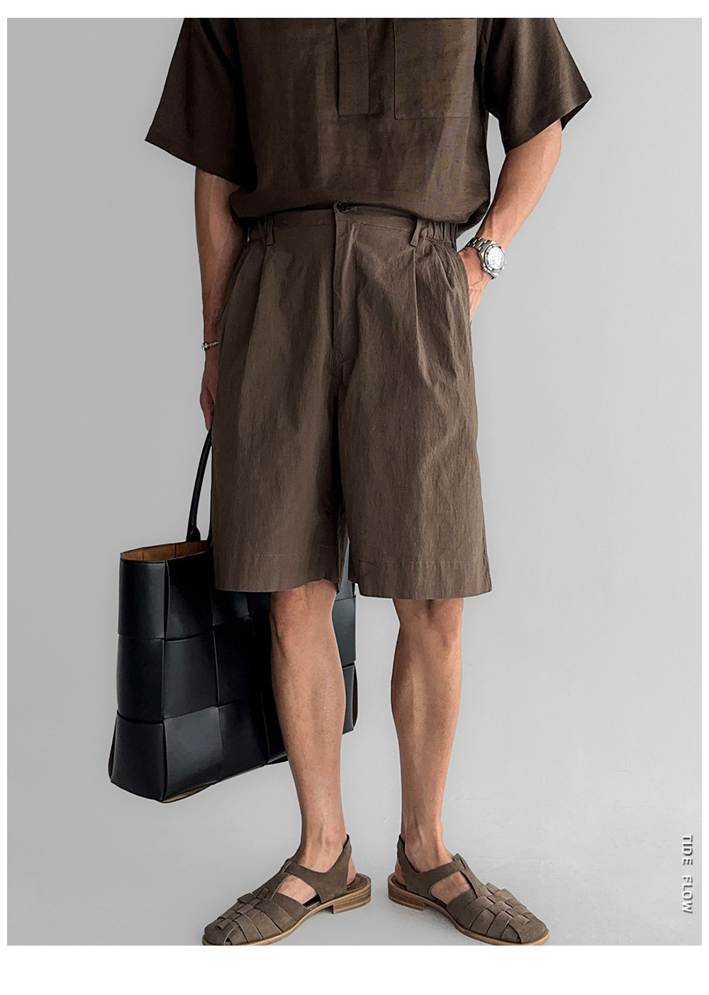 American Retro Elastic Waist Shorts for Men, Summer Nylon Double Pleated Straight Wide-Leg Knee-Length Casual Pants