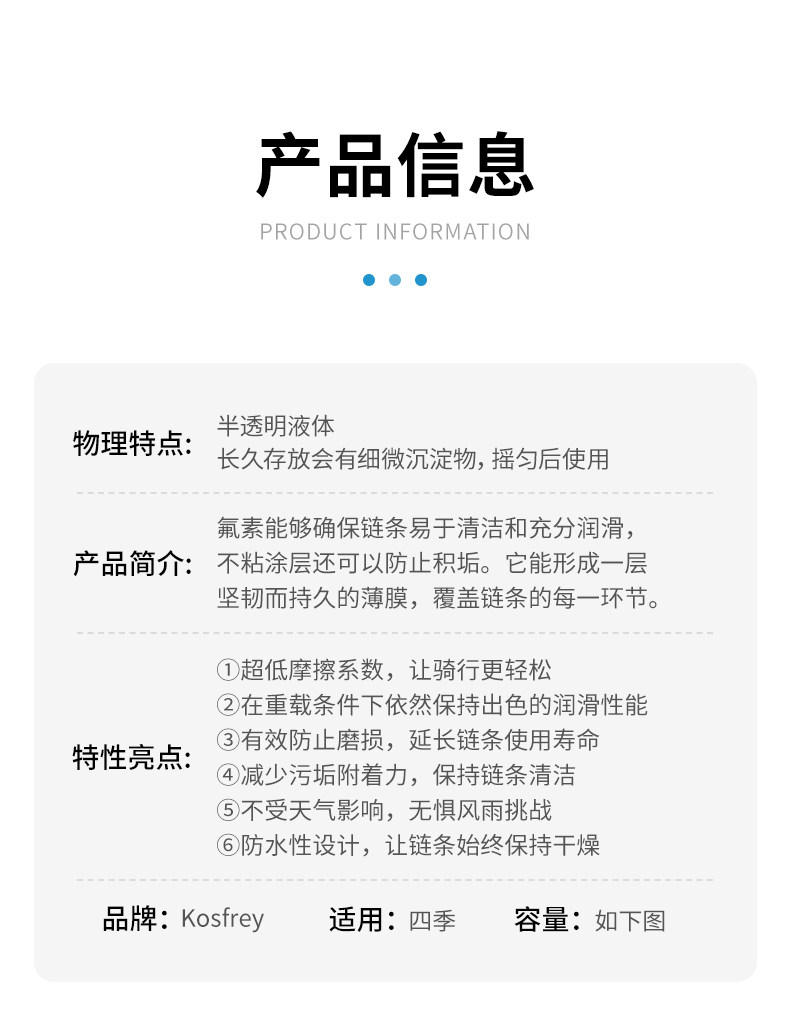 Kosfrey road mountain bike riding chain fluorine lubricant wet enhanced smooth maintenance 50ml