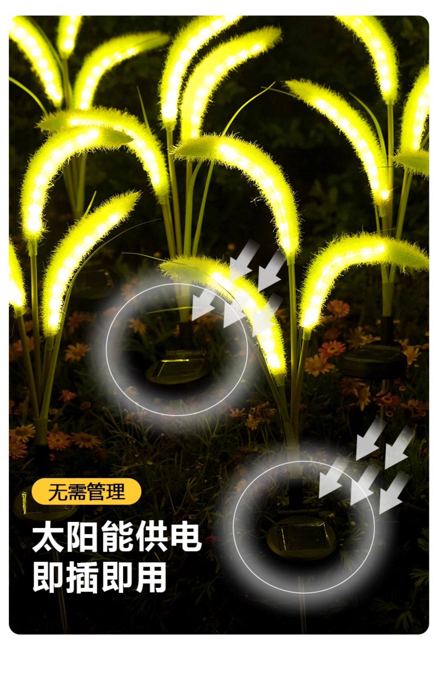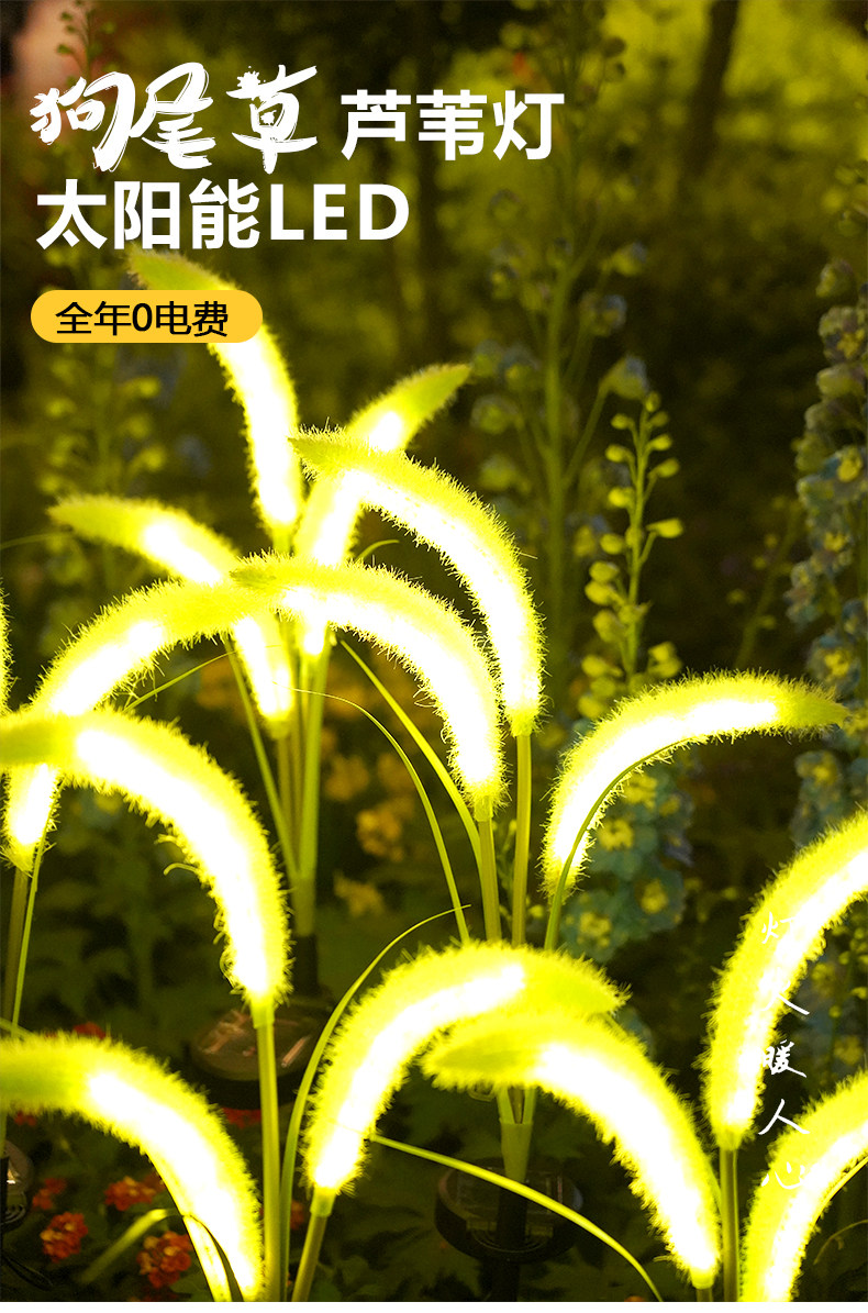 Solar reed dog tail light outdoor waterproof courtyard garden light arrangement decorative dandelion ground lawn light