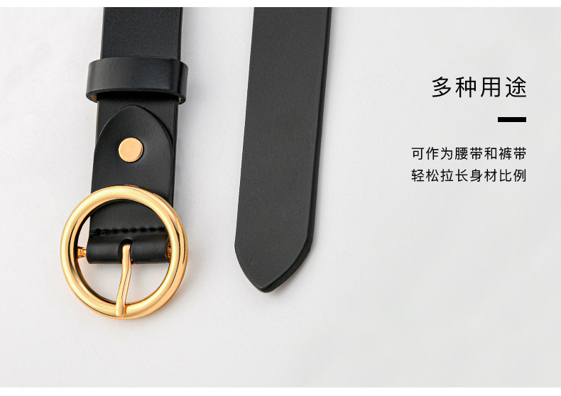 Women's Wide Leather Belt, Genuine Black Leather, Simple and Versatile, Korean Style, Casual Round Buckle, Pin Buckle, Women's Belt, Decorative Trouser Belt