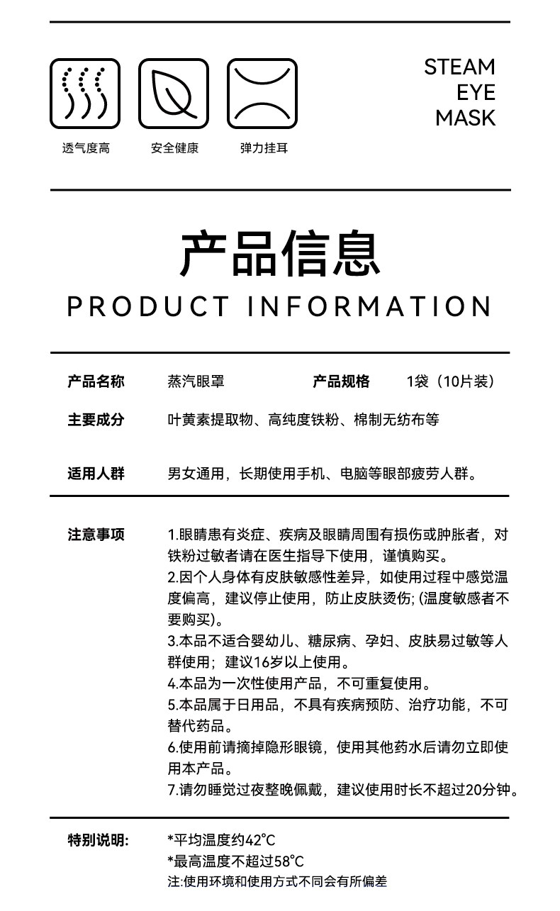 Dampf-Augenmaske zur Linderung von Augenermüdung, spezielle Lutein-Heißkompresse zum Schlafen und Heiz- und Schattierungsartefakt, Schlaf-Augenschutzpflaster
