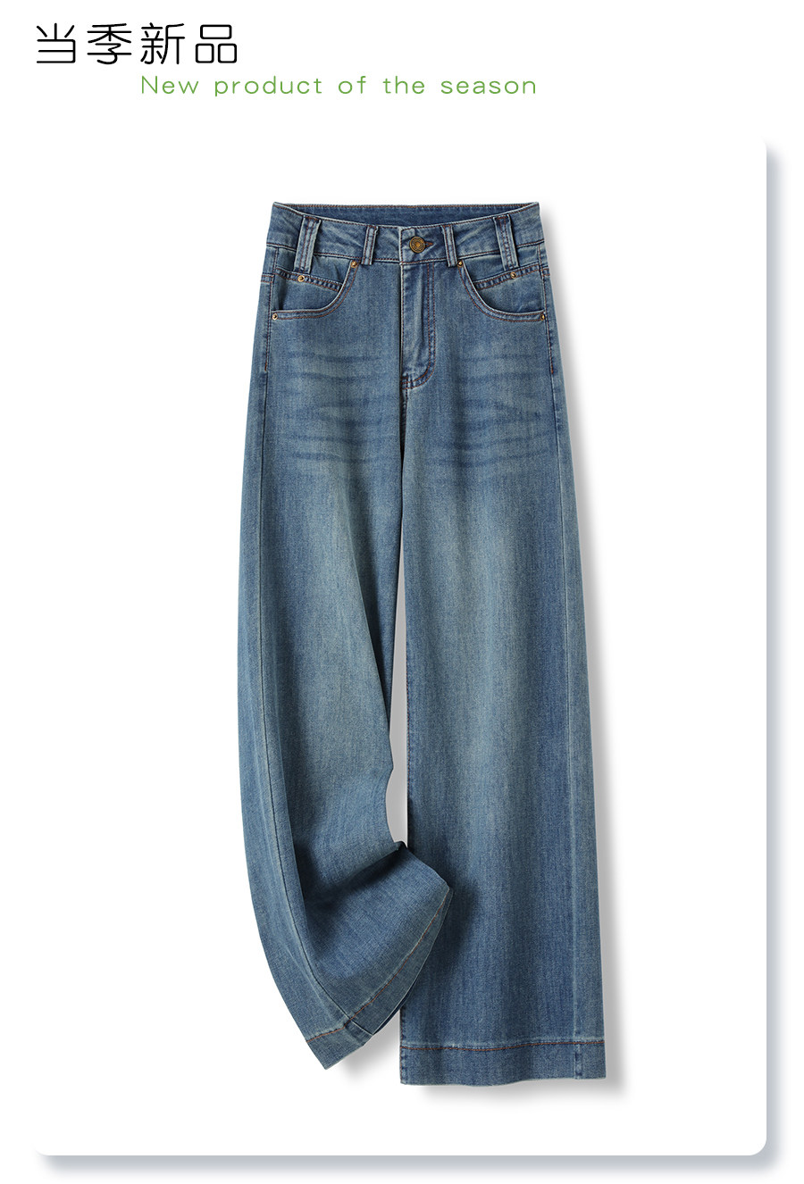 Retro jeans for women summer 2025 new summer thin loose wide-leg pants high-waisted narrow version straight nine-point pants
