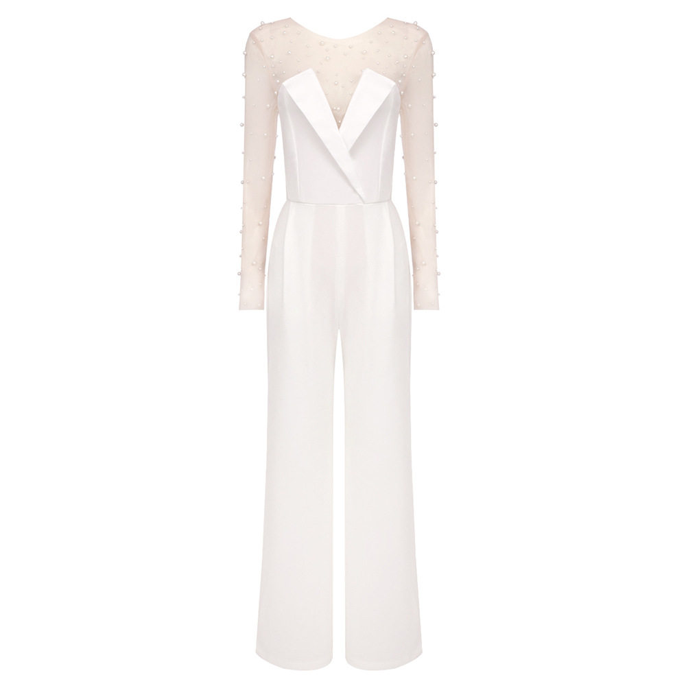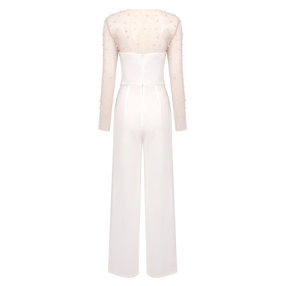 2025 women's summer new fashion high-end mesh nail bead jumpsuit high waist jumpsuit casual two-piece set