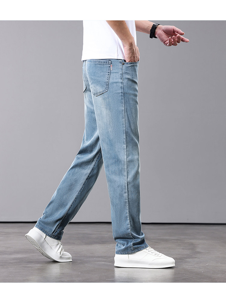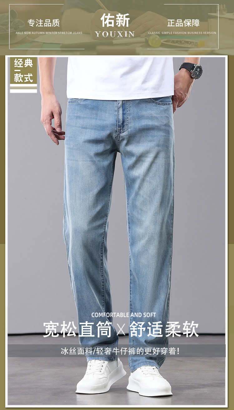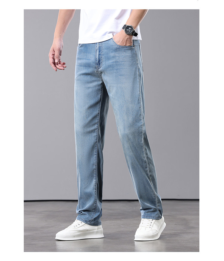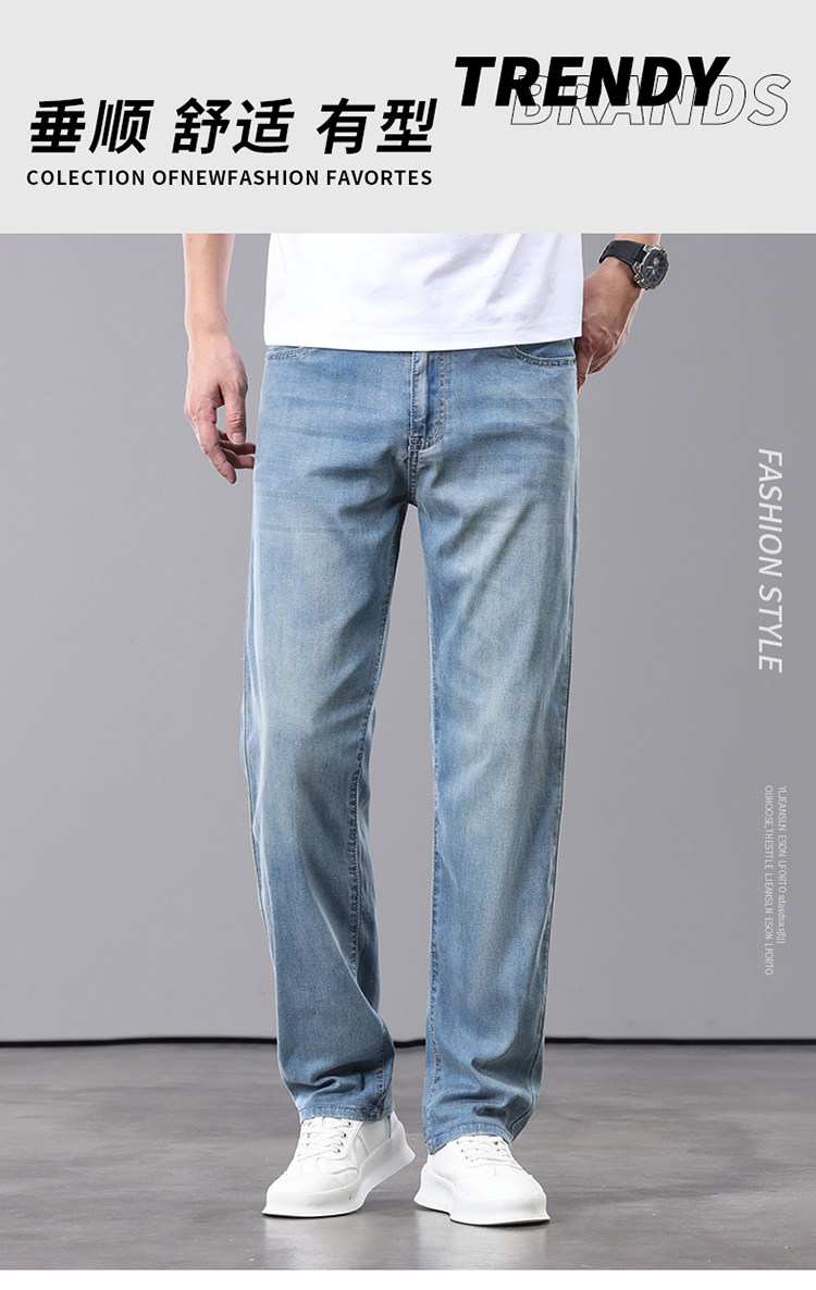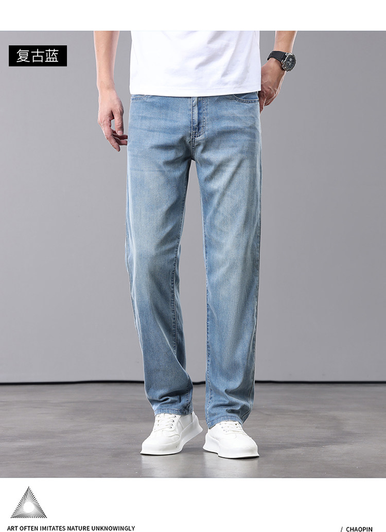 Retro Blue Sky Silk Thin Jeans for Men, Loose Straight Fit, 2026 New Summer Ice Silk Ultra-Thin Casual Men's Pants
