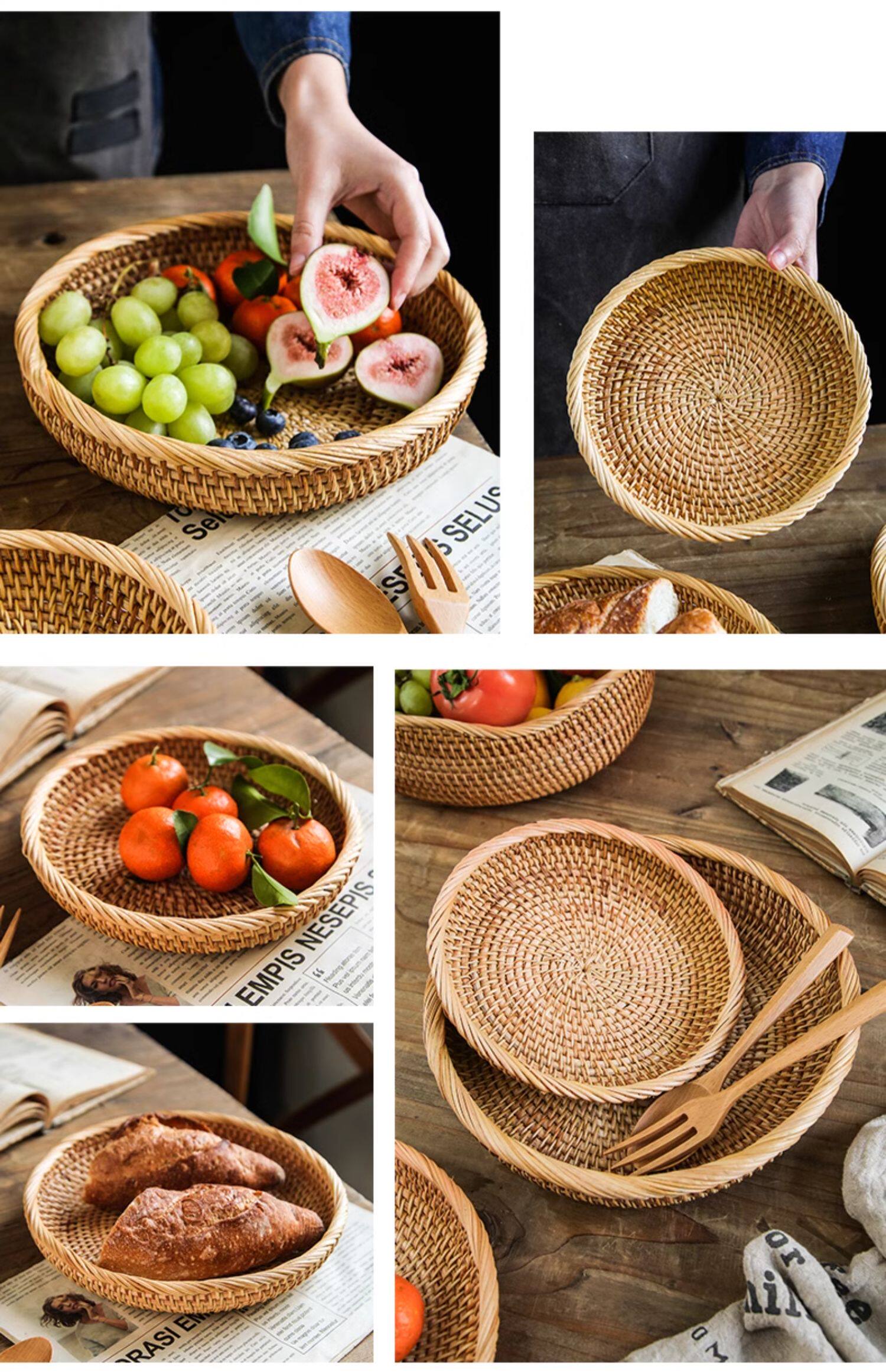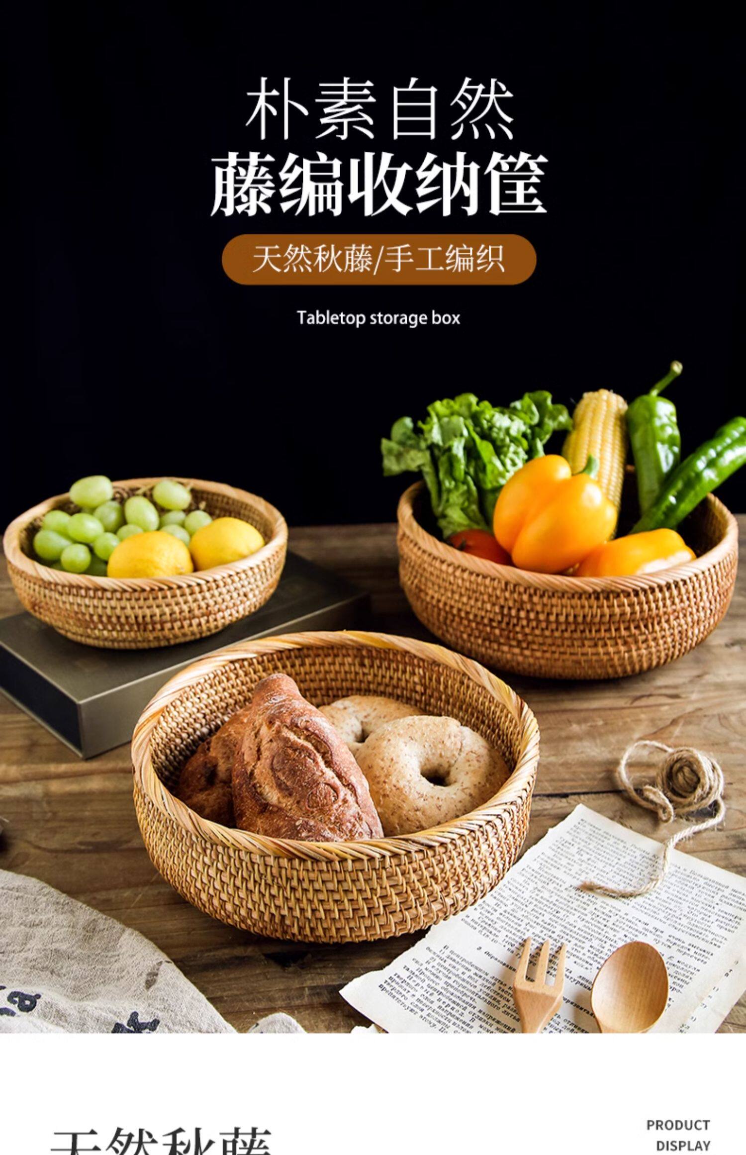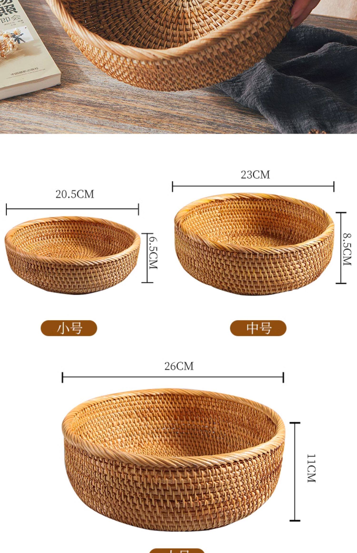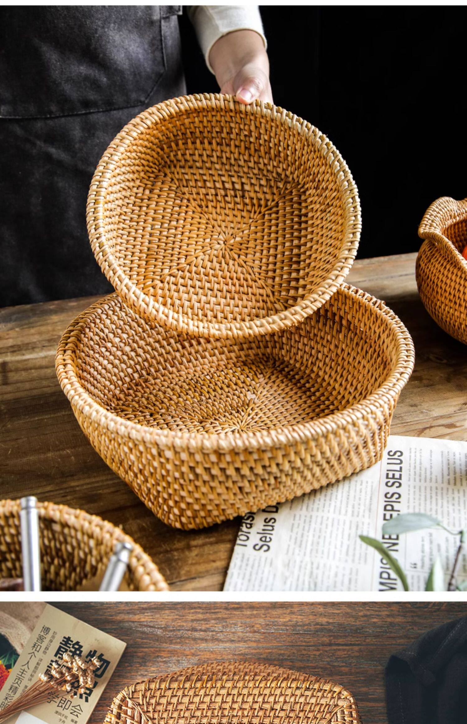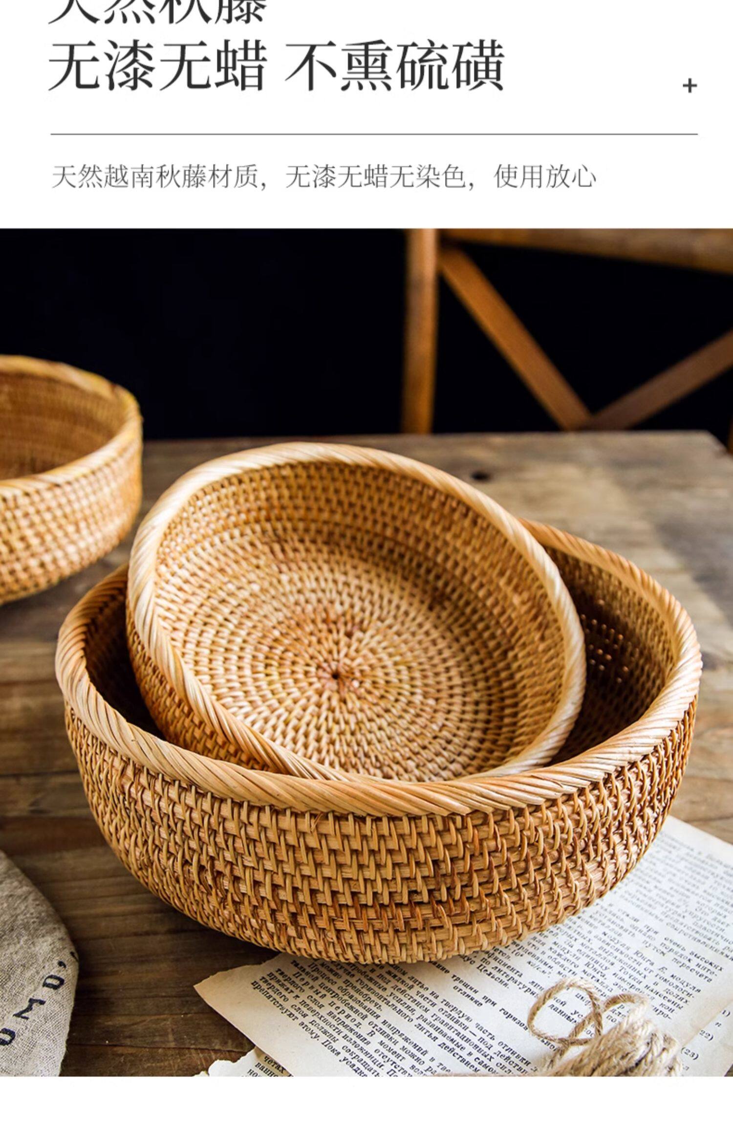 Natural rattan woven fruit tray dried fruit basket bamboo woven bread steamed bun basket household living room tea table snack tray storage basket