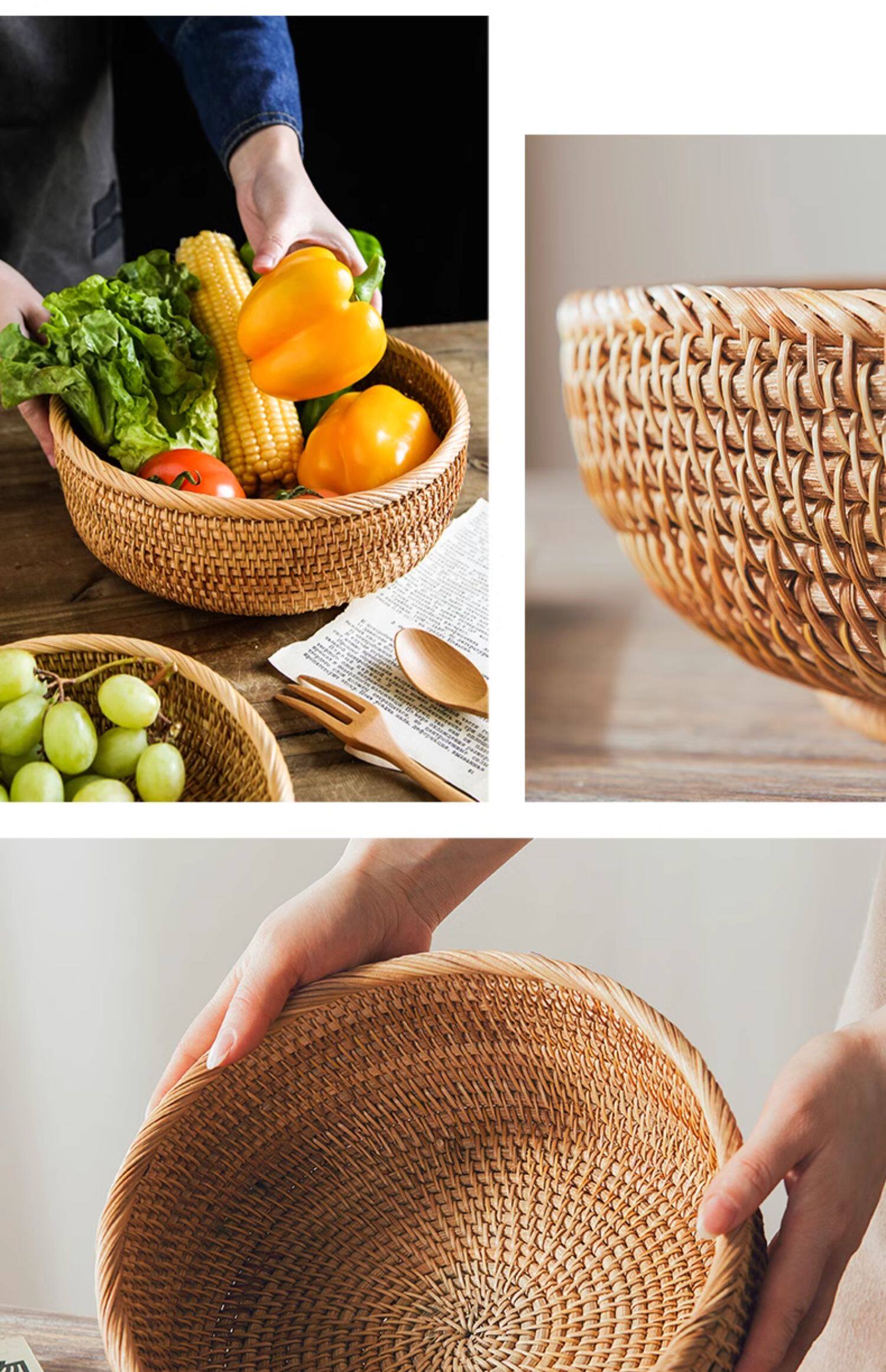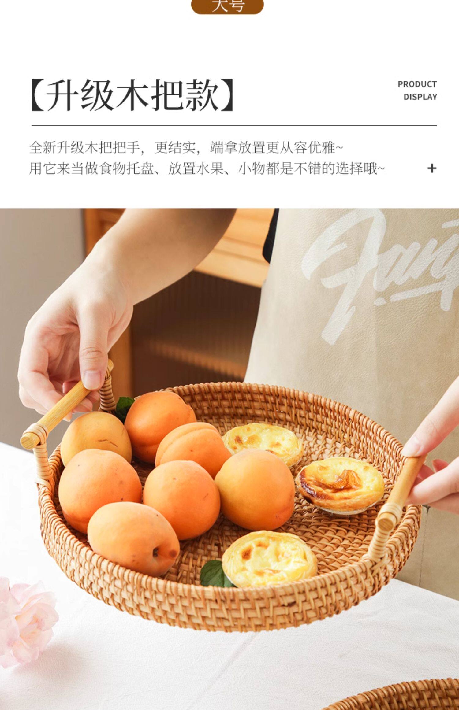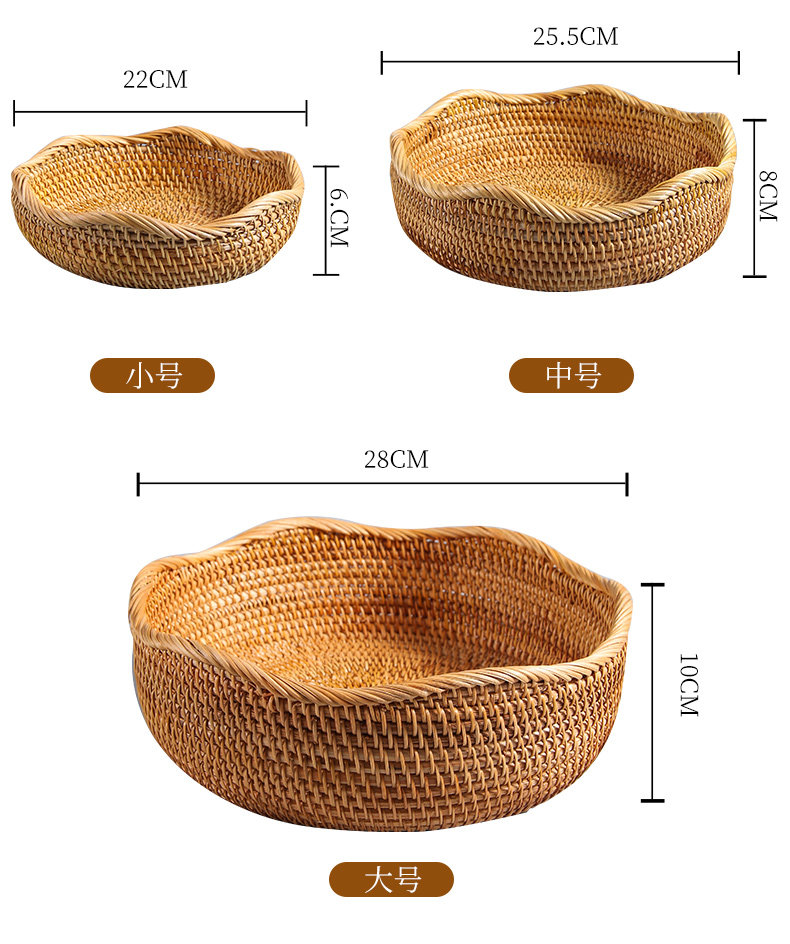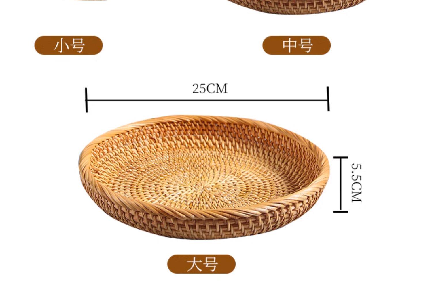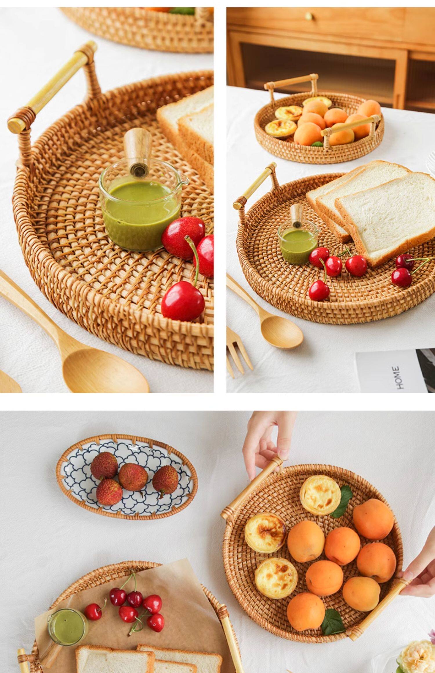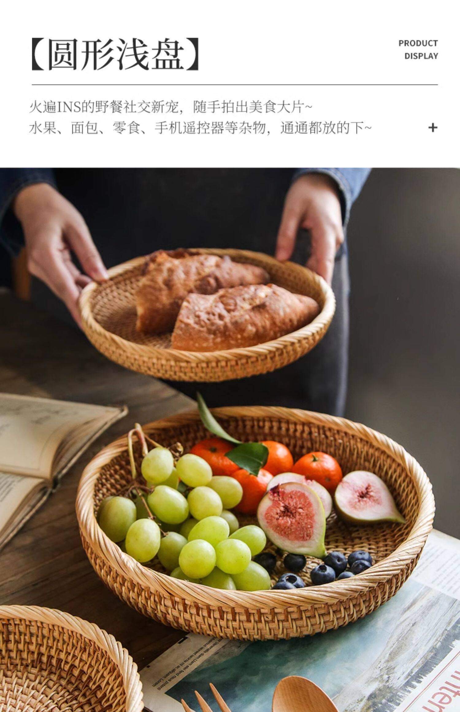 Natural rattan woven fruit tray dried fruit basket bamboo woven bread steamed bun basket household living room tea table snack tray storage basket
