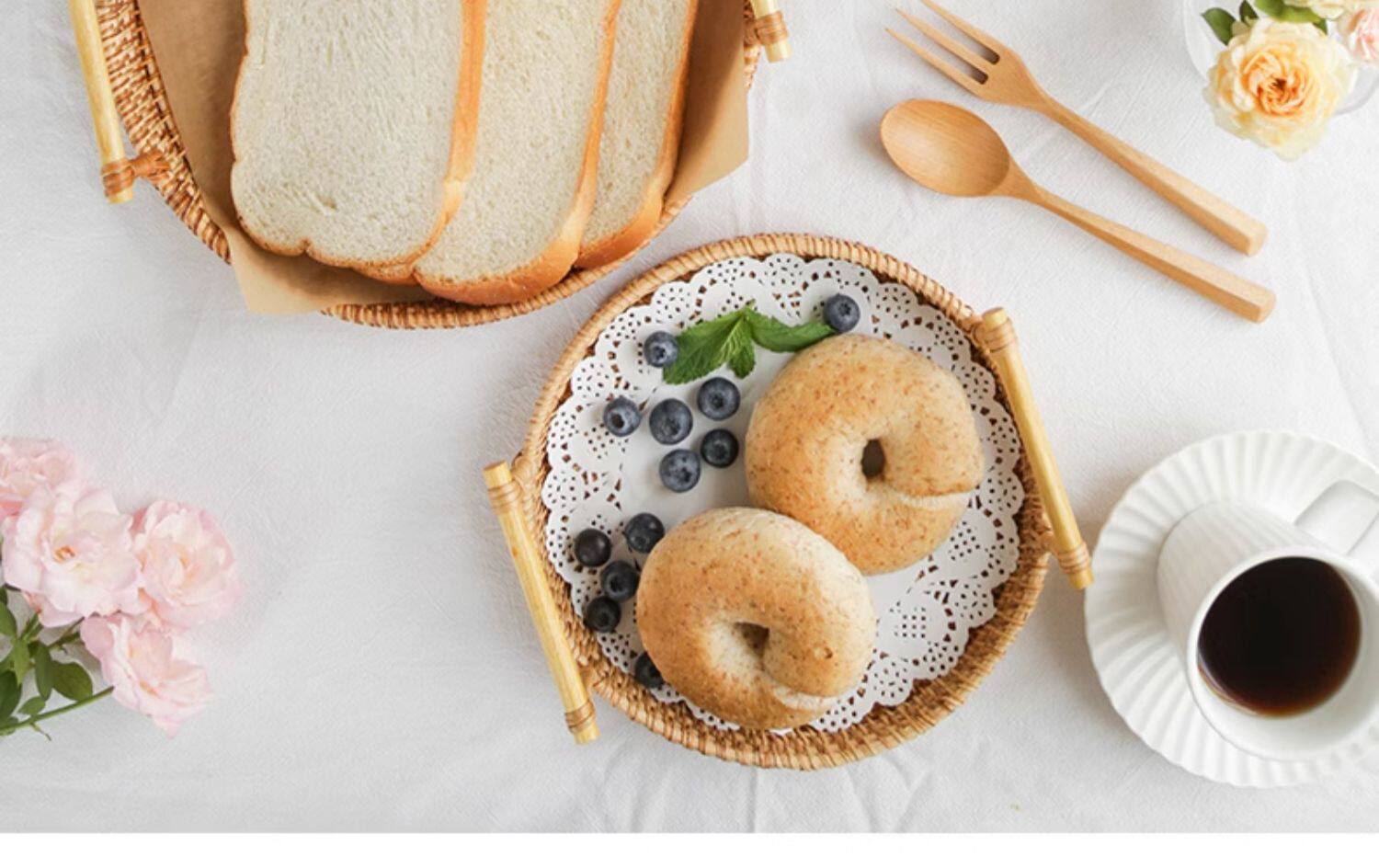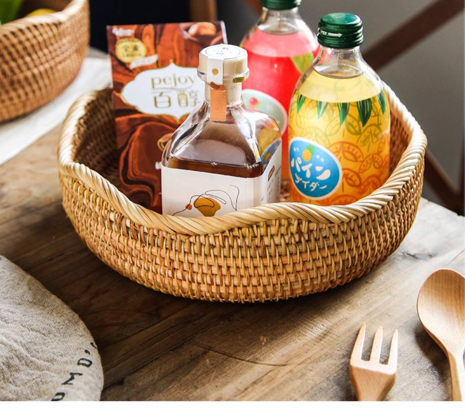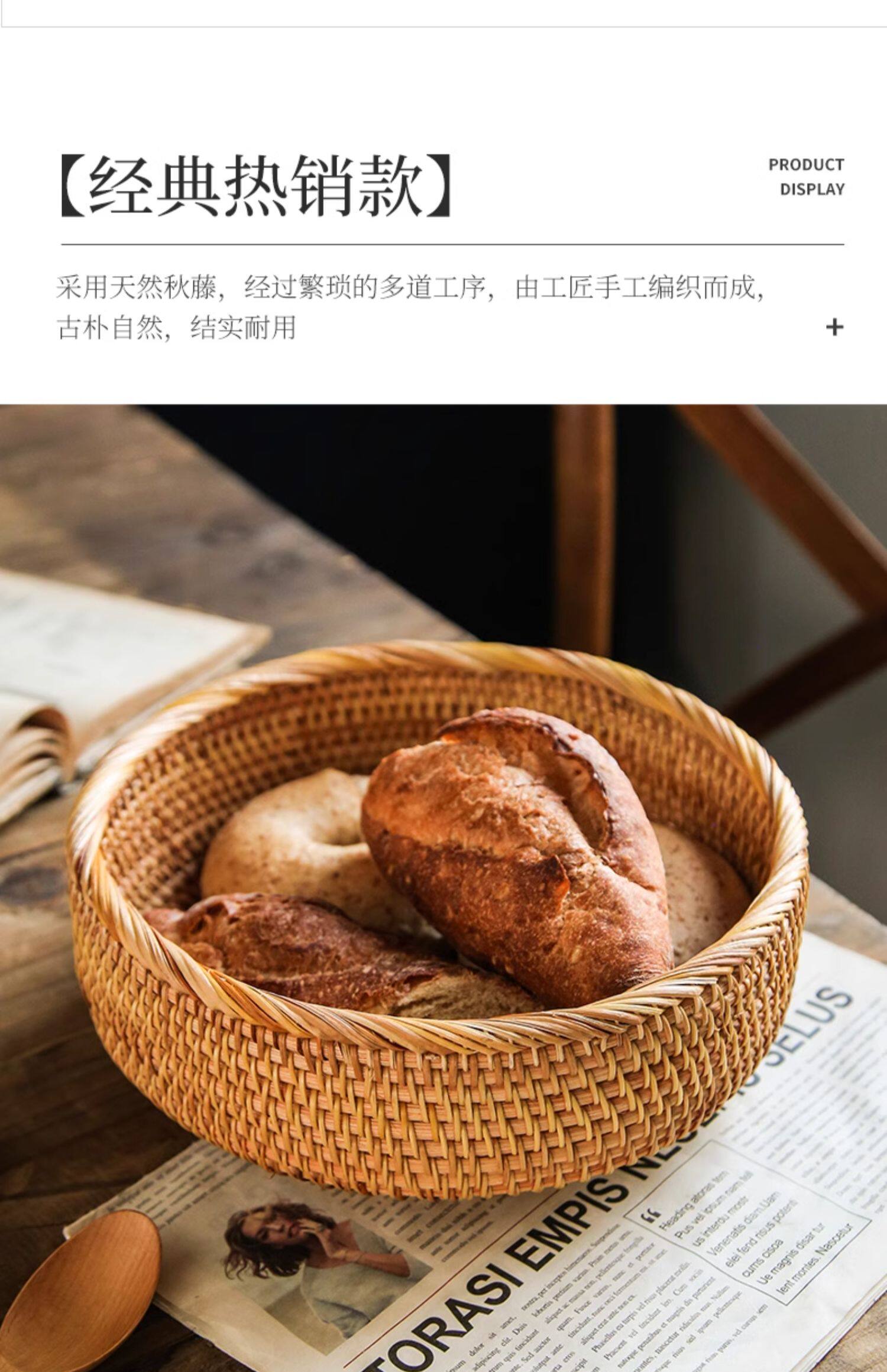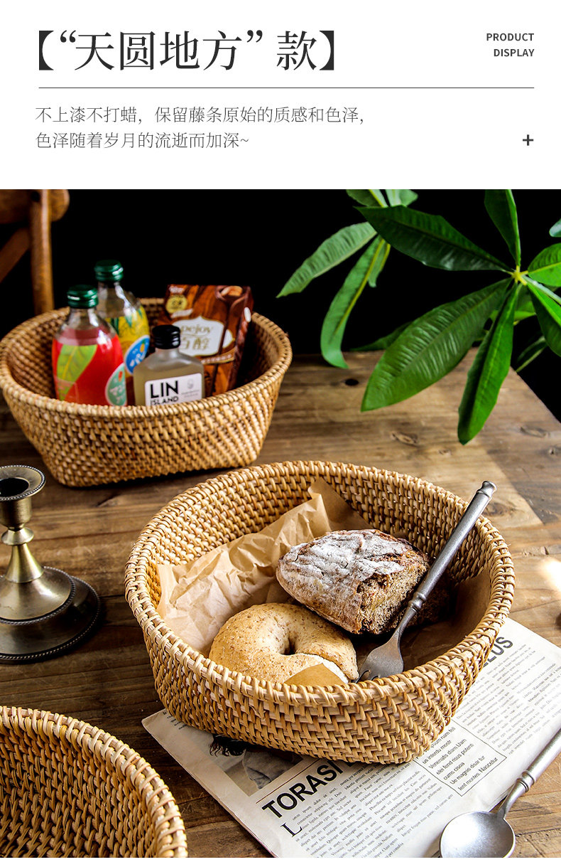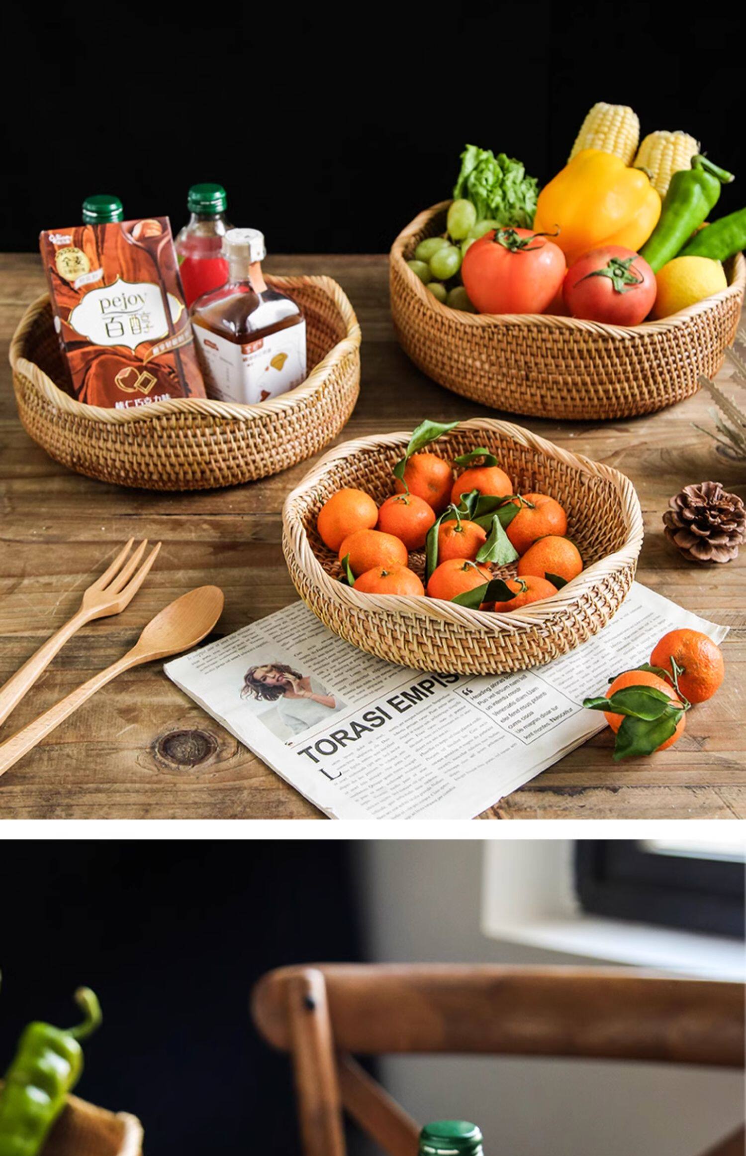 Natural rattan woven fruit tray dried fruit basket bamboo woven bread steamed bun basket household living room tea table snack tray storage basket