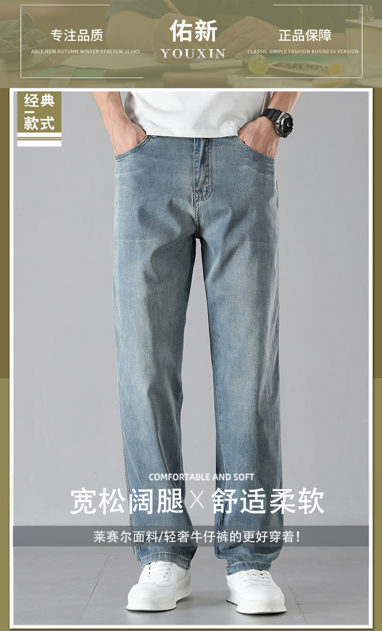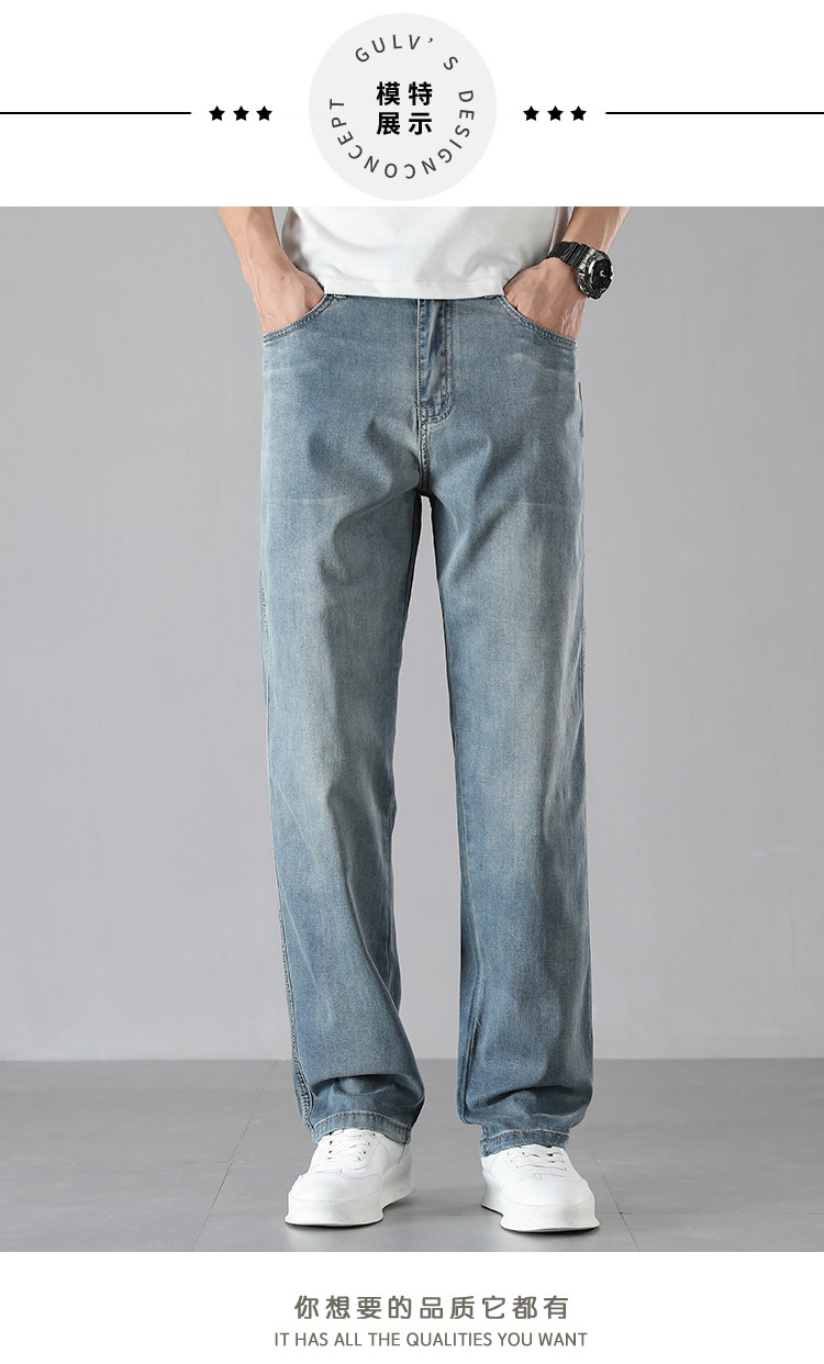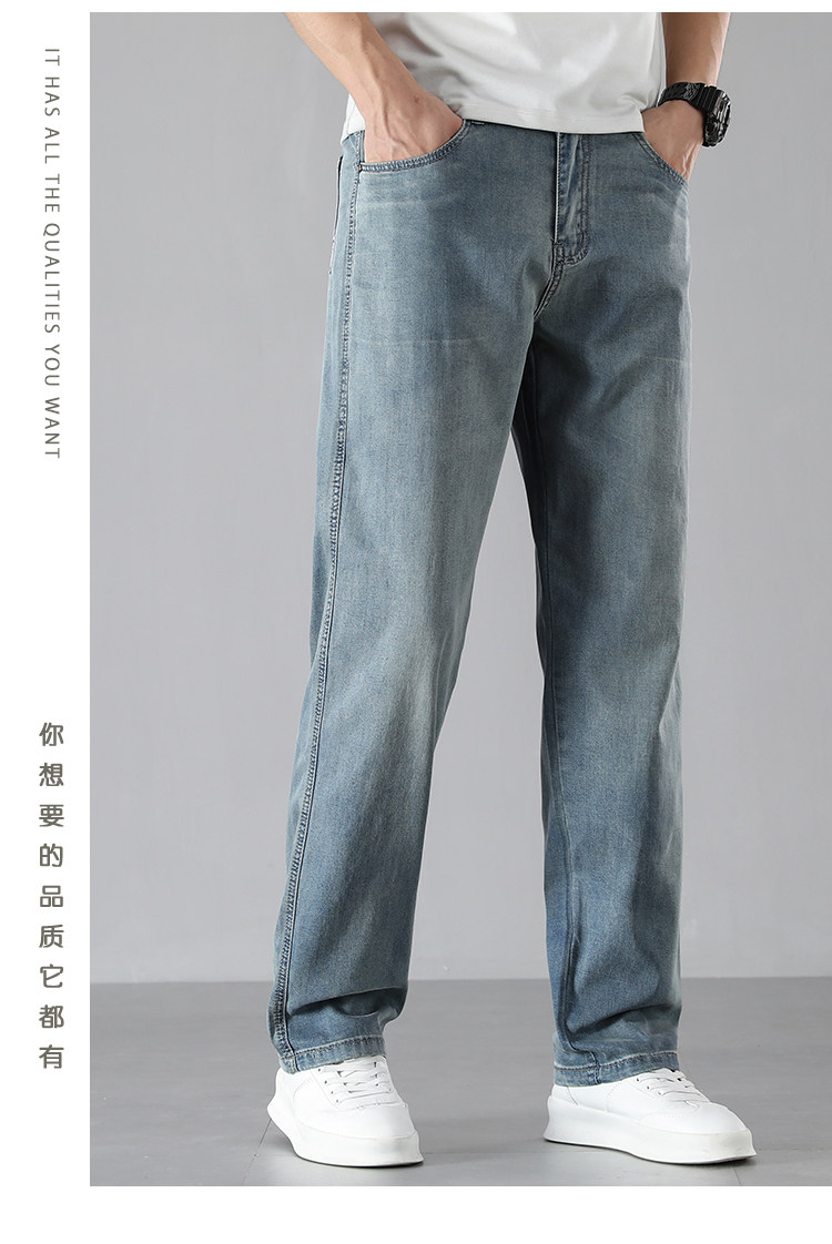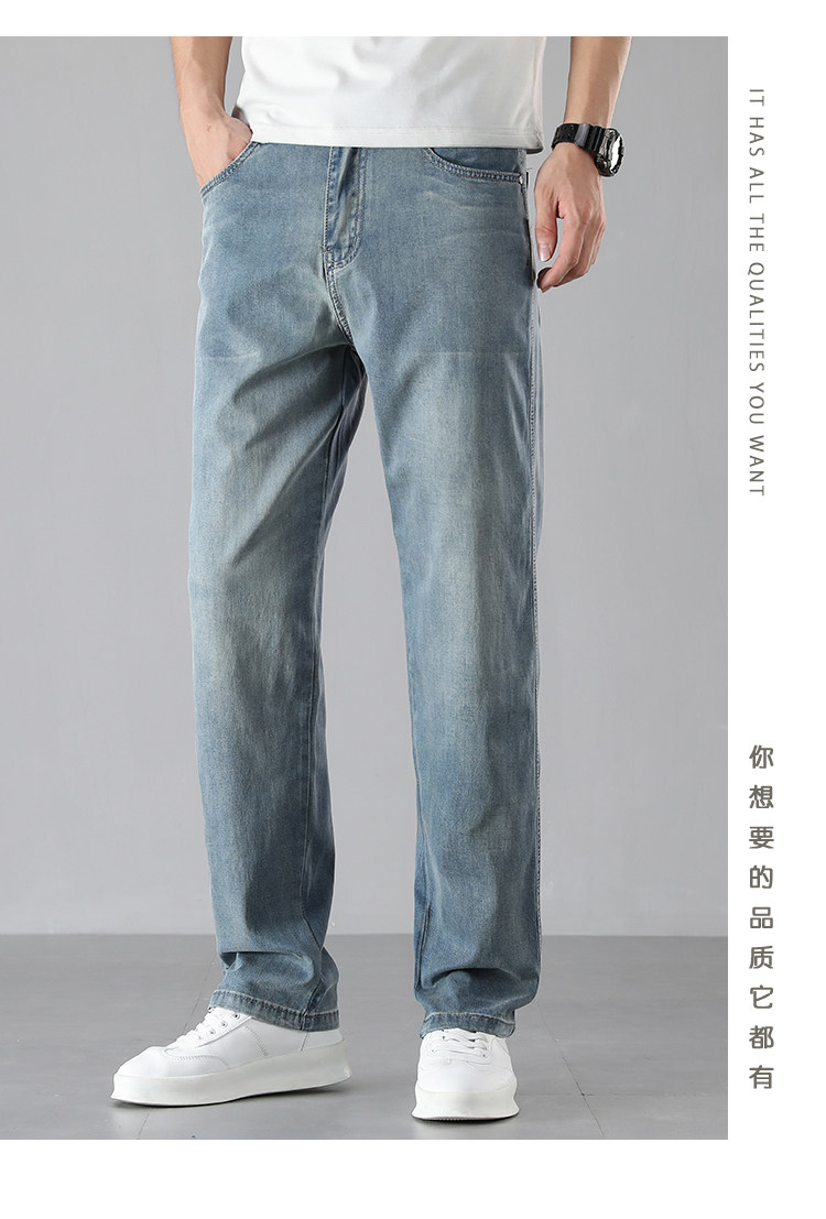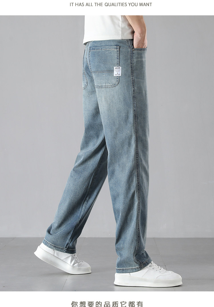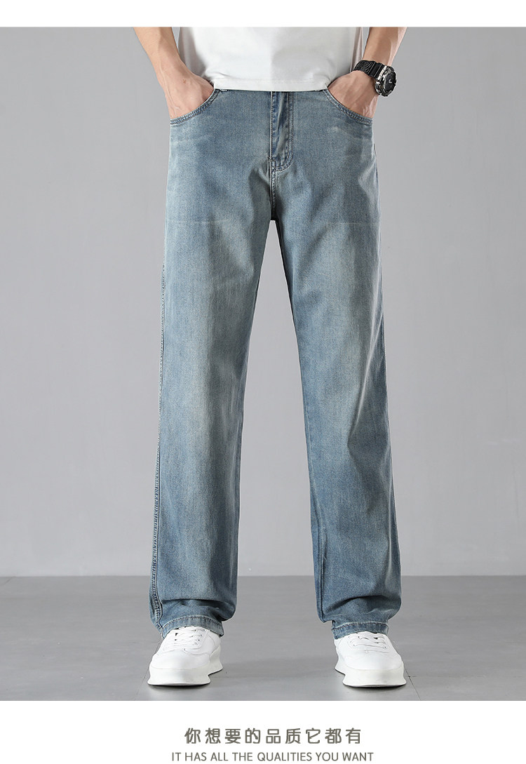 High-End Ice Silk Straight-Leg Jeans for Men, Summer Thin Wide-Leg Loose Versatile Drapey Tencel Pants for Men, Summer Style
