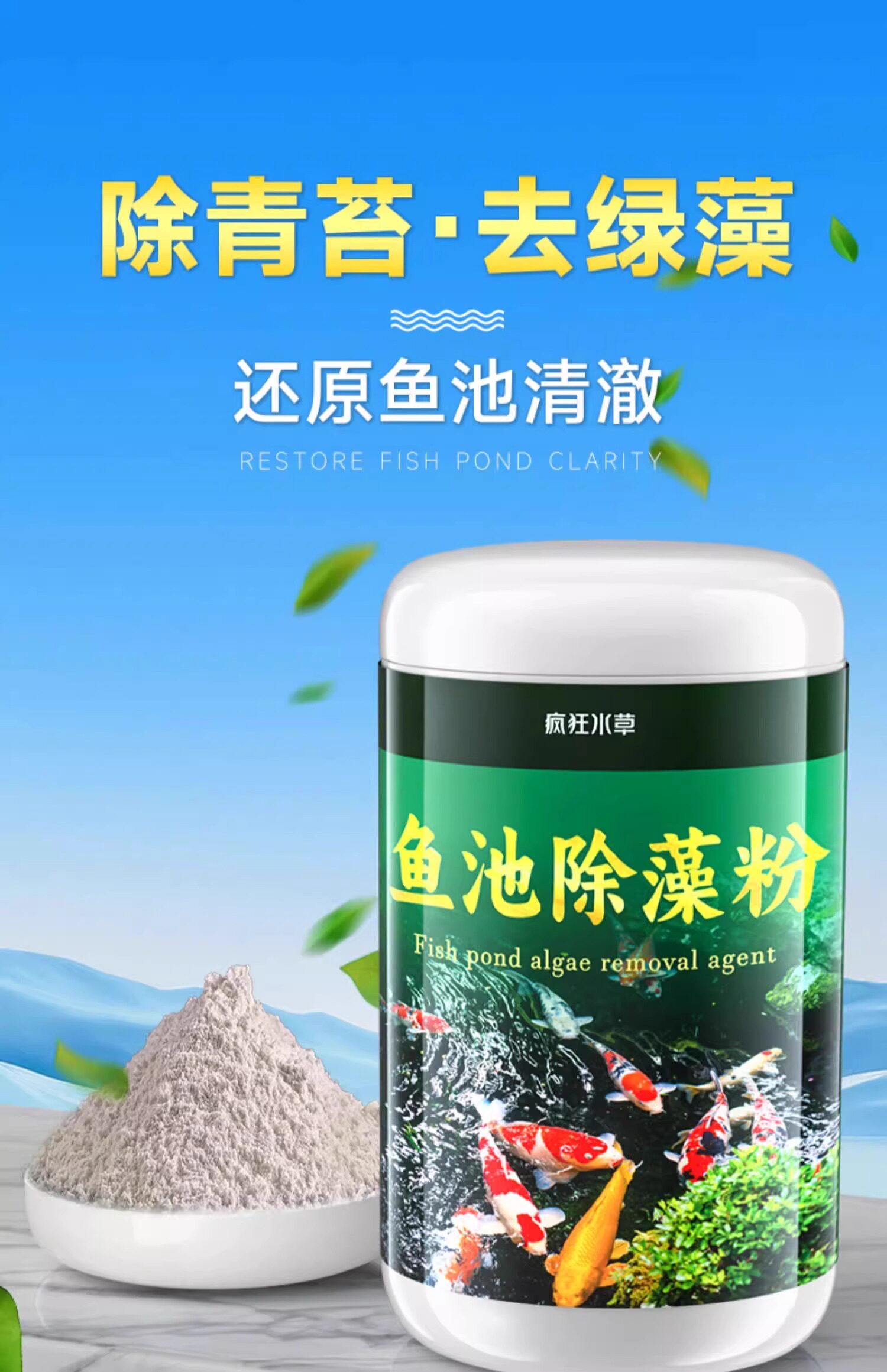 Fish Pond Algae Removal Agent, Algae Removal Powder, Green Algae Remover, Cyanobacteria Remover, Filamentous Algae Remover, Black Hair Algae Remover, Fish Pond Green Algae and Moss Remover