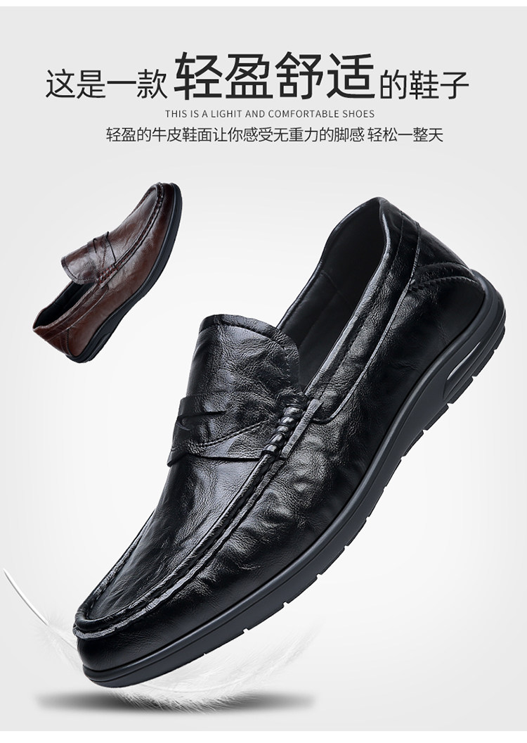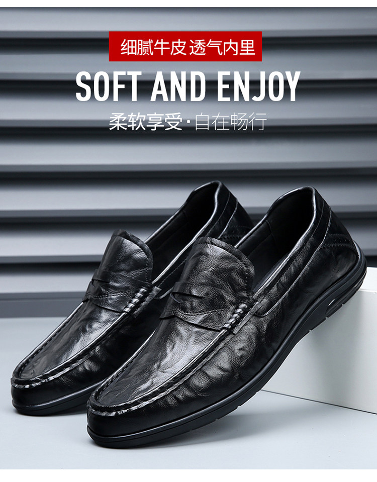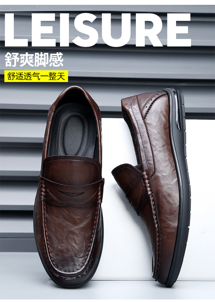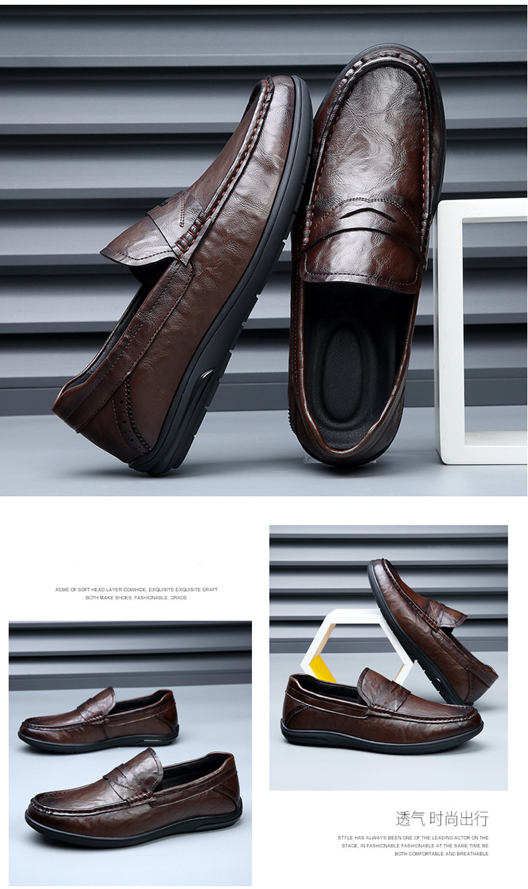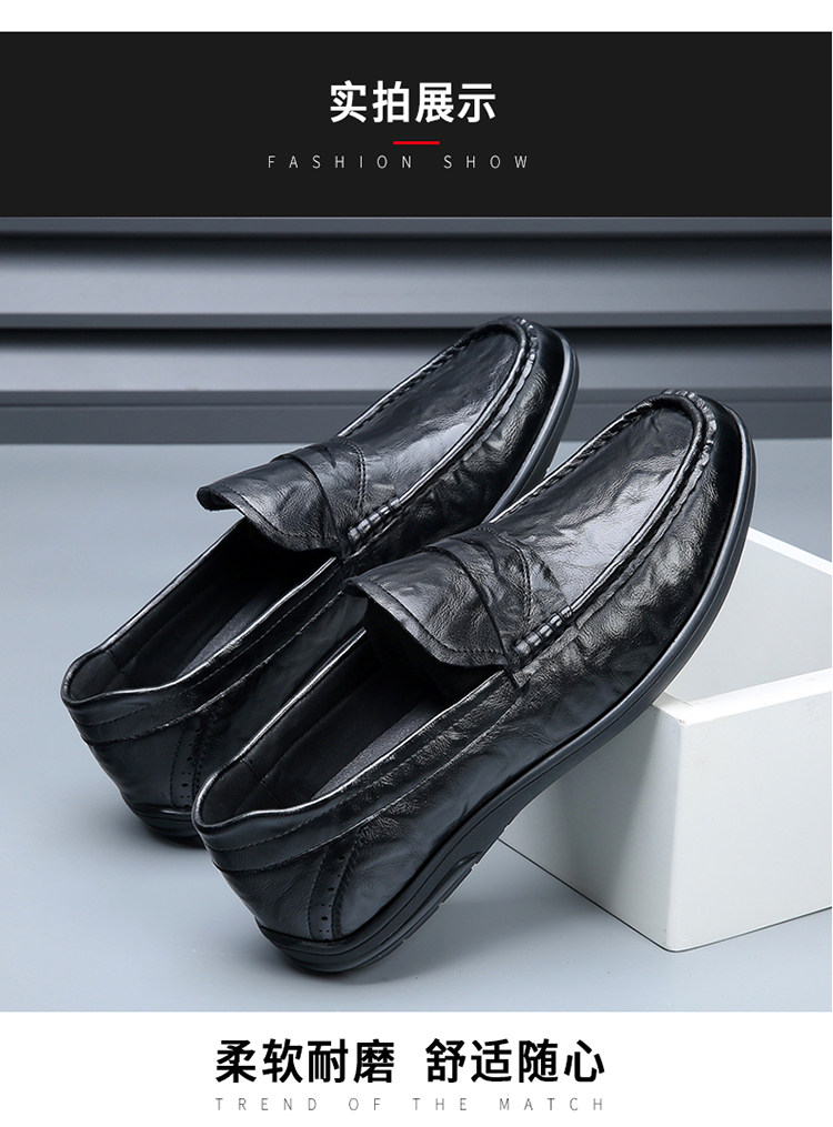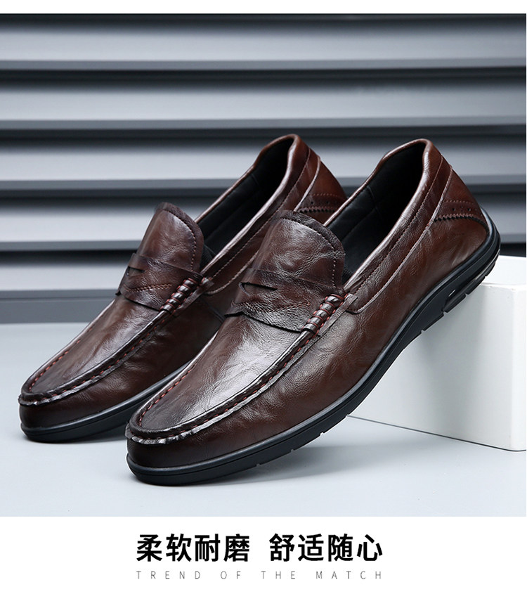 Soft sole soft surface men's leather shoes spring and autumn genuine leather breathable beanie shoes versatile slip-on casual shoes non-slip driving shoes