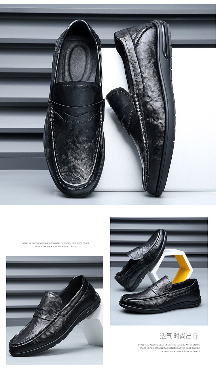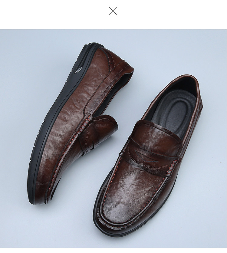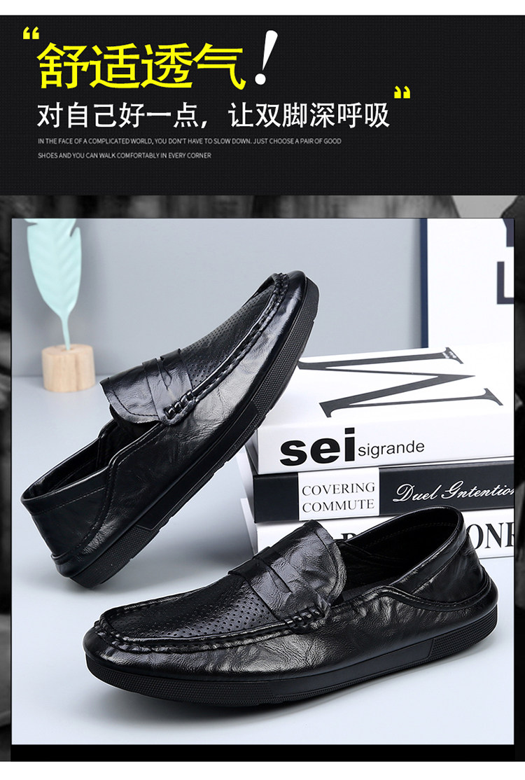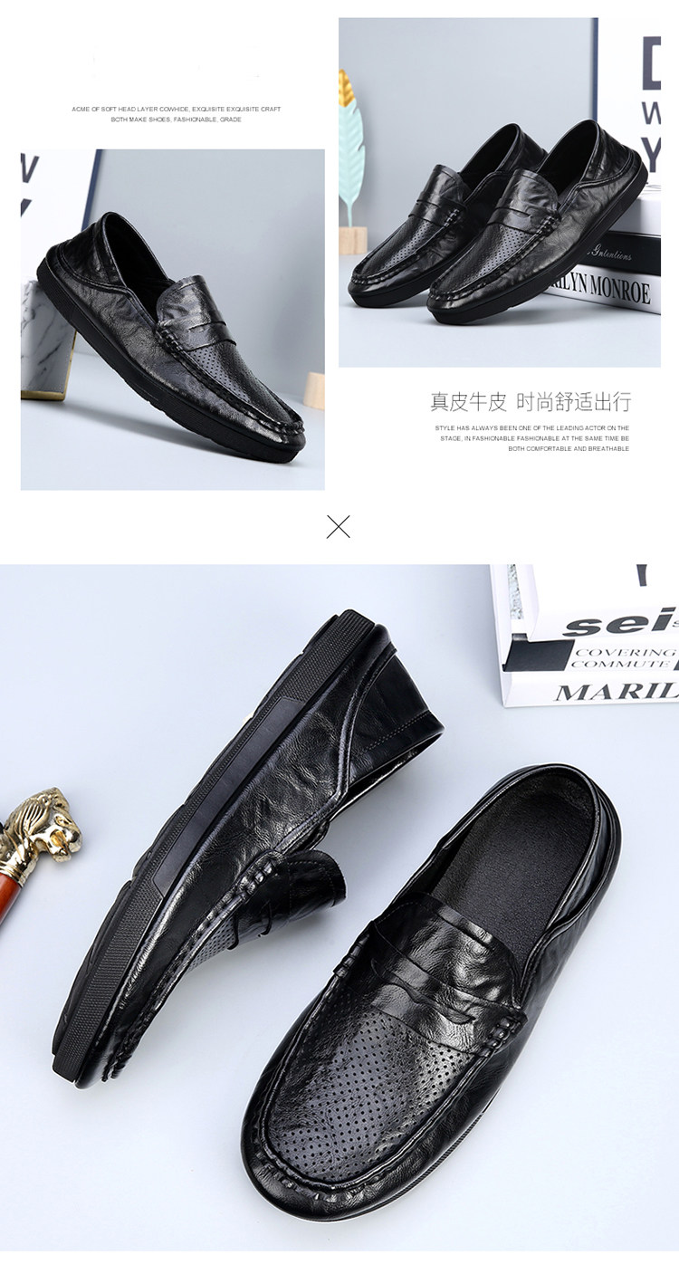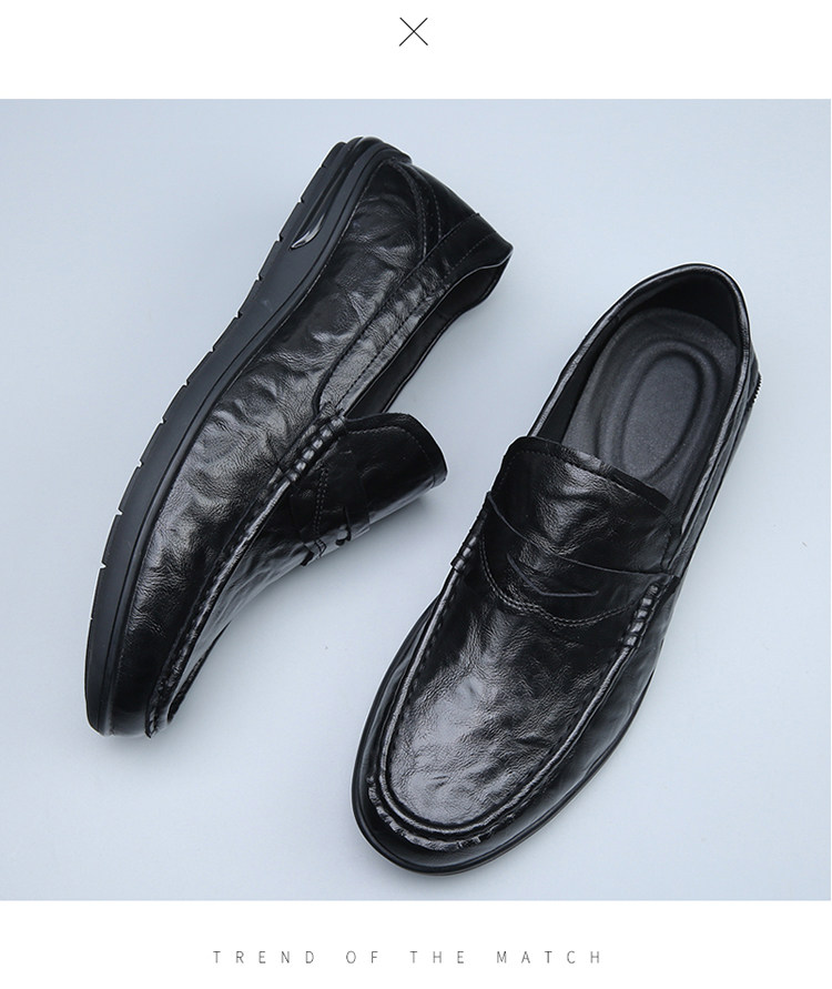 Soft sole soft surface men's leather shoes spring and autumn genuine leather breathable beanie shoes versatile slip-on casual shoes non-slip driving shoes