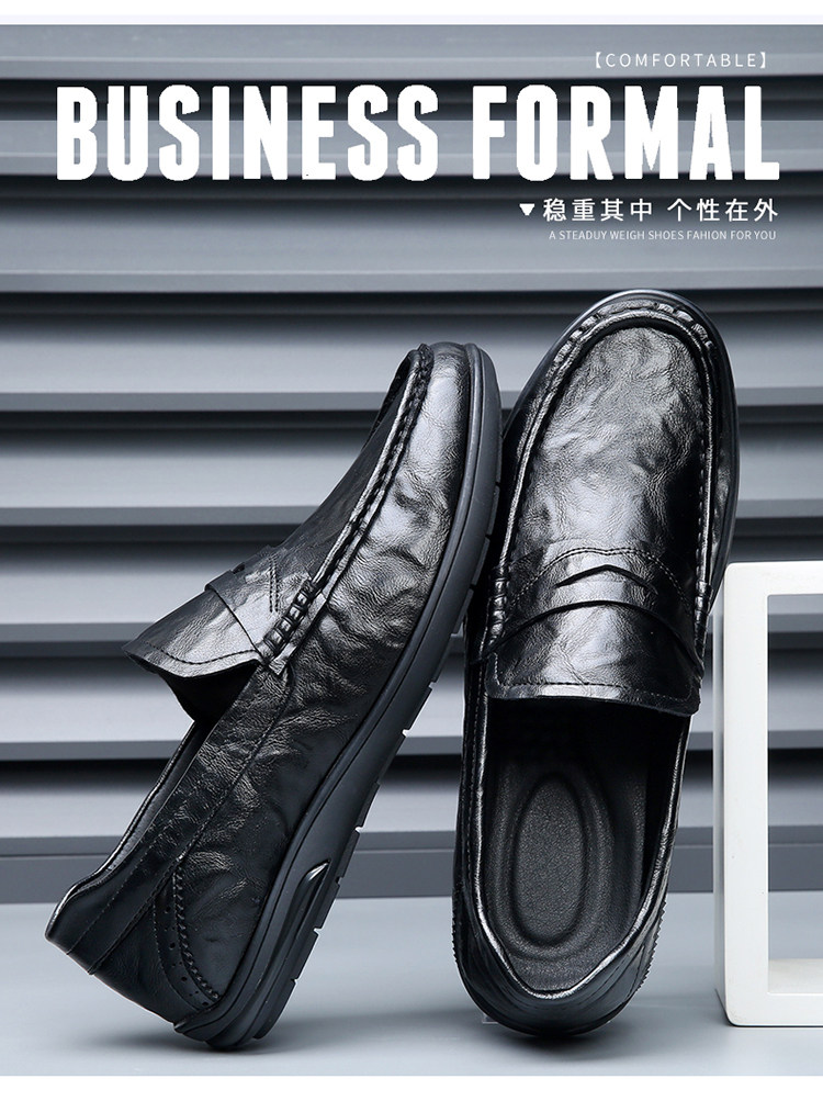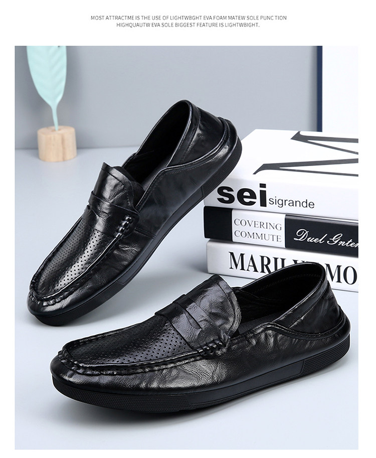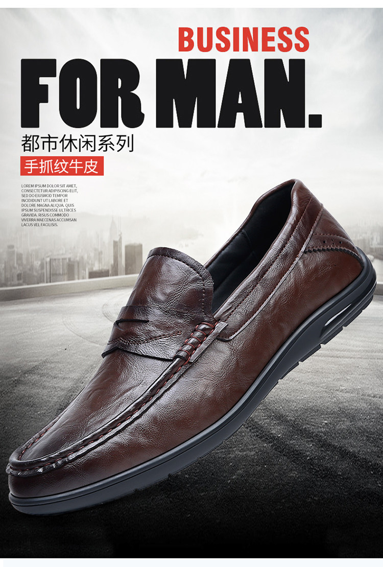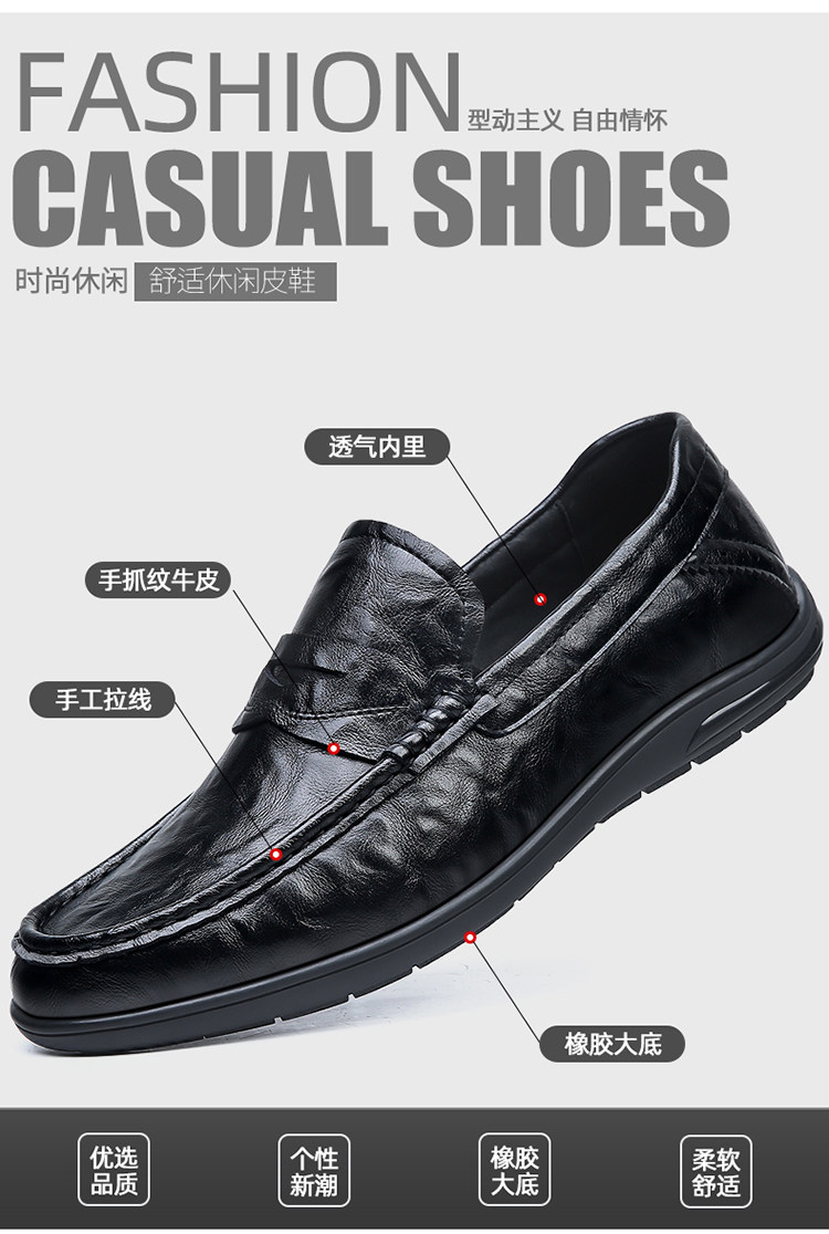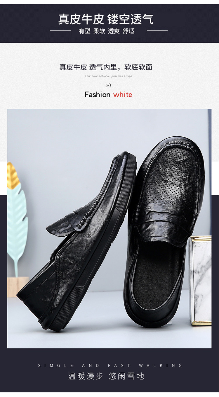 Soft sole soft surface men's leather shoes spring and autumn genuine leather breathable beanie shoes versatile slip-on casual shoes non-slip driving shoes