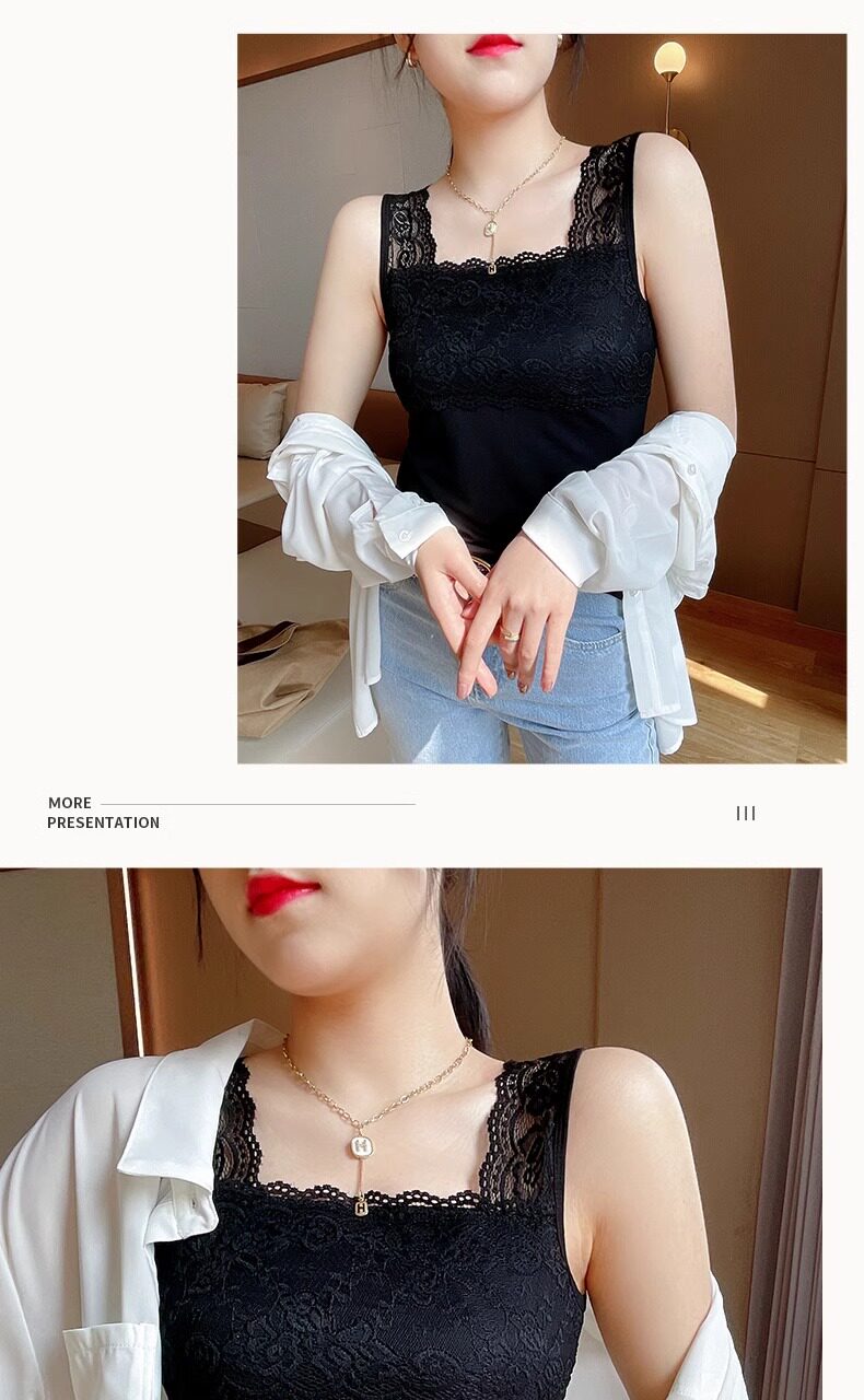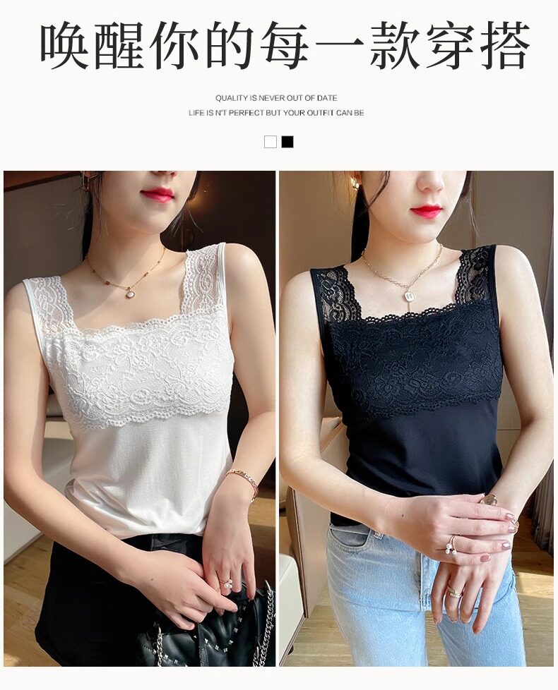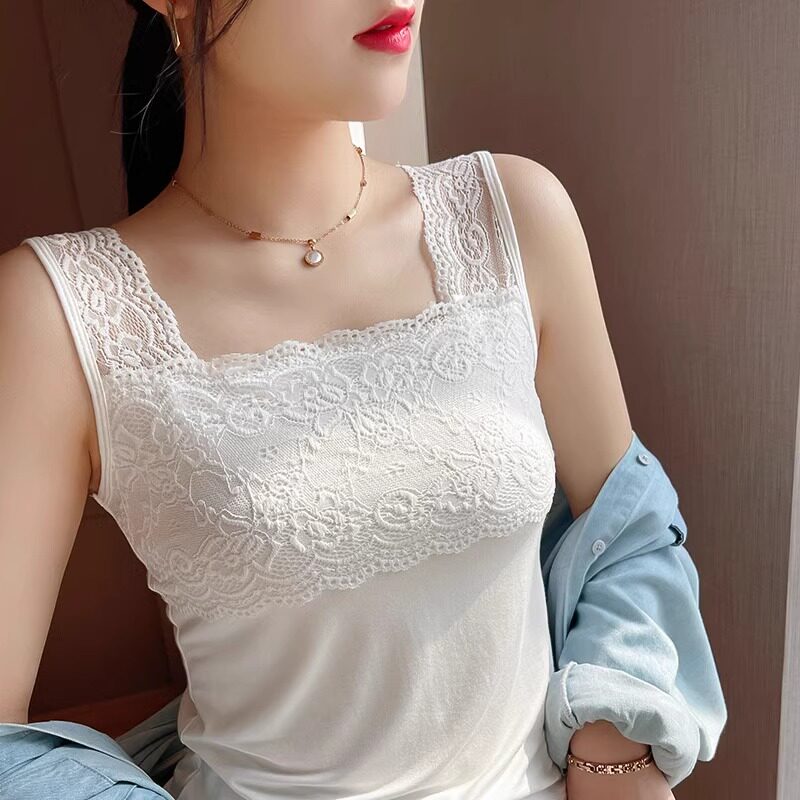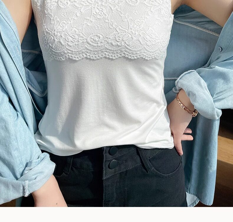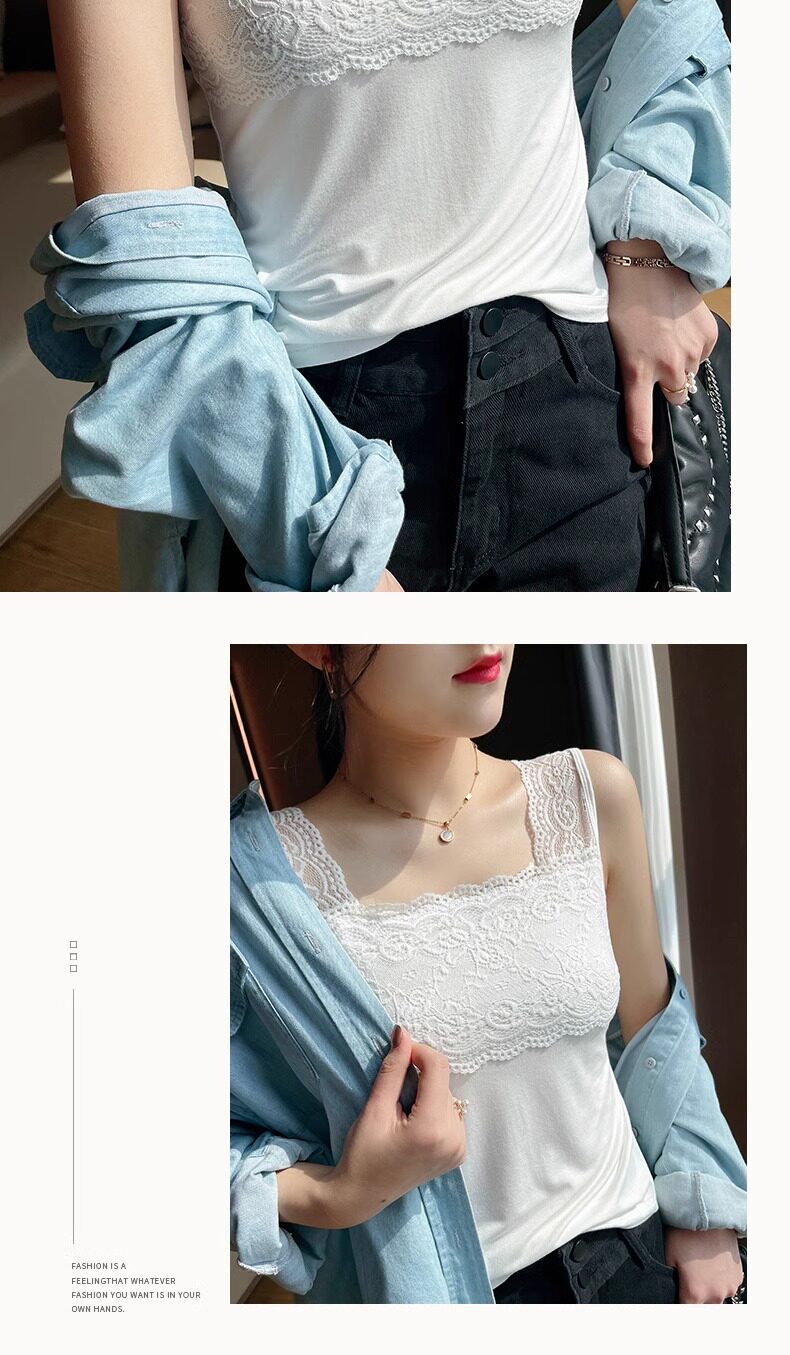 2025 new summer camisole plus size women's lace all-match slim suit bottoming shirt top