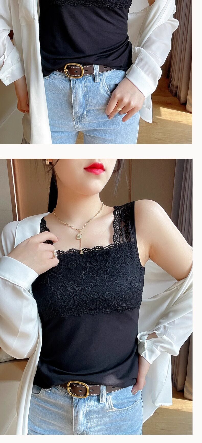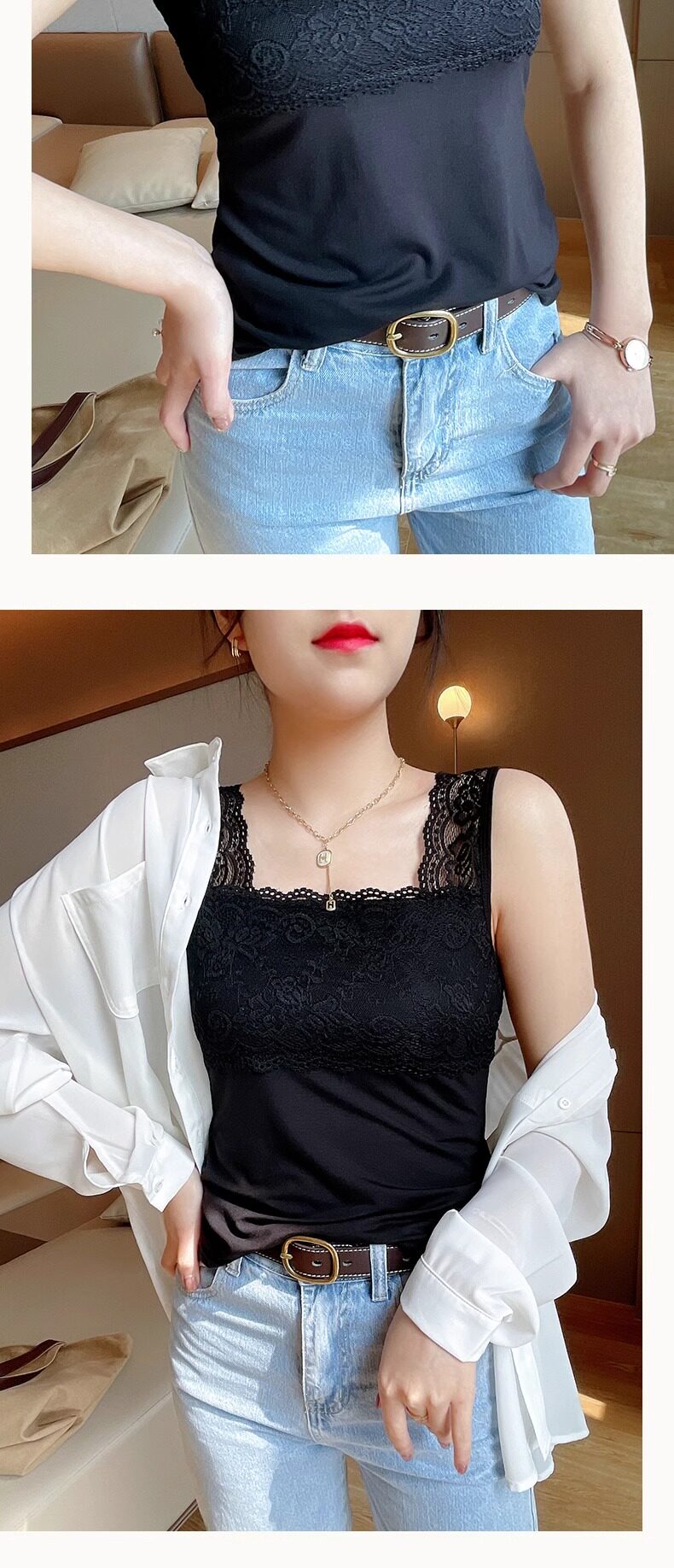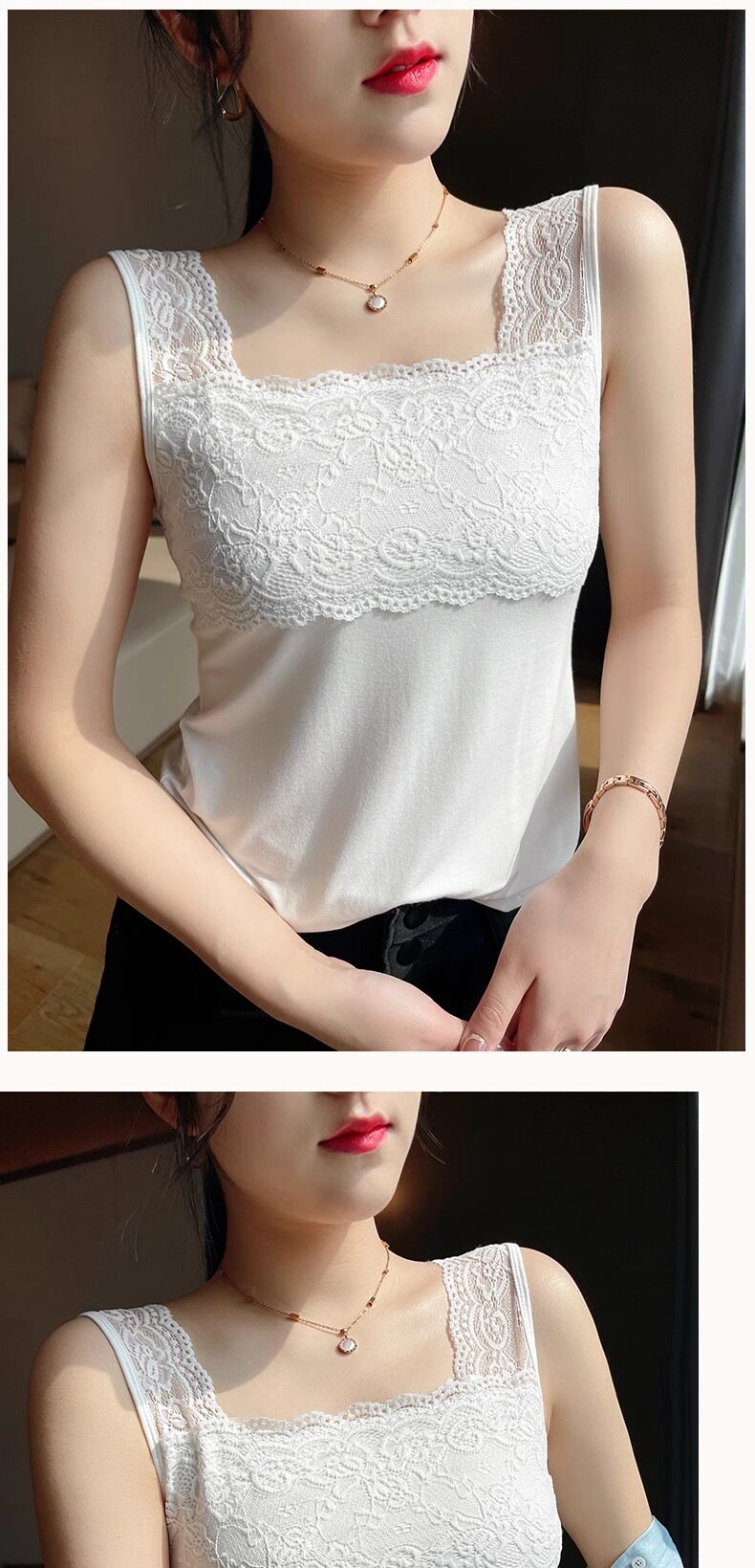 2025 new summer camisole plus size women's lace all-match slim suit bottoming shirt top