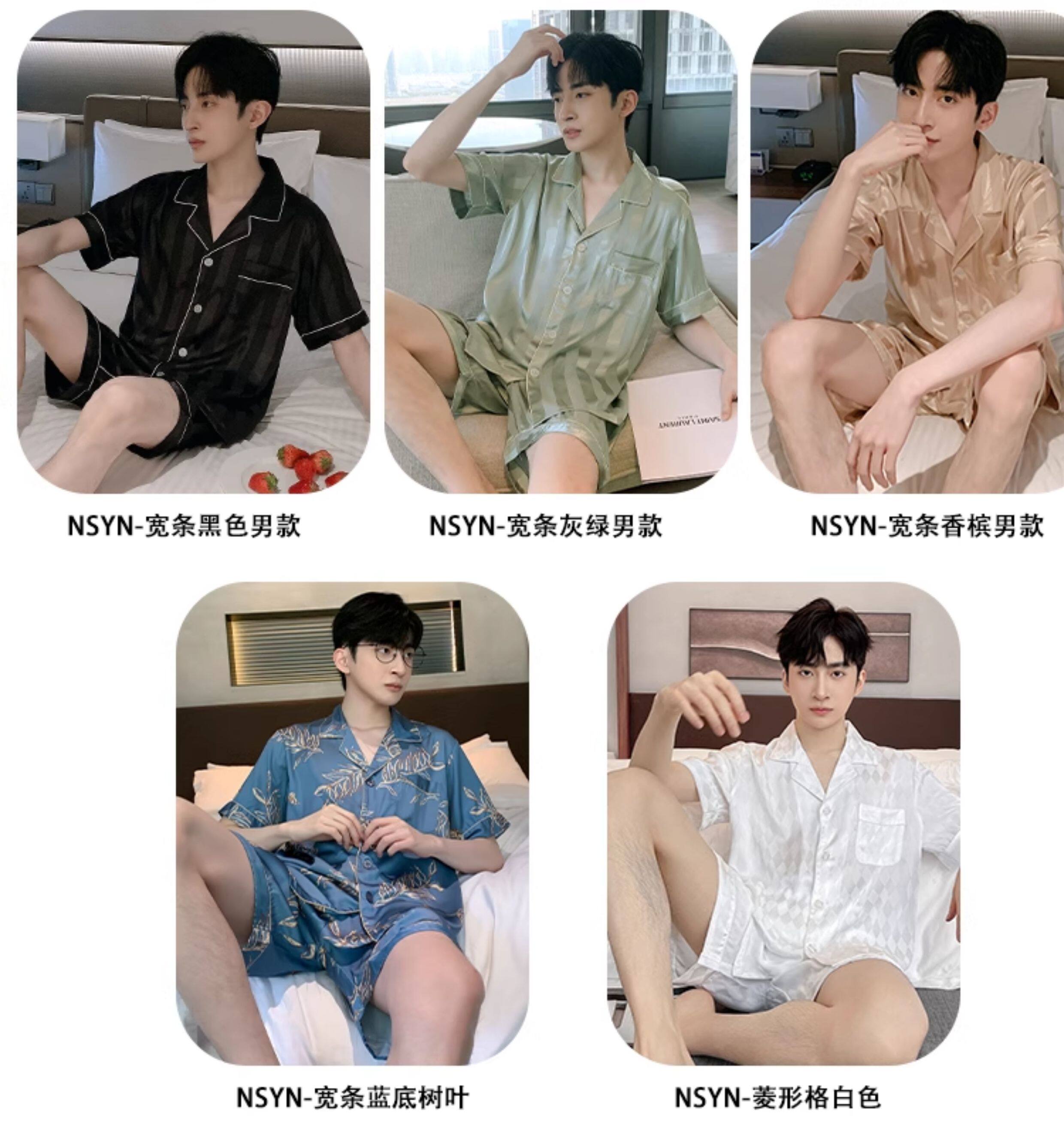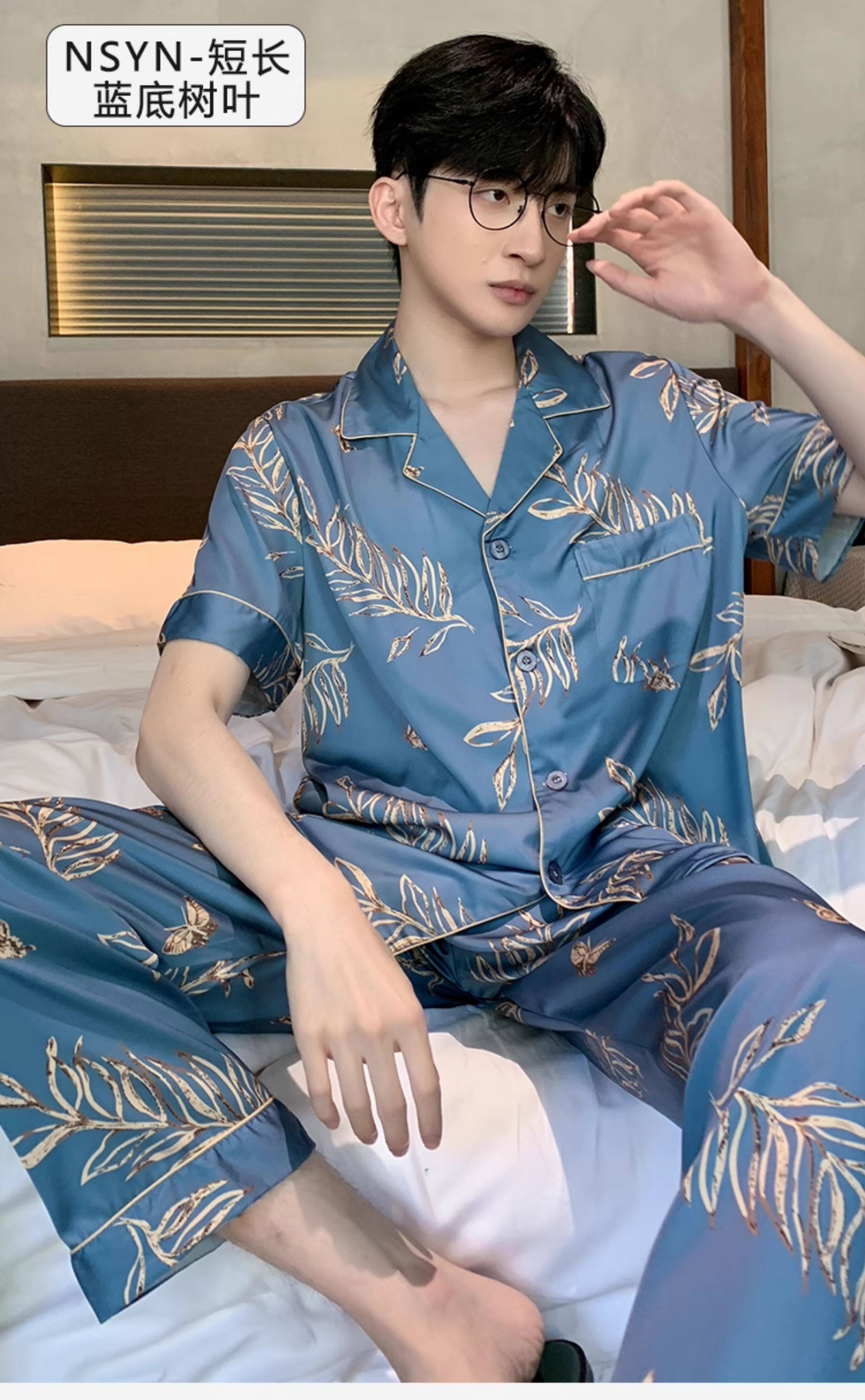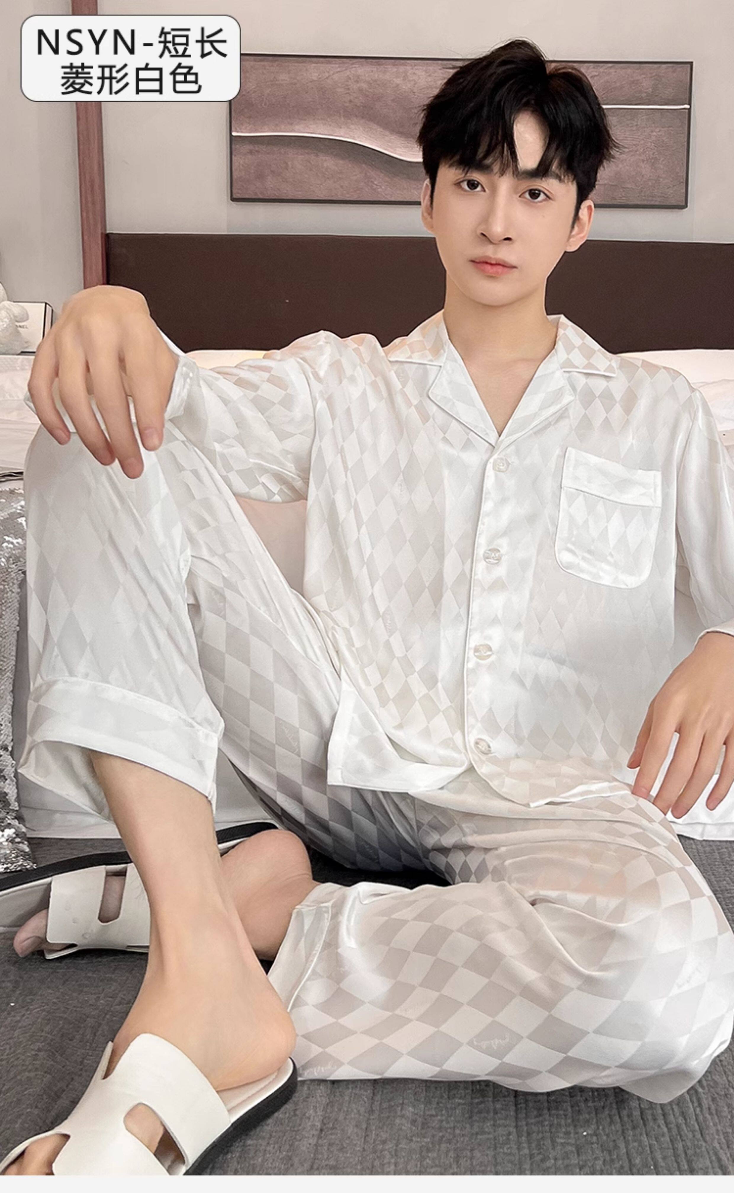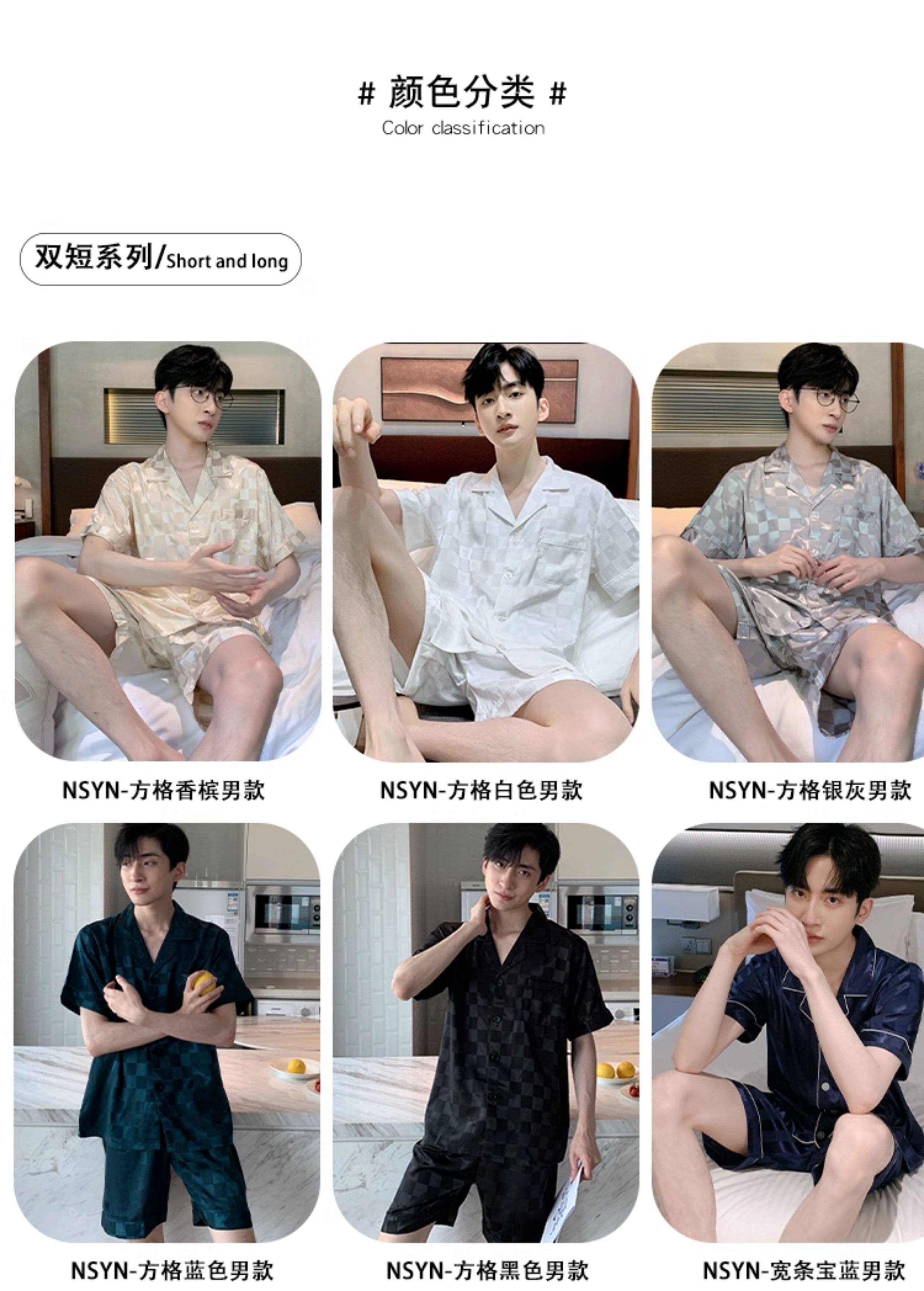 Ice Silk Pajamas for Men, Summer 2025 New Style, Spring and Autumn Thin Short-Sleeved Shorts, Can Be Worn Outside, Home Wear, High-End Set