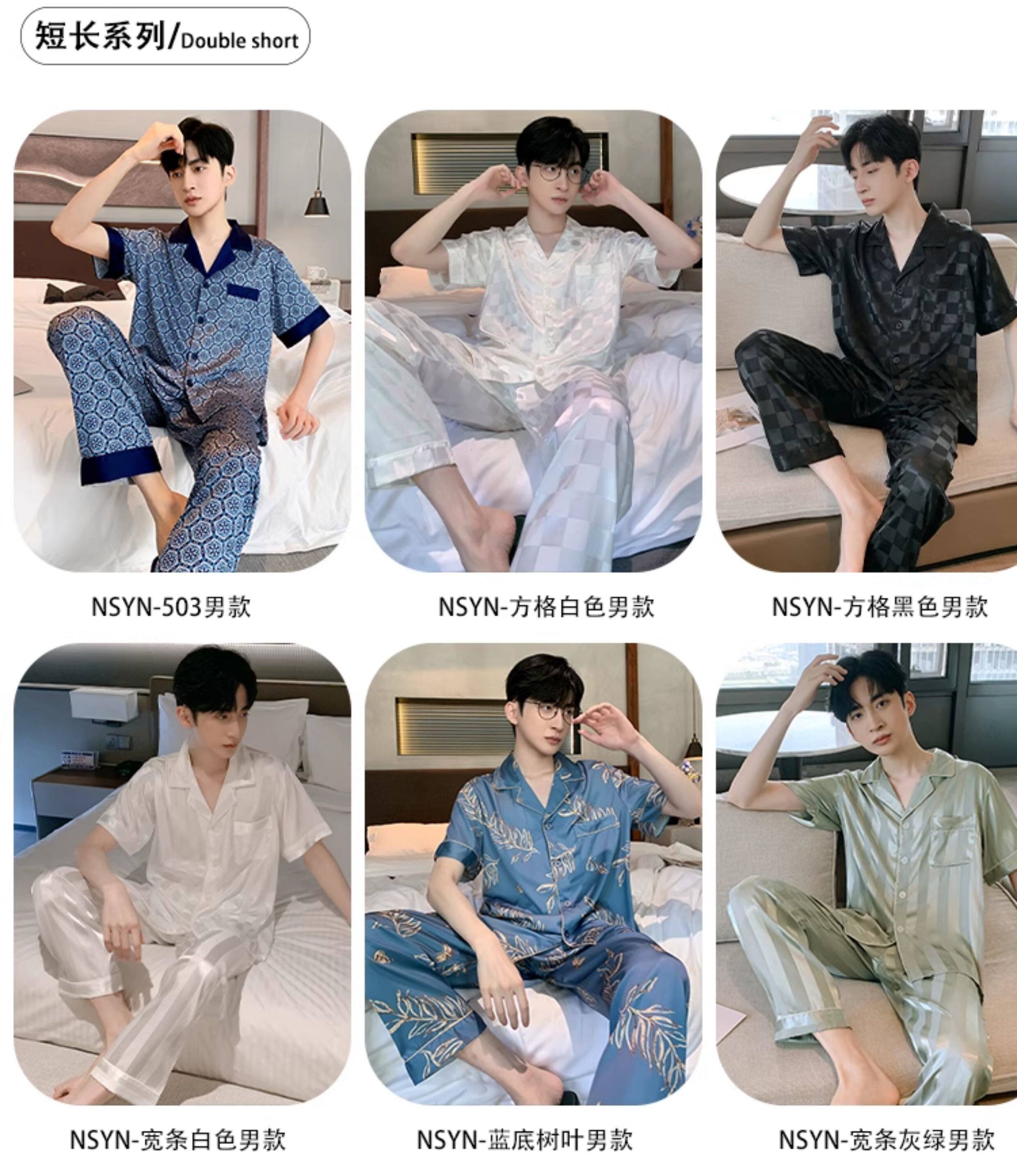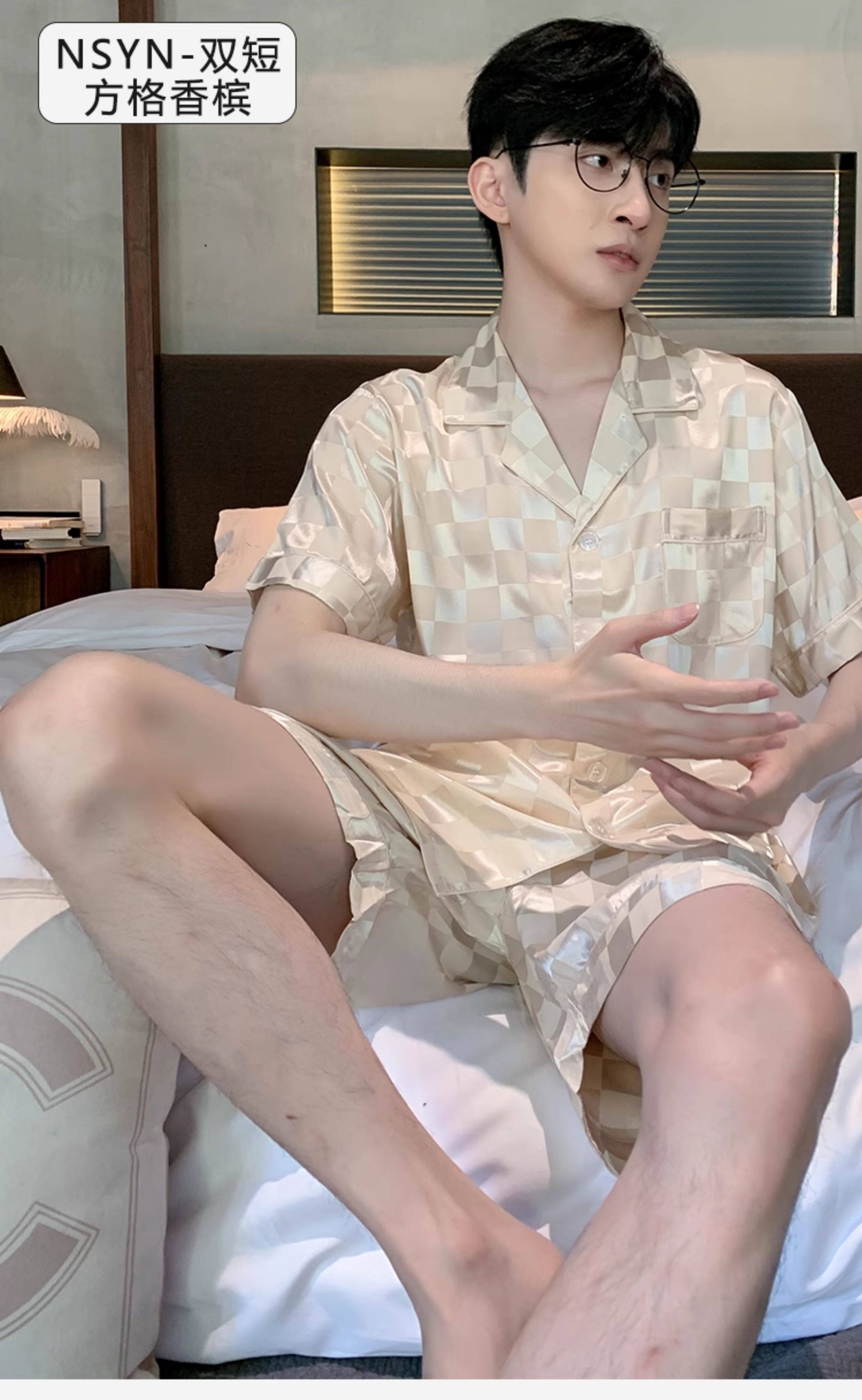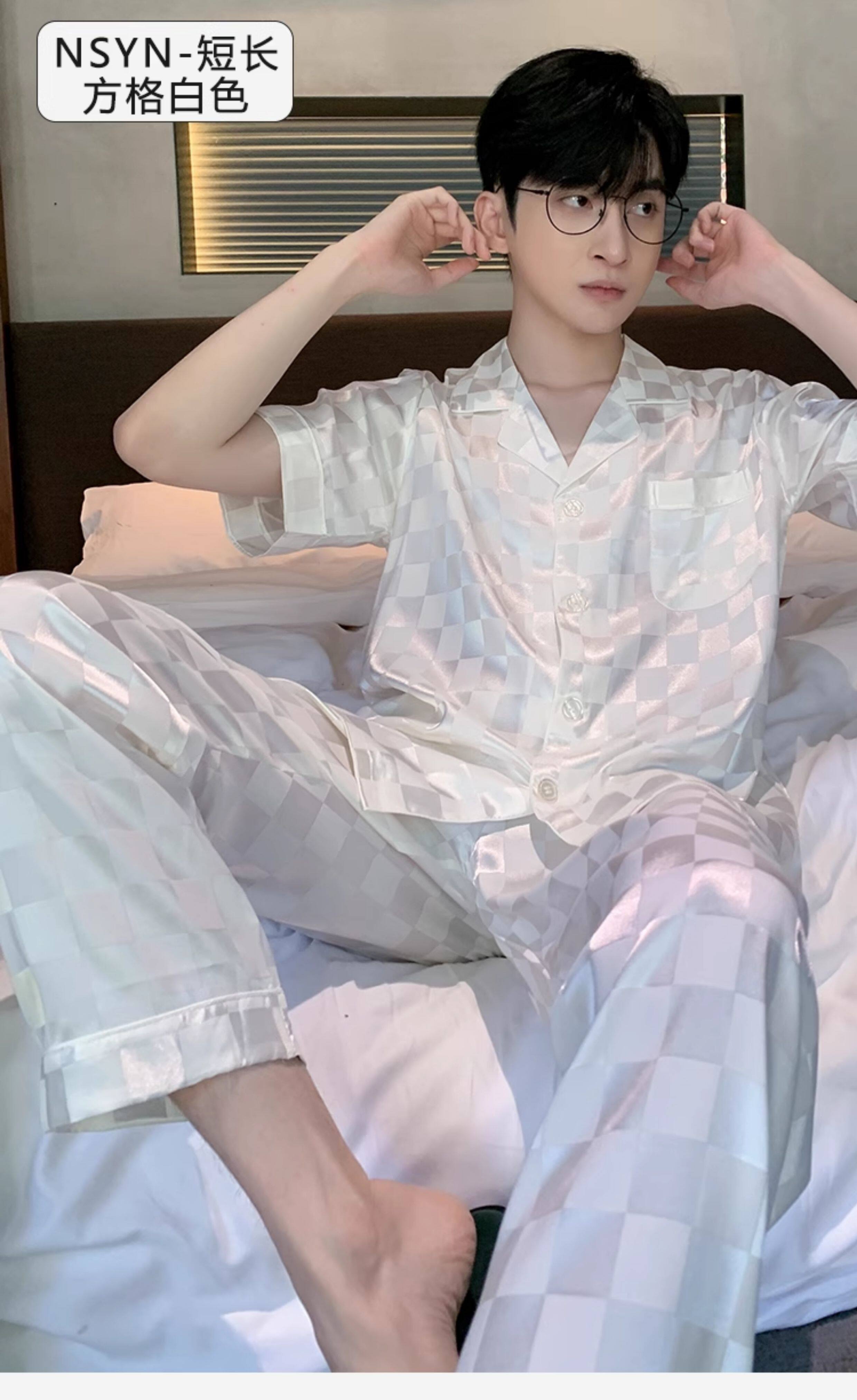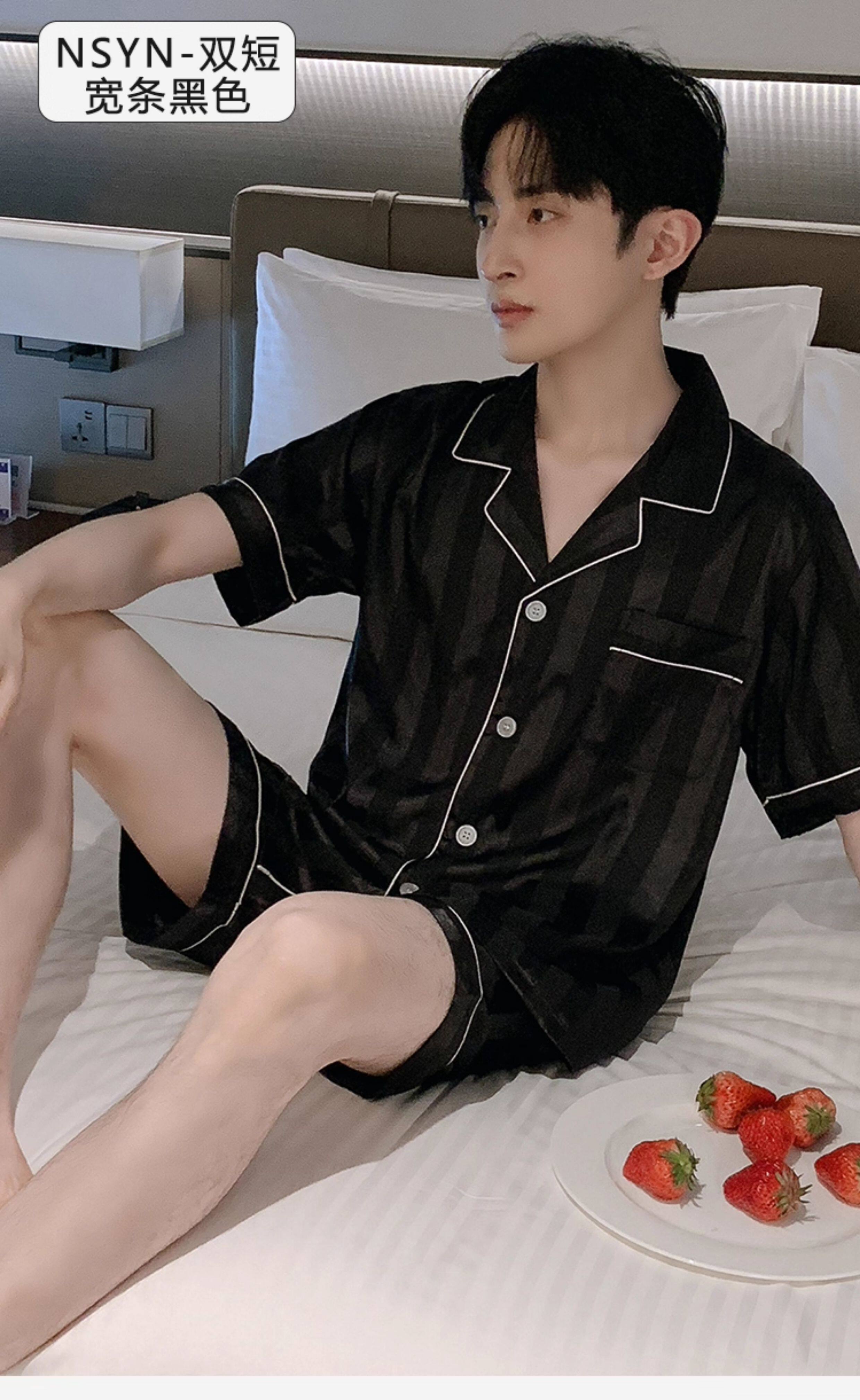 Ice Silk Pajamas for Men, Summer 2025 New Style, Spring and Autumn Thin Short-Sleeved Shorts, Can Be Worn Outside, Home Wear, High-End Set
