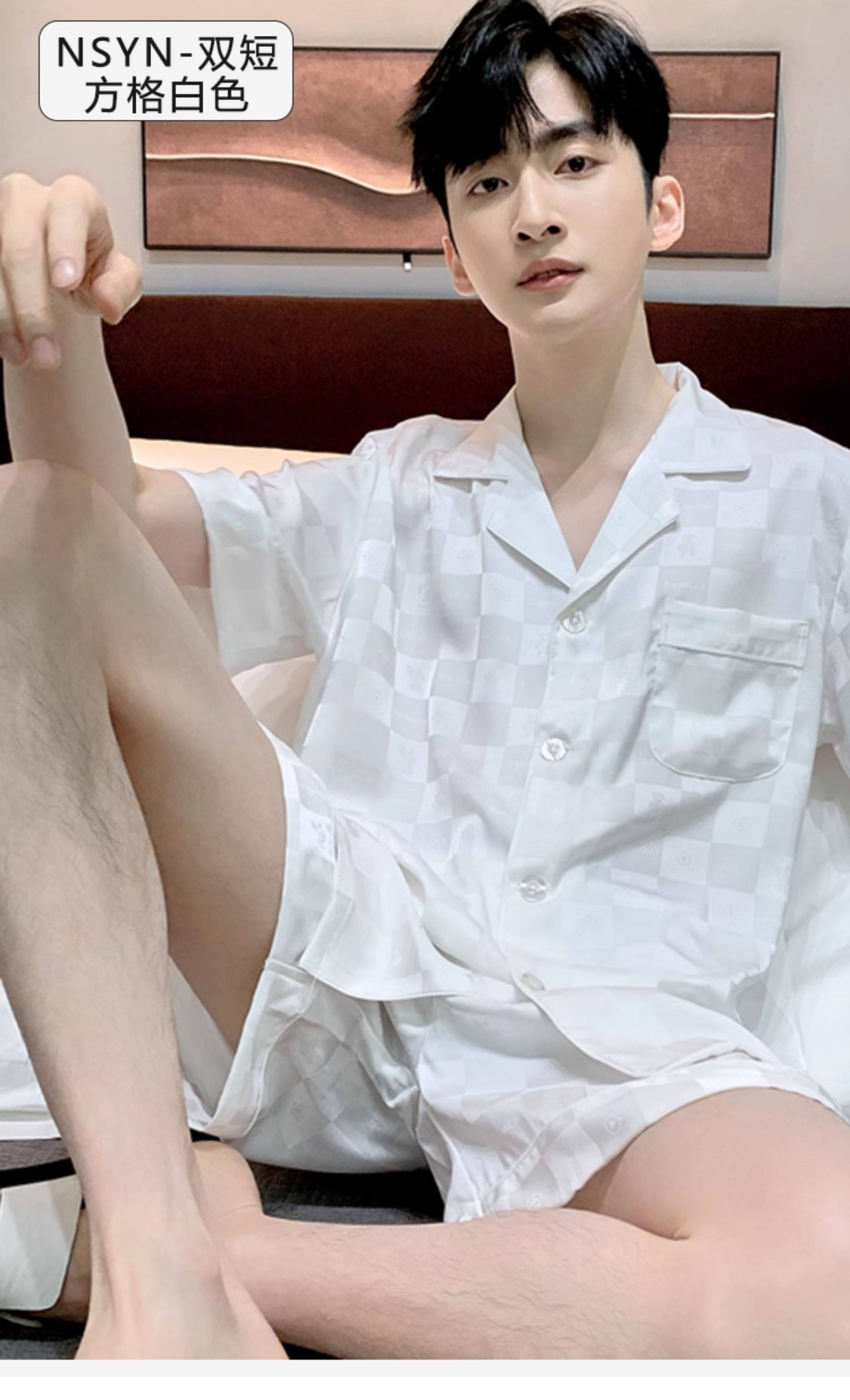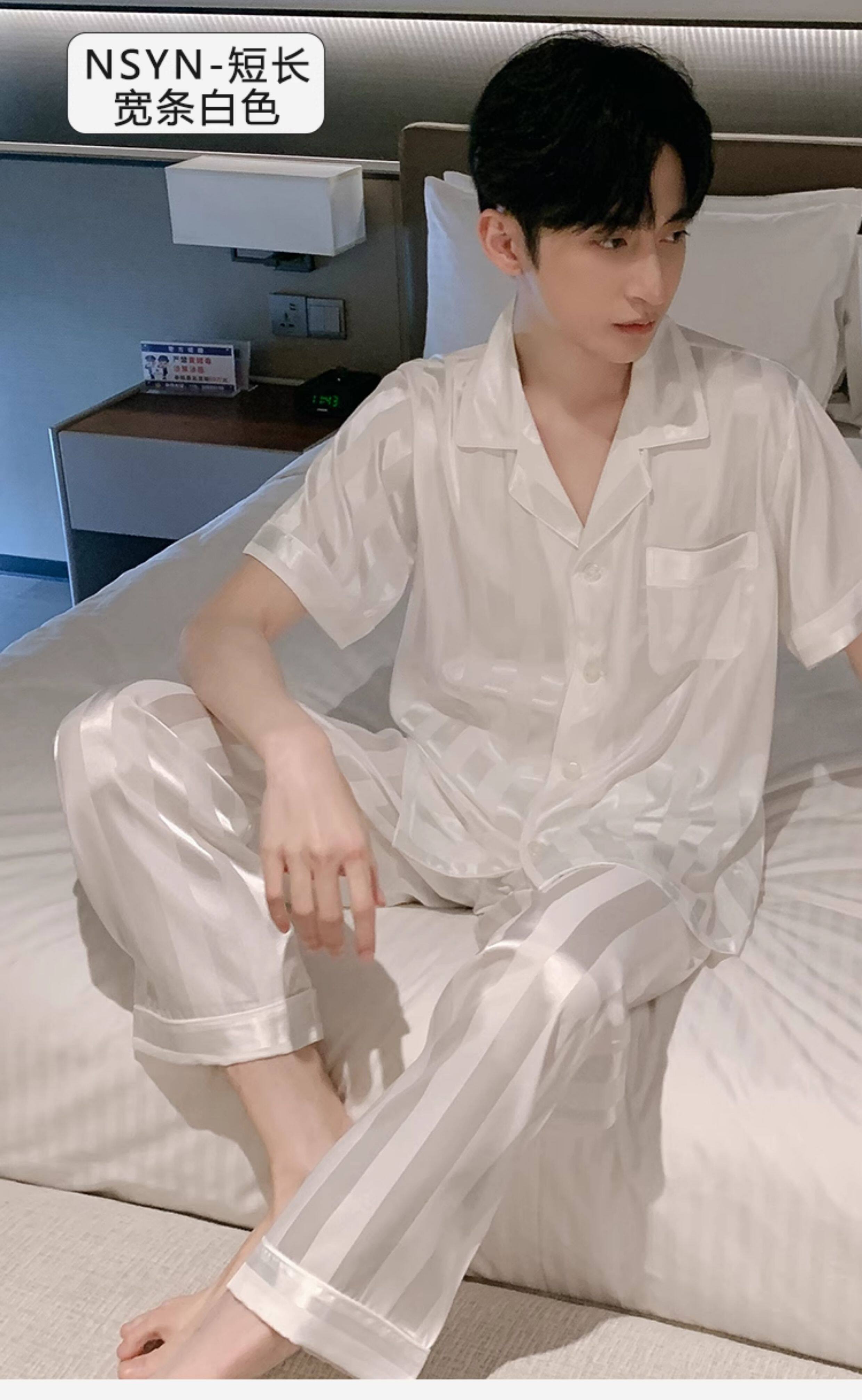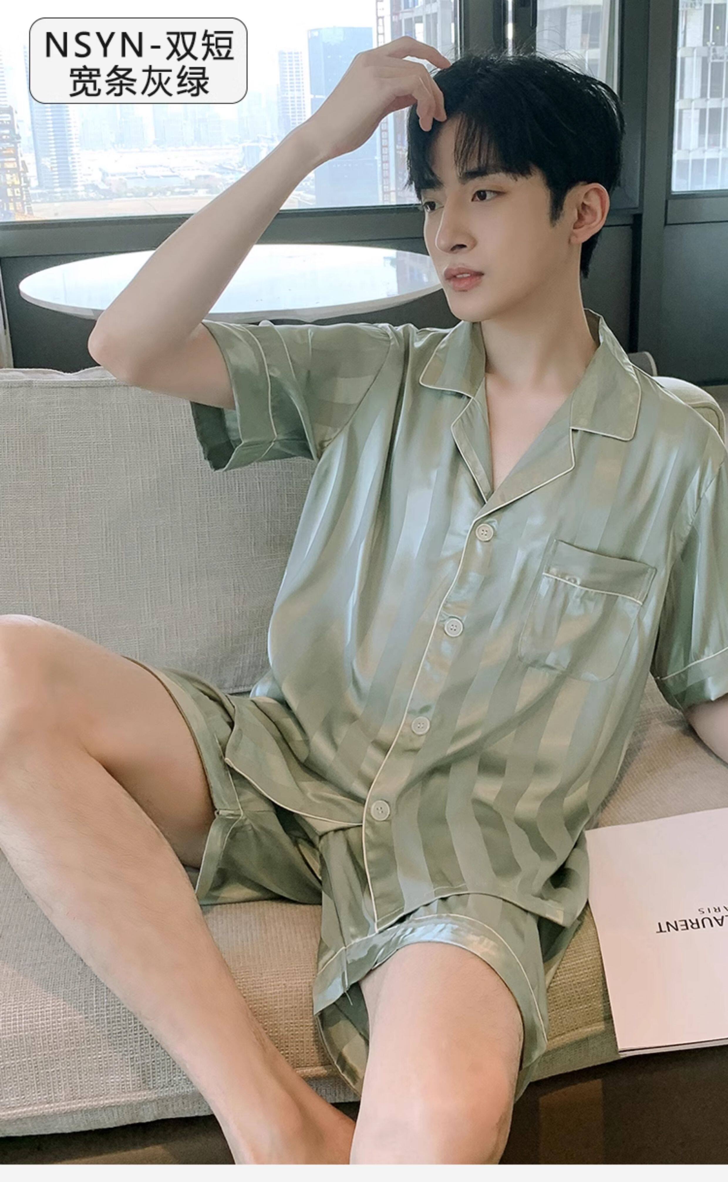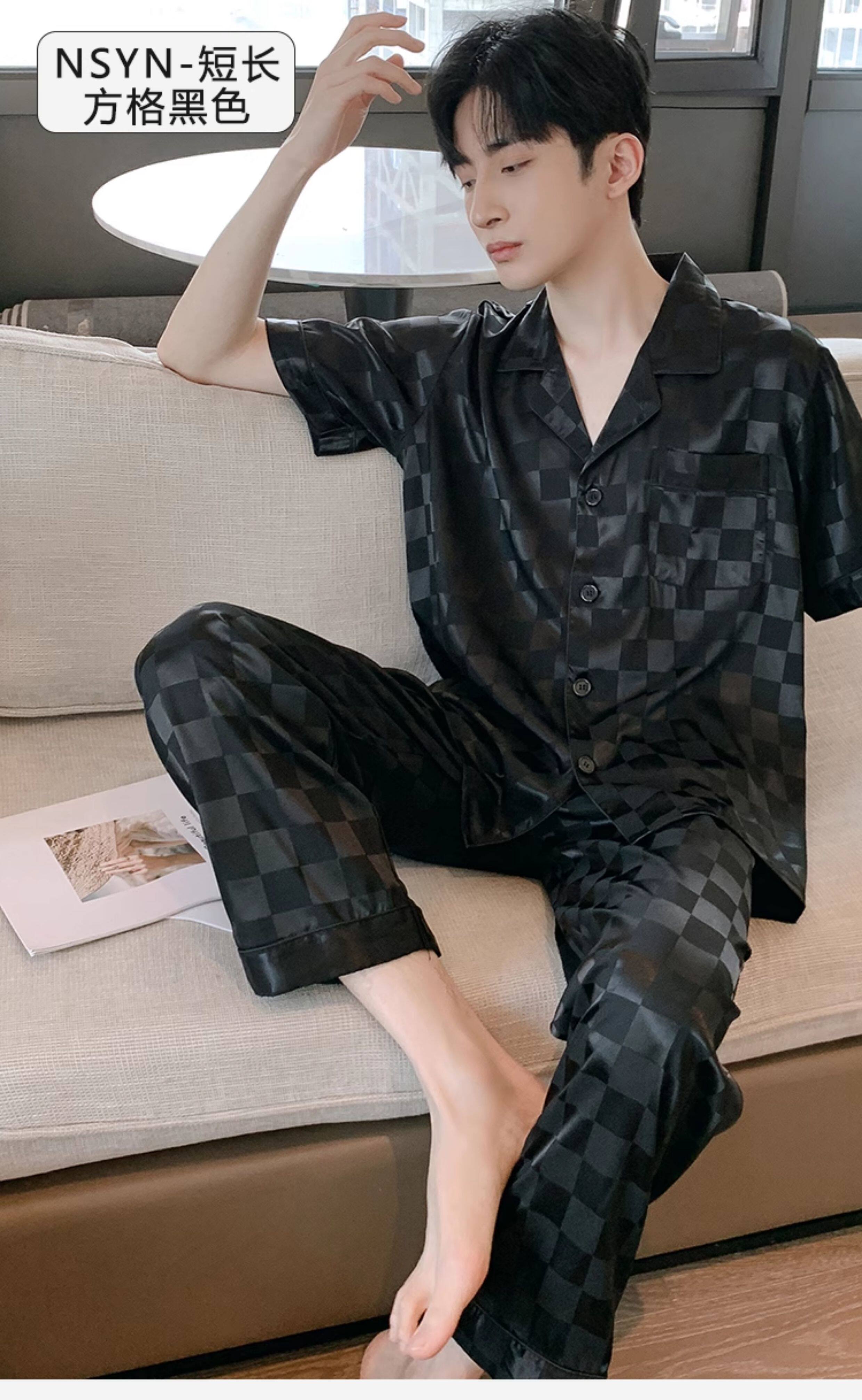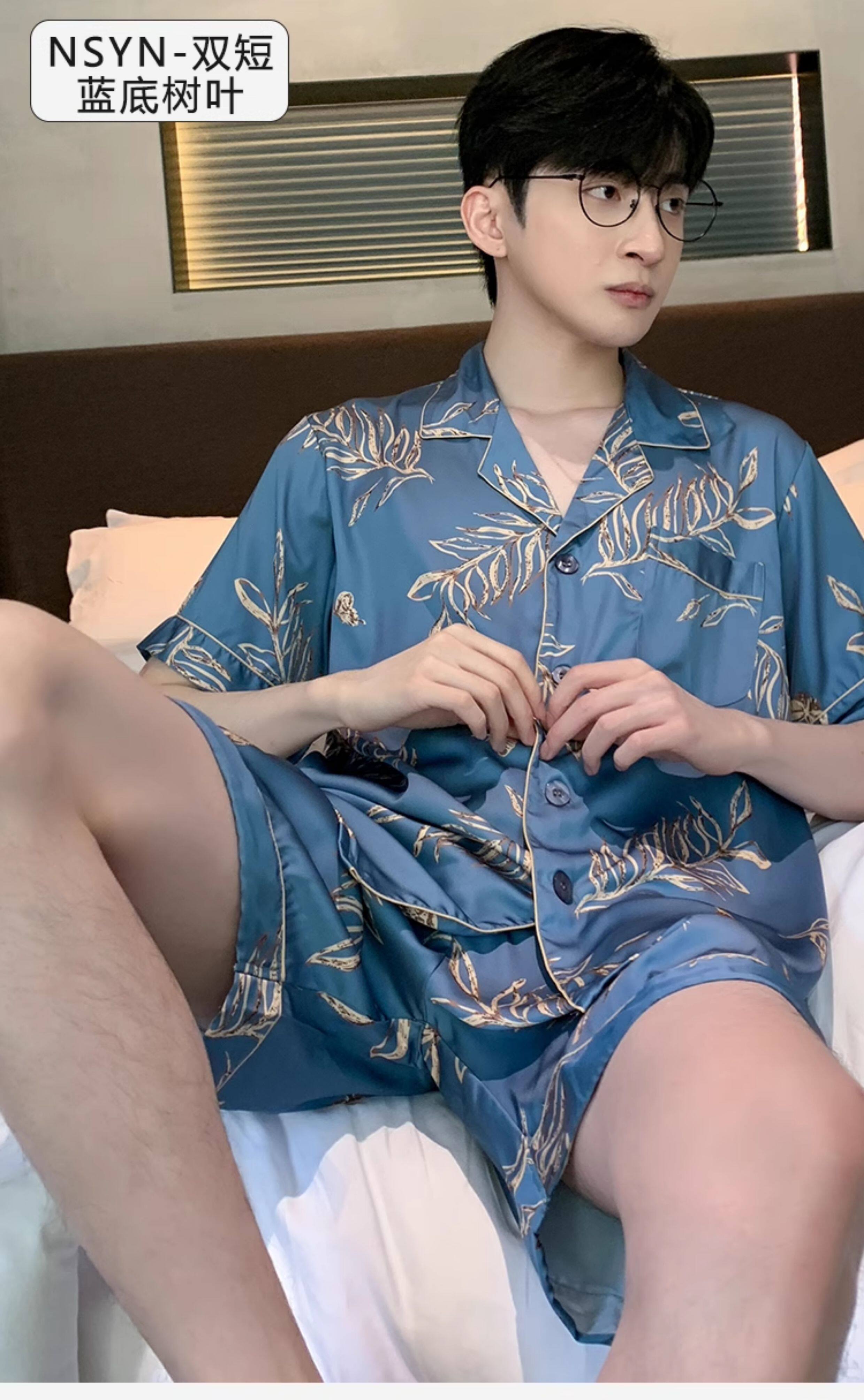 Ice Silk Pajamas for Men, Summer 2025 New Style, Spring and Autumn Thin Short-Sleeved Shorts, Can Be Worn Outside, Home Wear, High-End Set