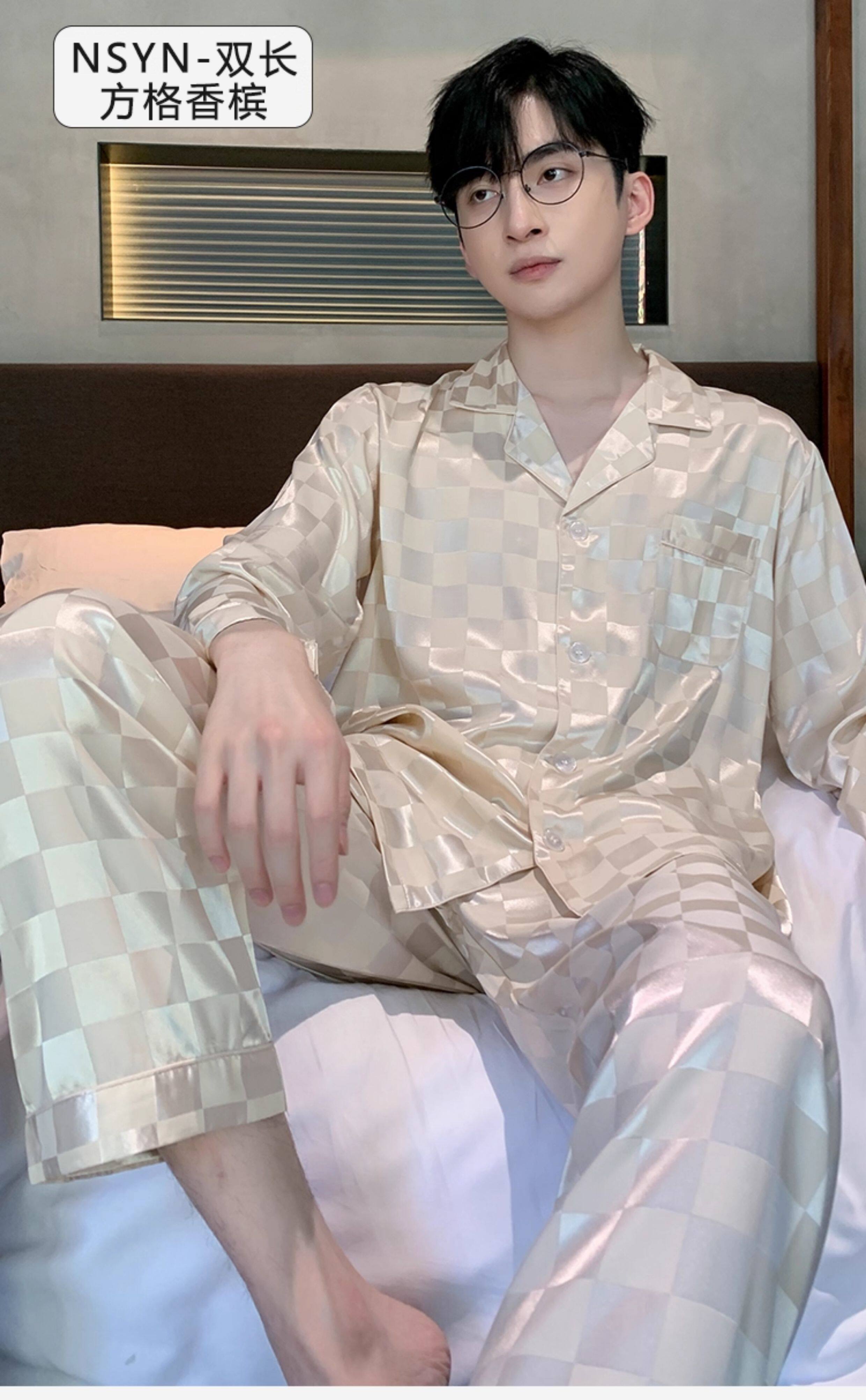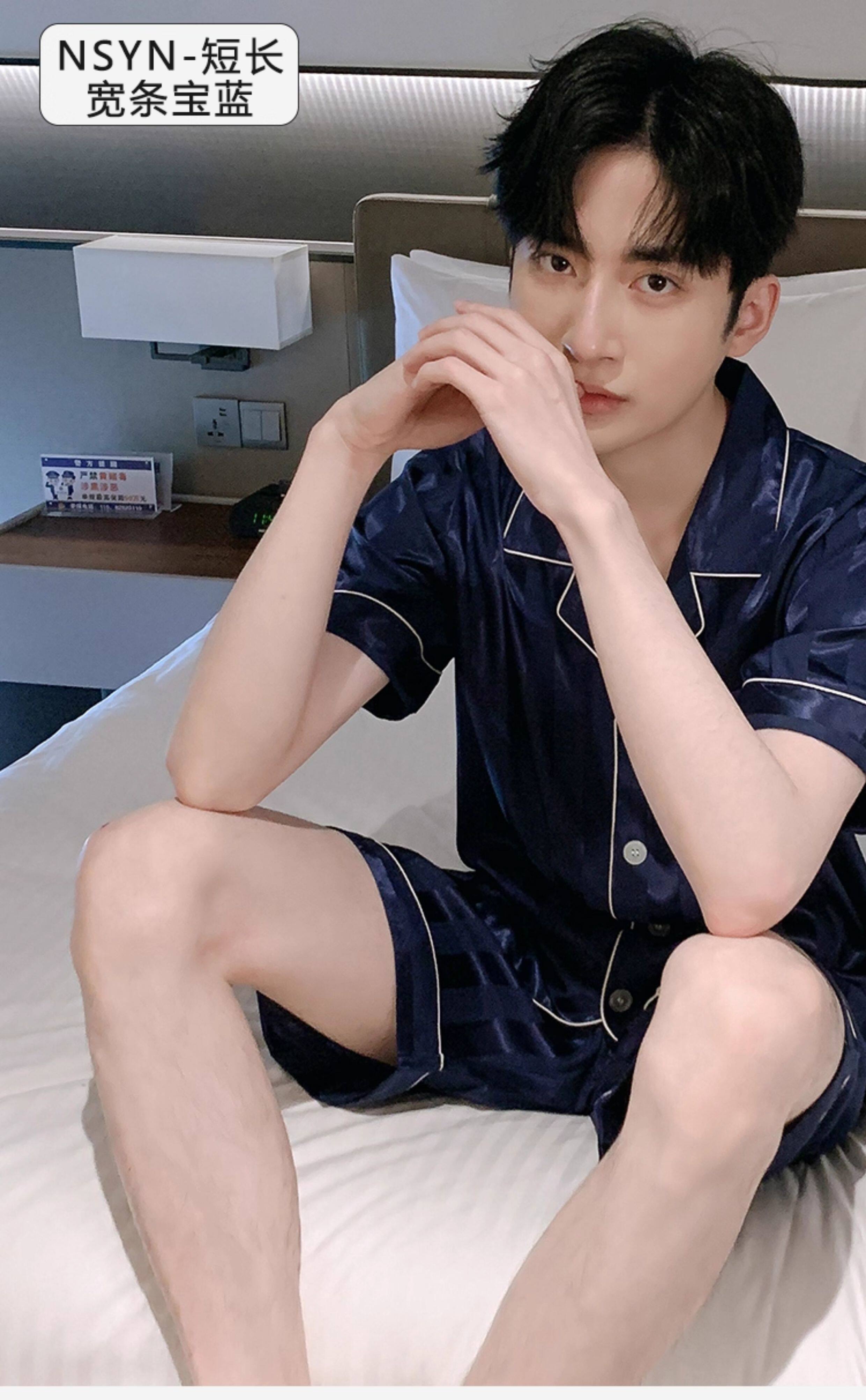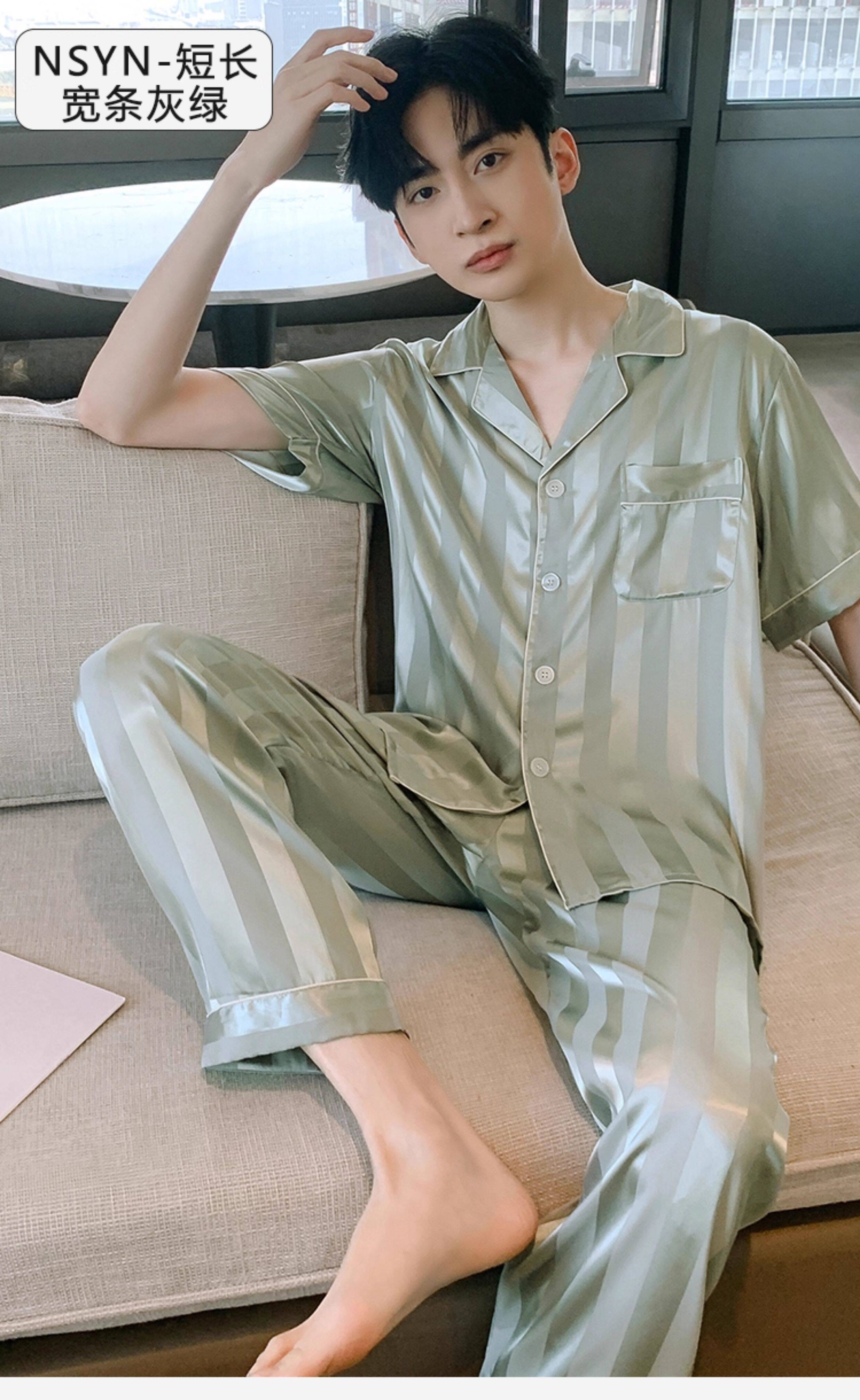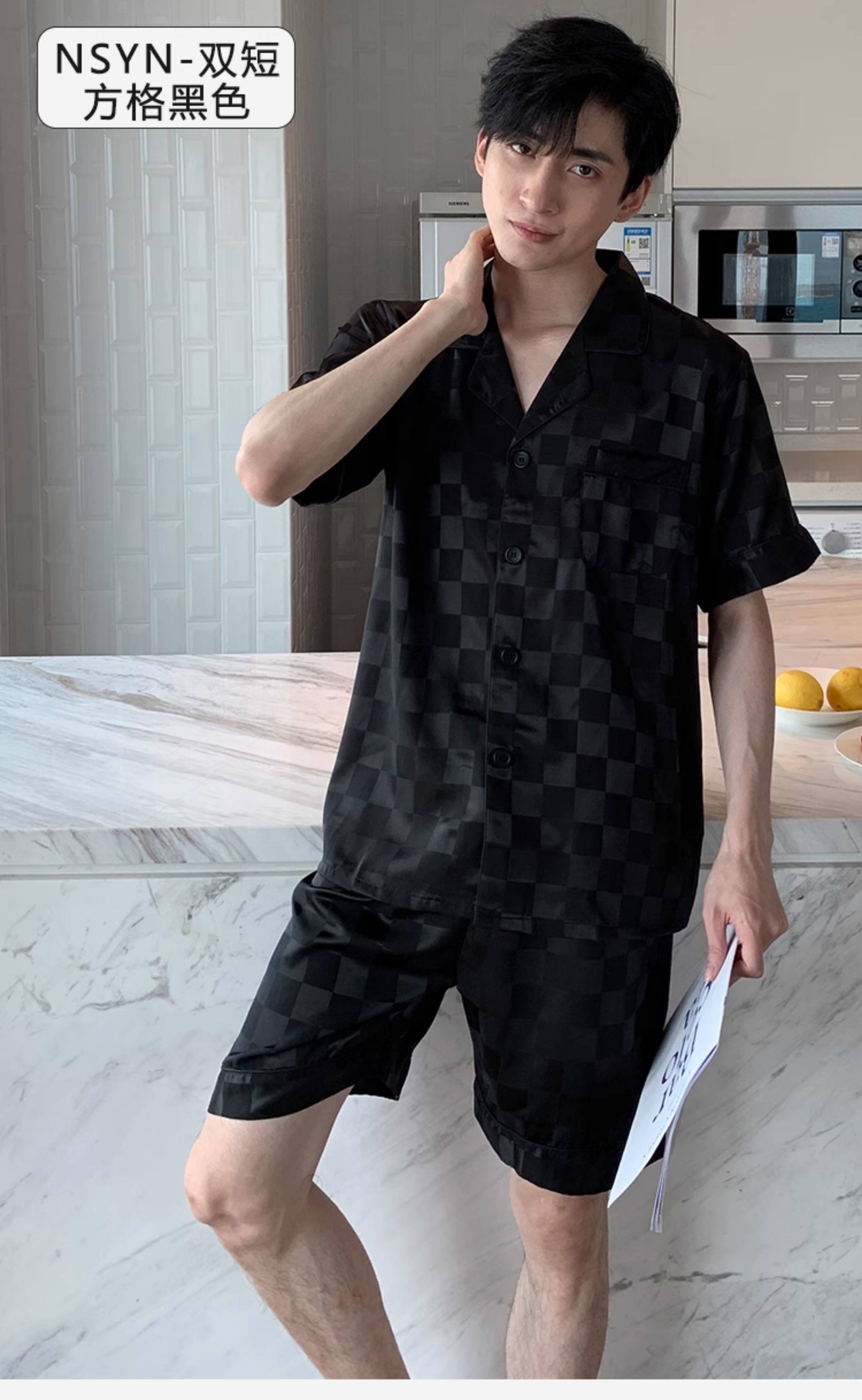 Ice Silk Pajamas for Men, Summer 2025 New Style, Spring and Autumn Thin Short-Sleeved Shorts, Can Be Worn Outside, Home Wear, High-End Set