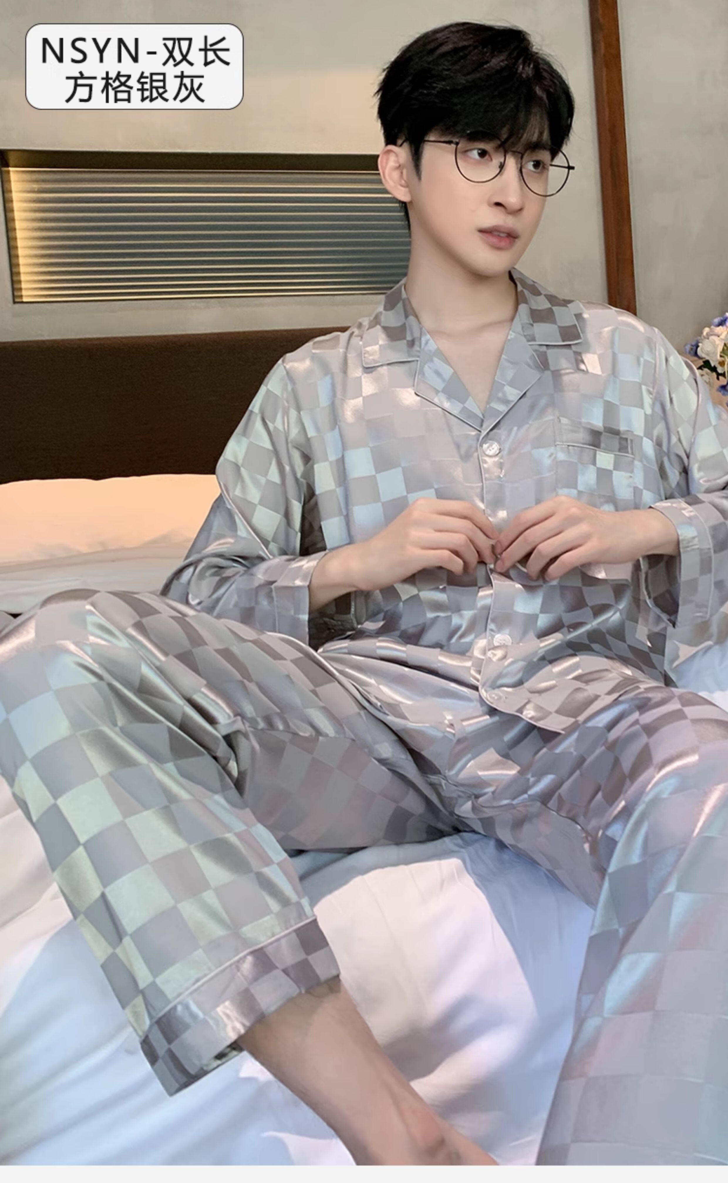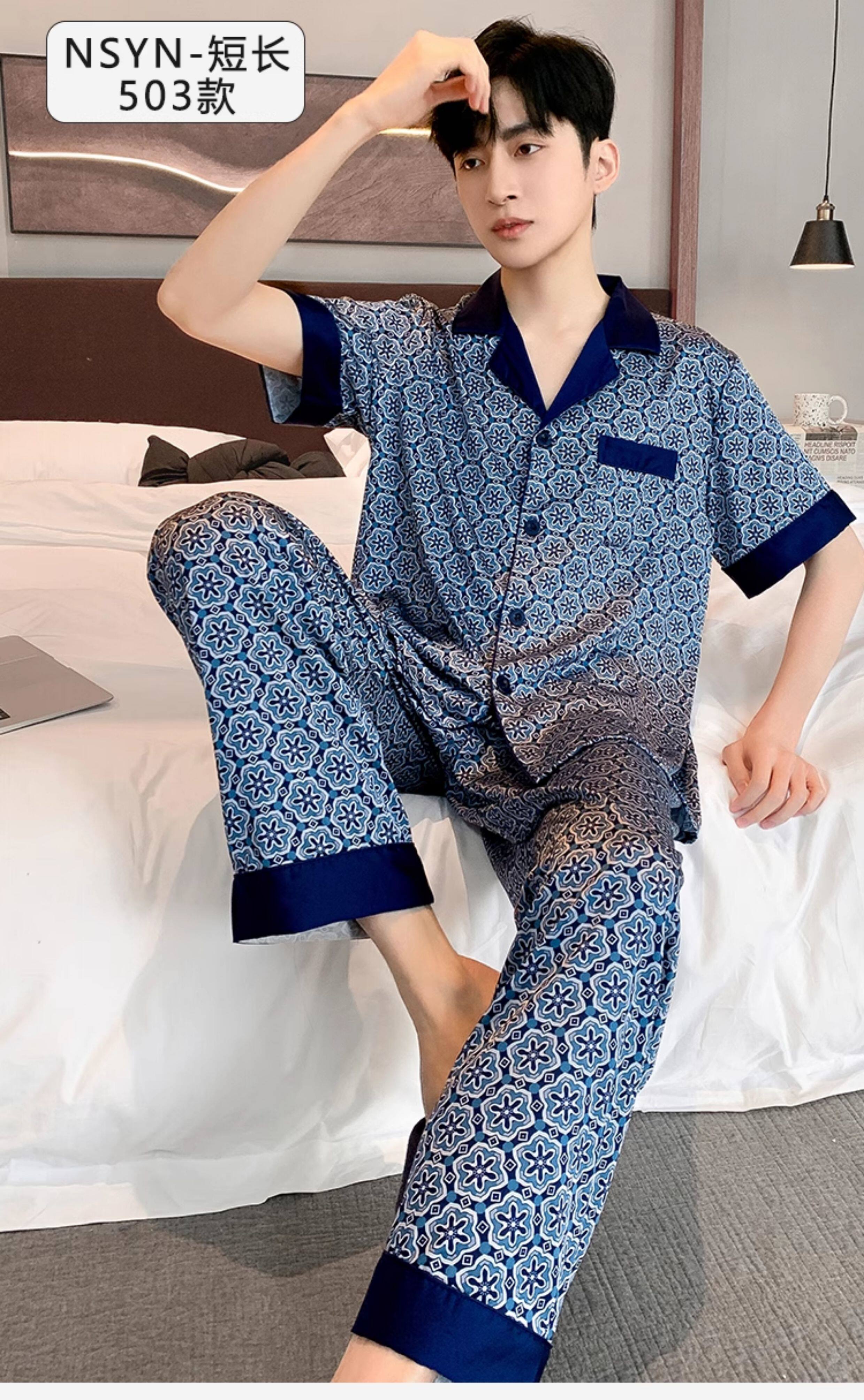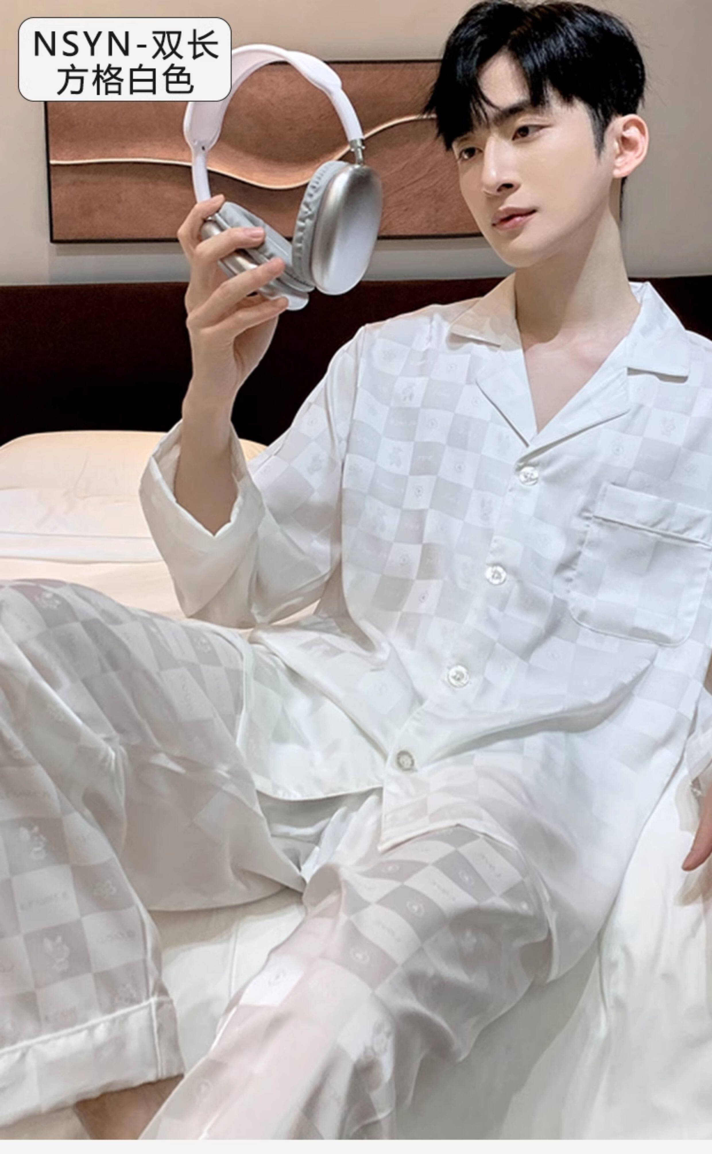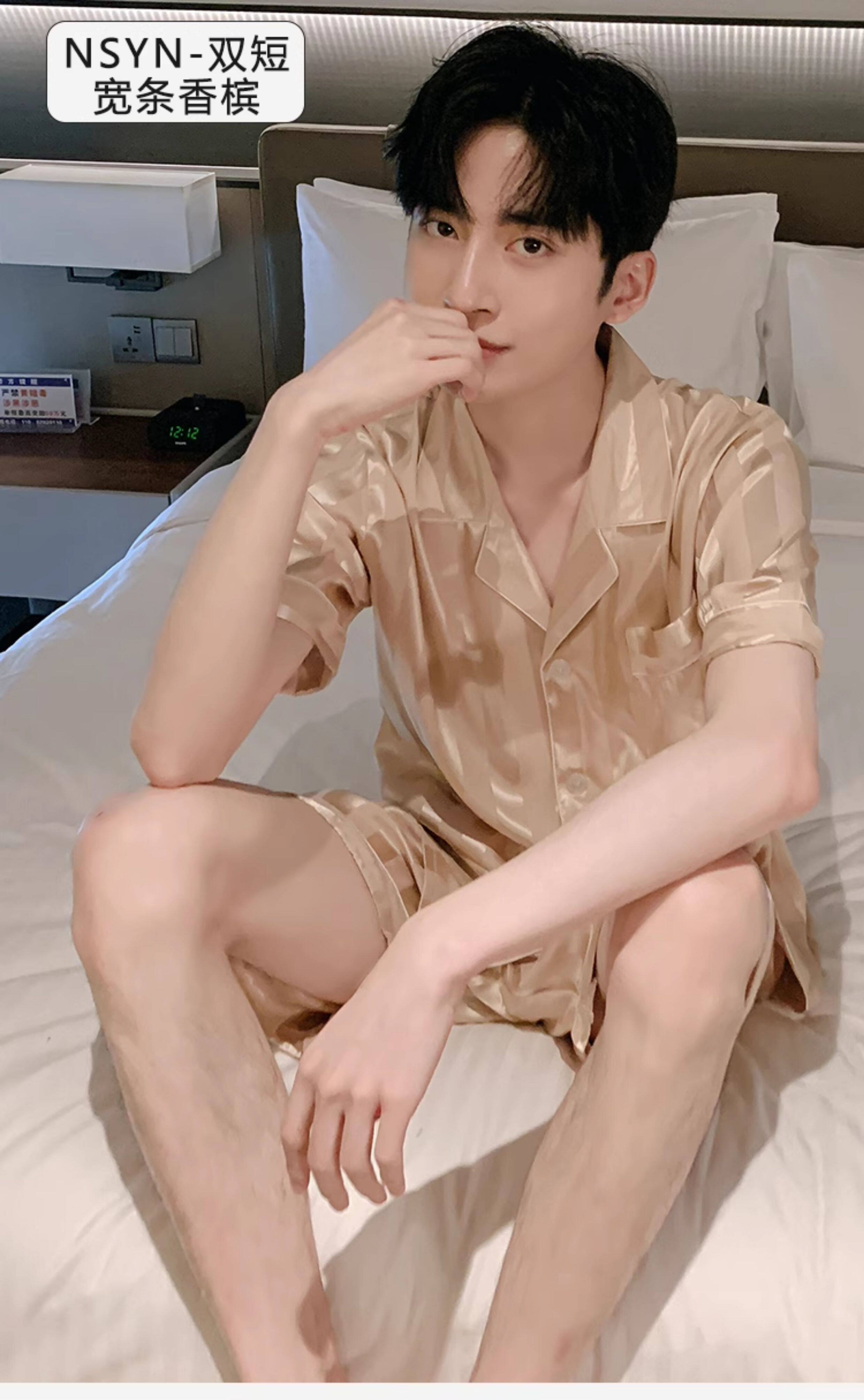 Ice Silk Pajamas for Men, Summer 2025 New Style, Spring and Autumn Thin Short-Sleeved Shorts, Can Be Worn Outside, Home Wear, High-End Set