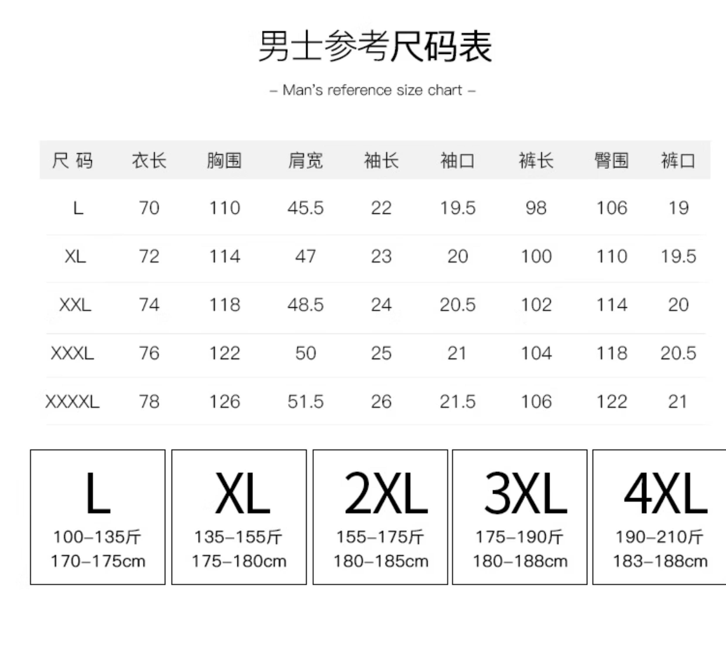 Size M (Recommended Height 165-170cm and Weight 47.5-60kg),L (Recommended Height 170-175cm and Weight 60-70kg),XL (Recommended Height 175-180cm and Weight 70-80kg),XXL (Recommended Height 180-185cm and Weight 80-90kg),XXXL (Recommended Height 185-190cm and Weight 90-102.5kg)
