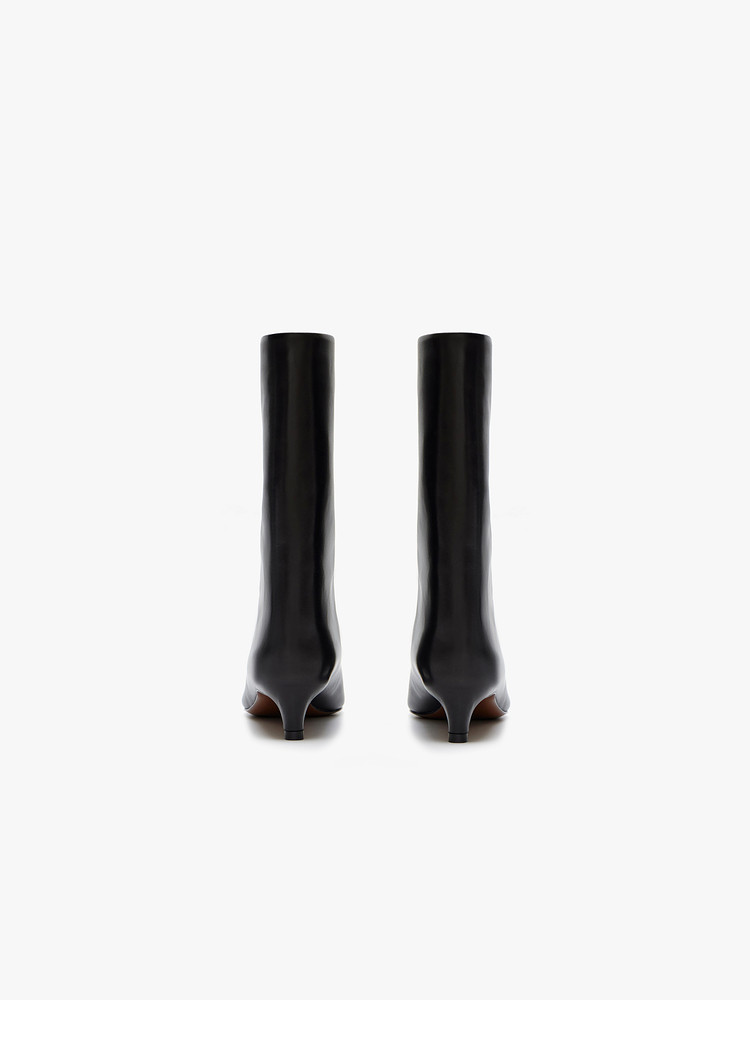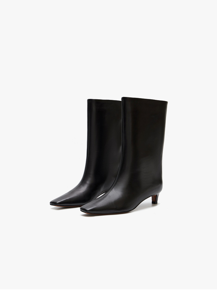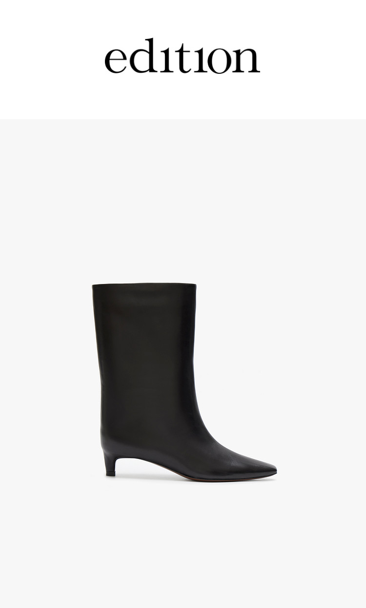 Edition cowhide short boots women's autumn new retro pointed wide tube stiletto leather boots EBD3SHS005