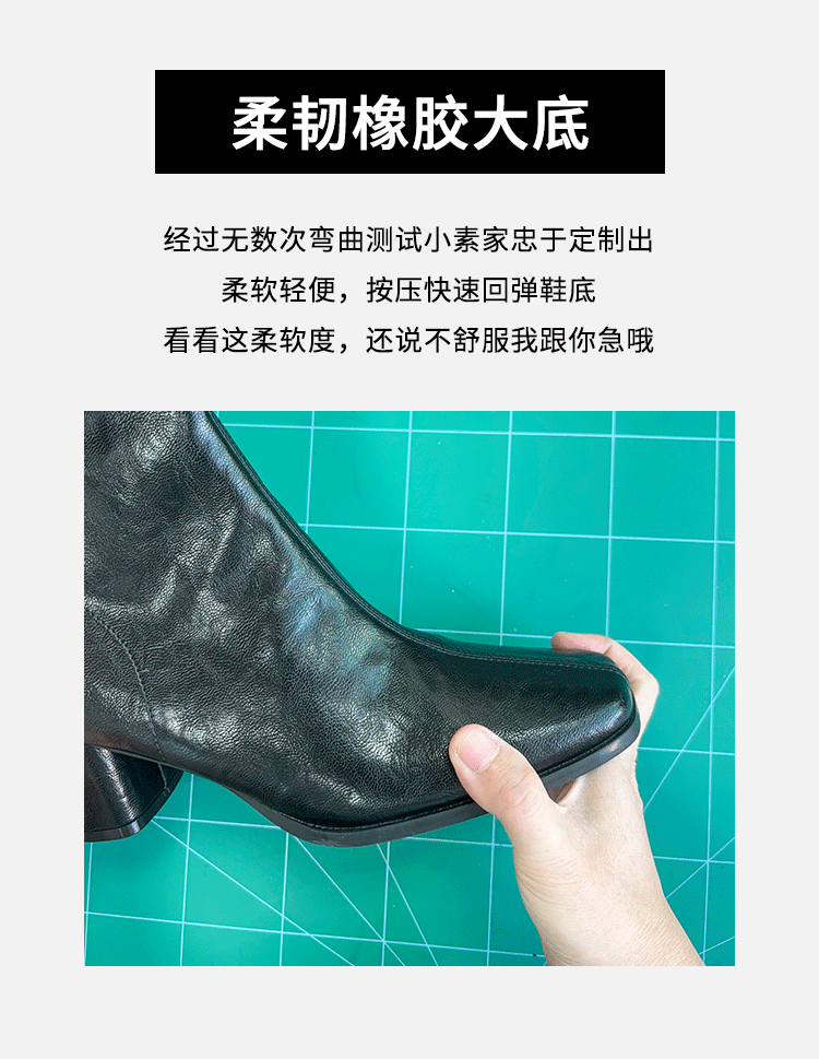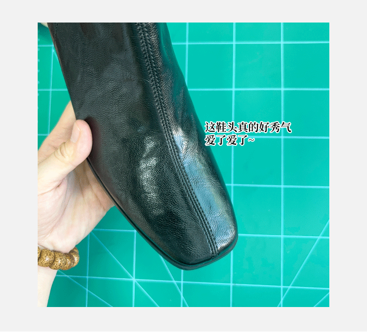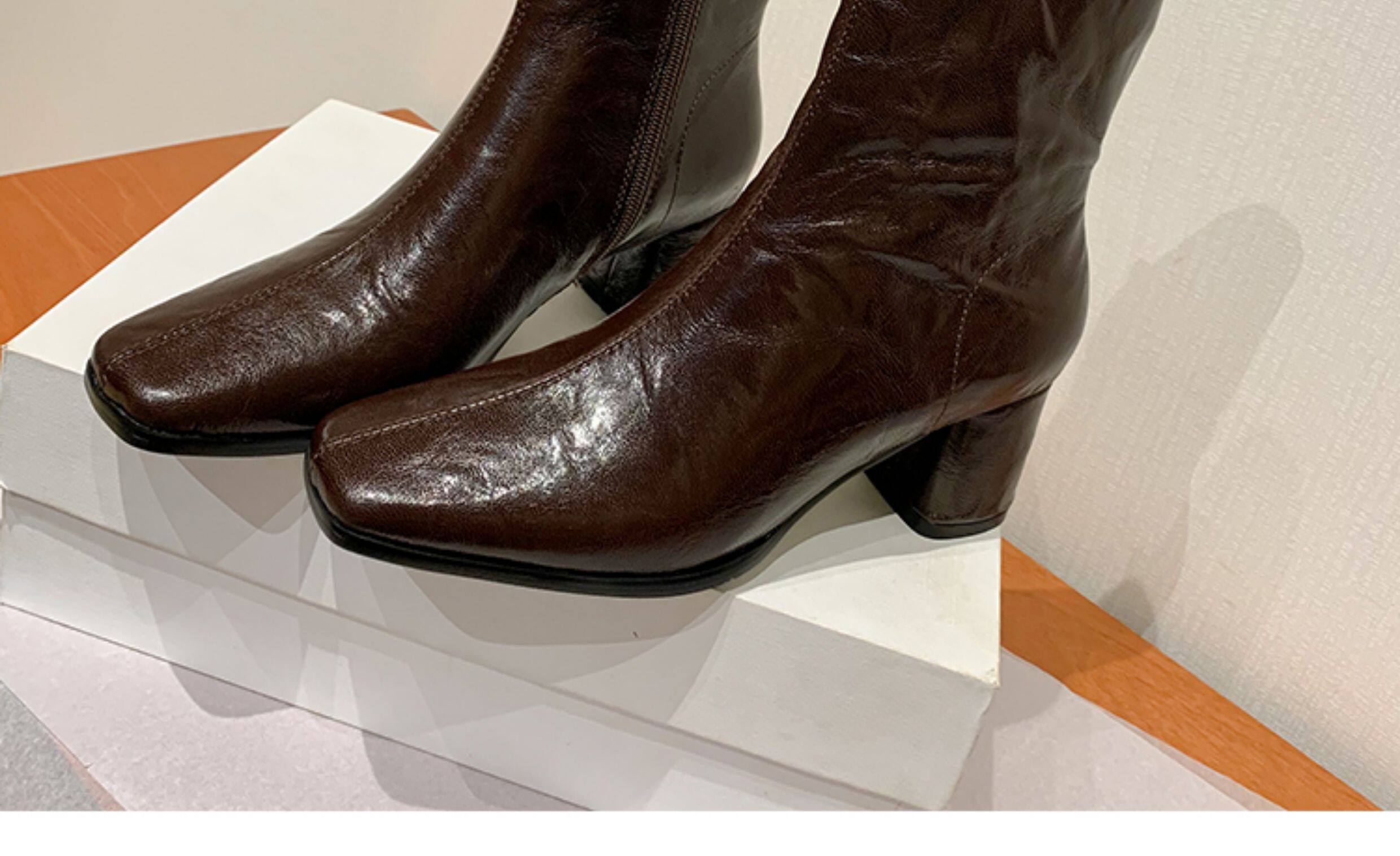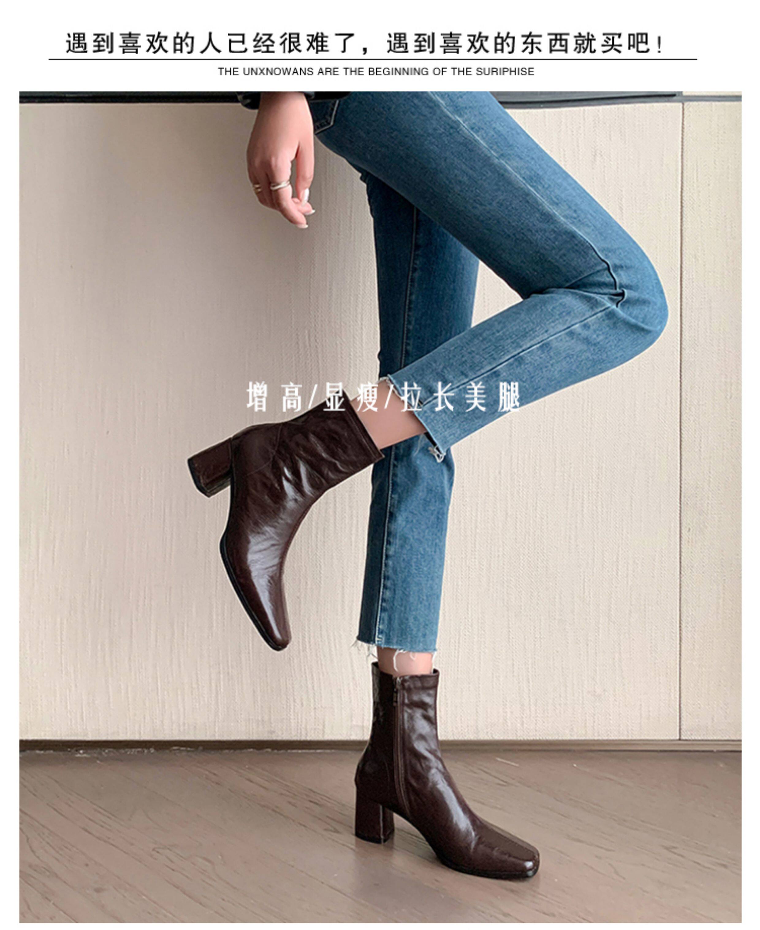 Genuine Leather Chunky Heel Short Boots for Women, Square Toe, 2025 New Spring and Autumn Single Boots, Retro High-Heeled Martin Boots, Chelsea Slim Boots