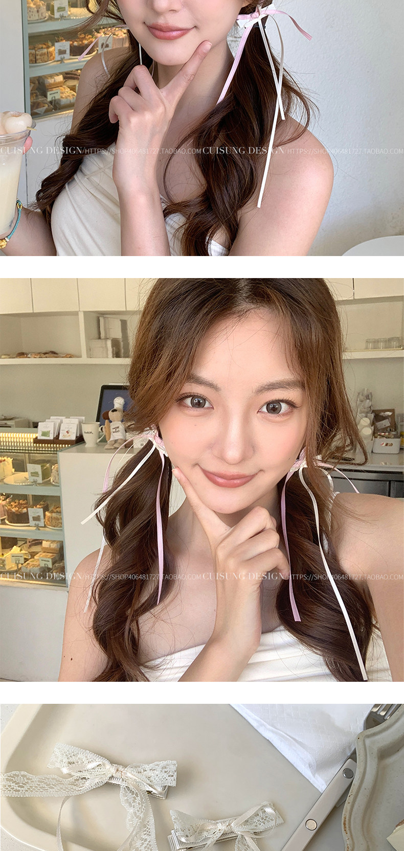 Color Classification 【Pair】Creamy White Lace Bow Ribbon Alligator Hair Clips,【Pair】Green Bow Ribbon Alligator Hair Clips,【Pair】Pink Bow Ribbon Alligator Hair Clips