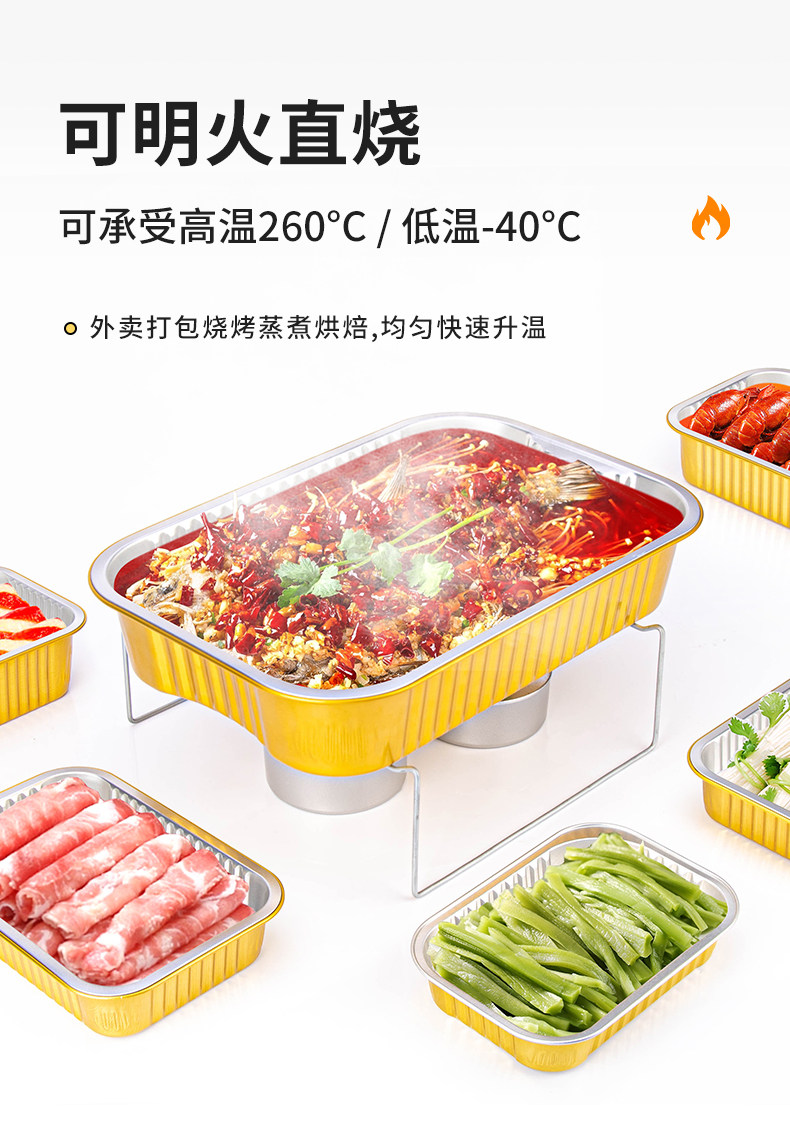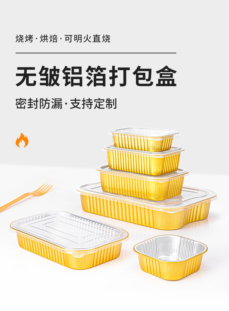 Sai Zhuo Gold Aluminum Foil Tin Paper Box Rectangular Disposable Lunch Box Seafood Crayfish Pre-Made Dish Takeaway Packaging Box