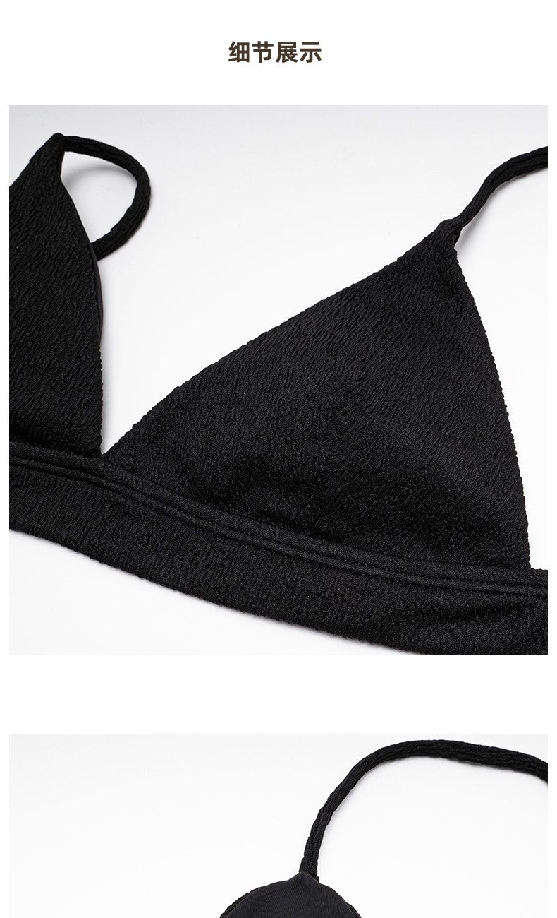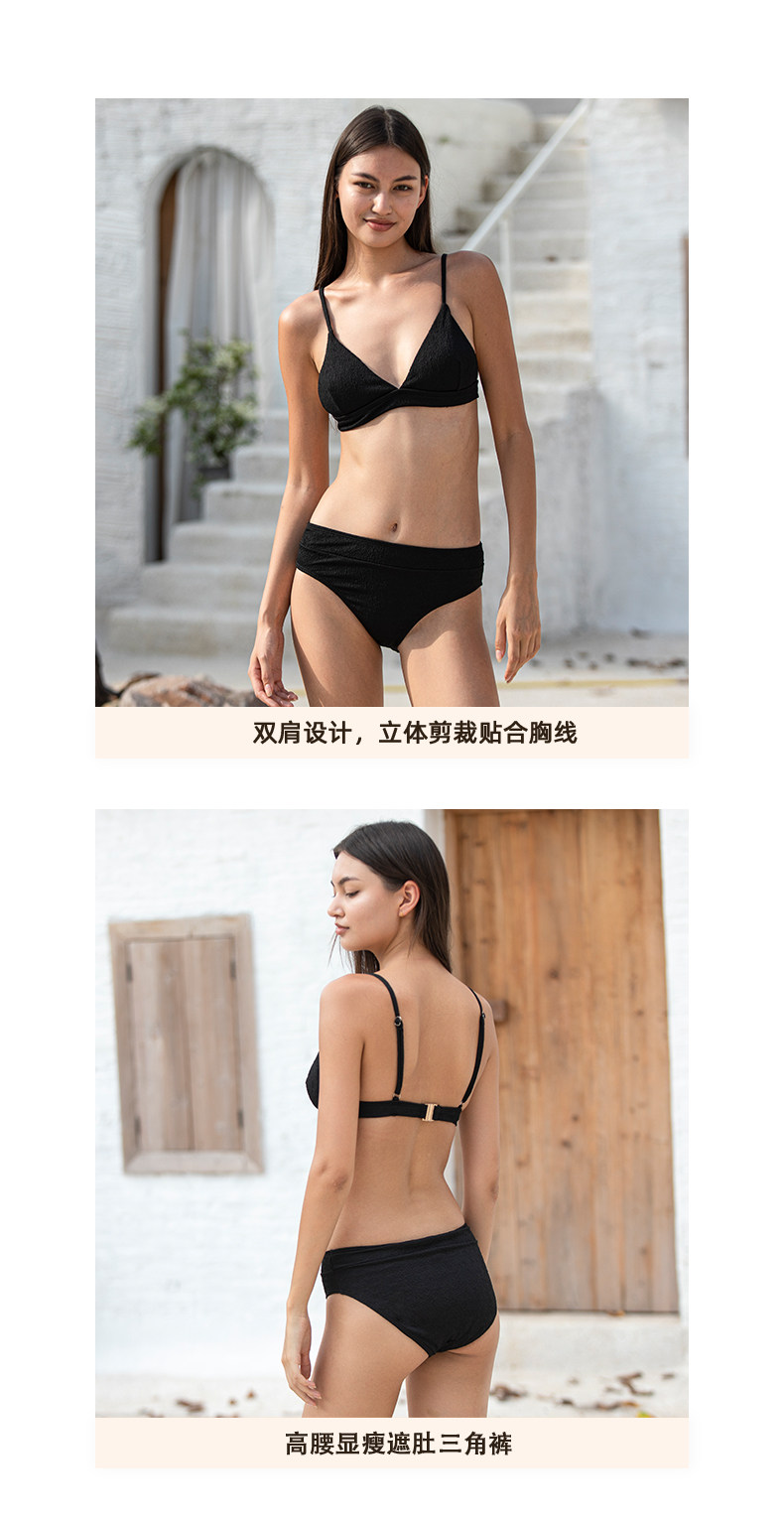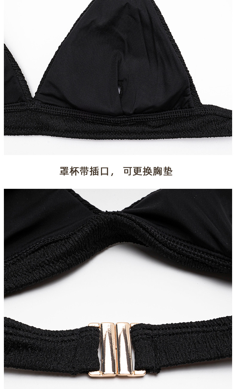 Black Wire-Free Small Bust Push-Up High-End Bikini Swimsuit, Feminine Three-Point Split Triangle Hot Spring Swimwear