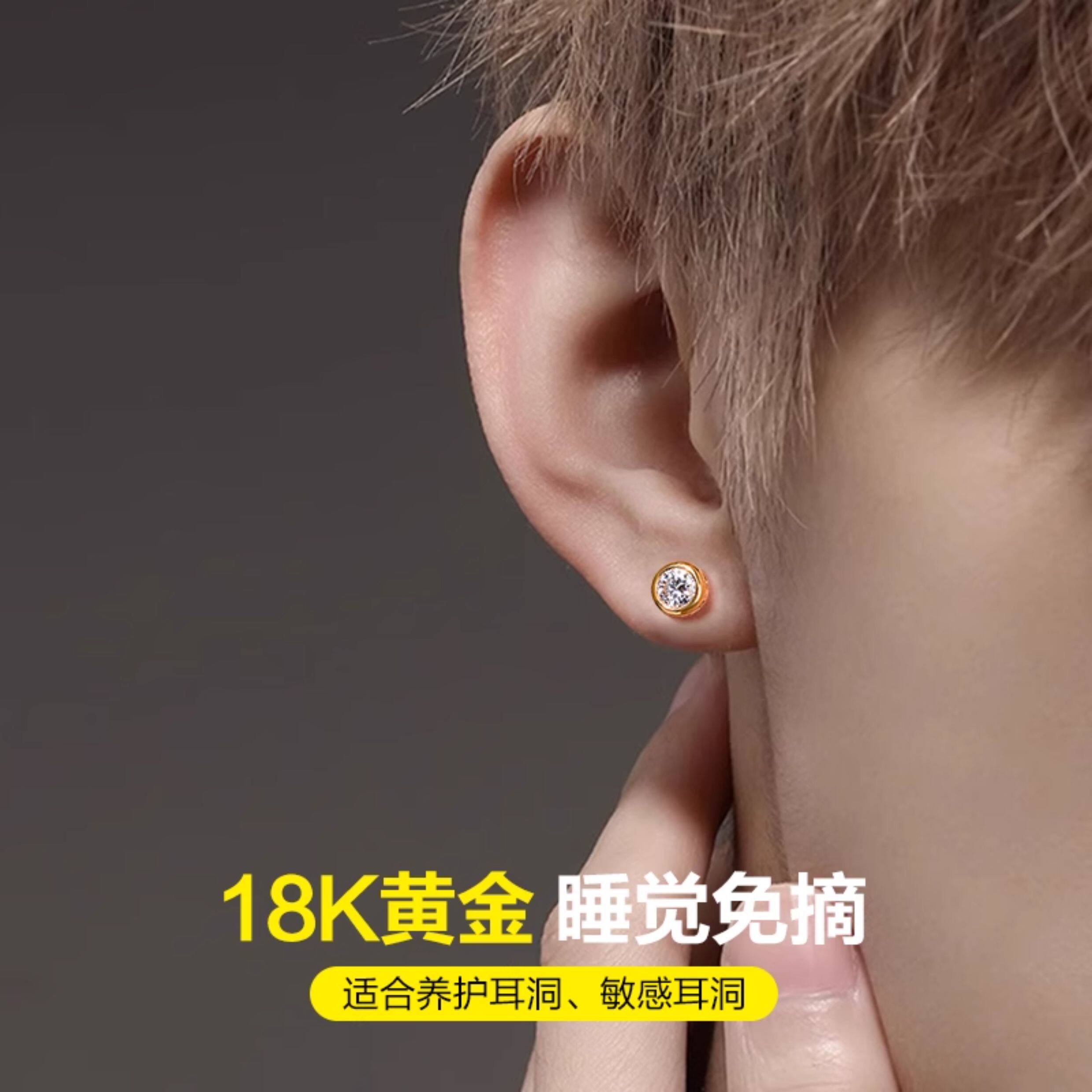 Gold 18K earrings, fashionable men's gold Au750 hard gold ear piercing diamond earrings, temperament earrings Valentine's Day gift