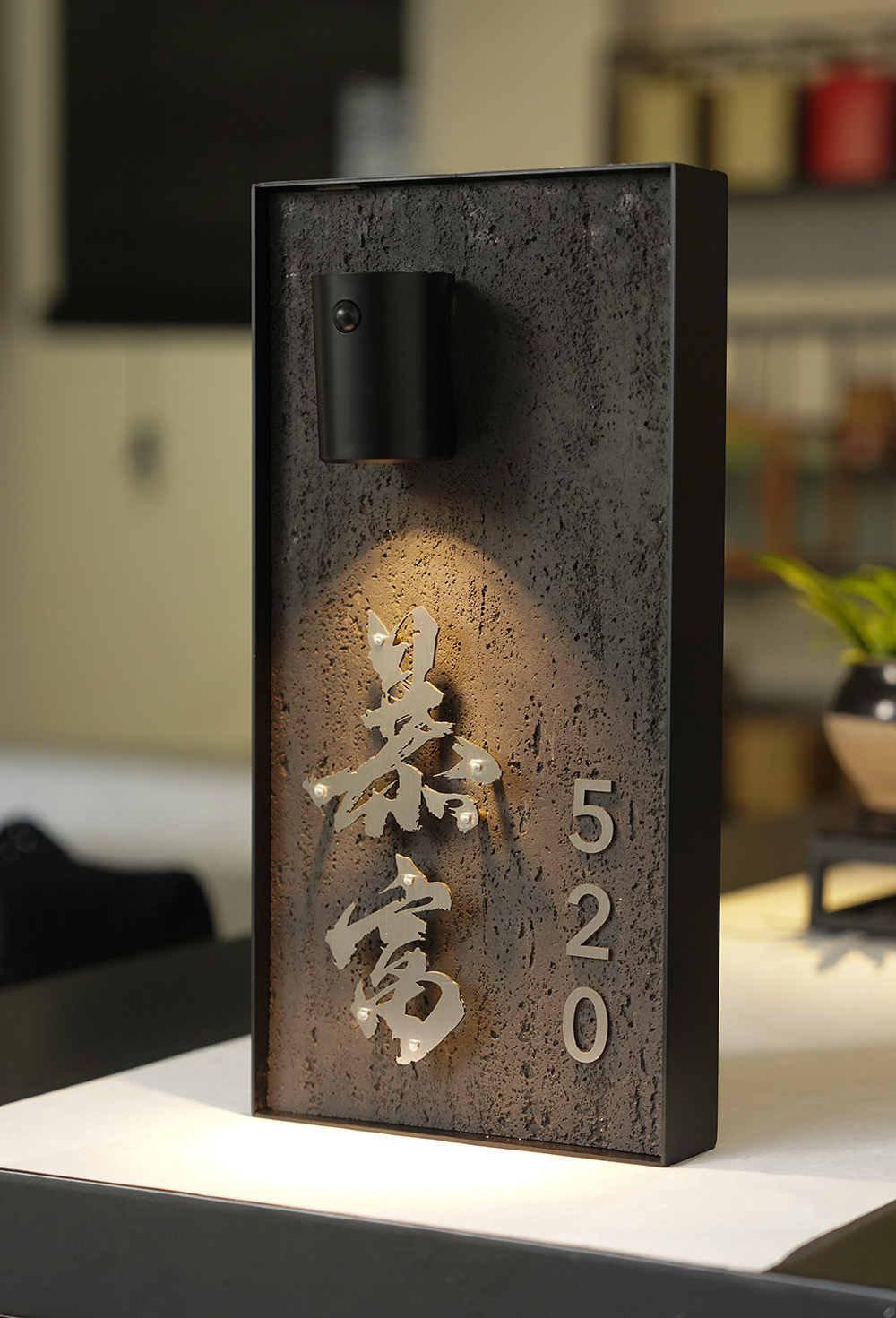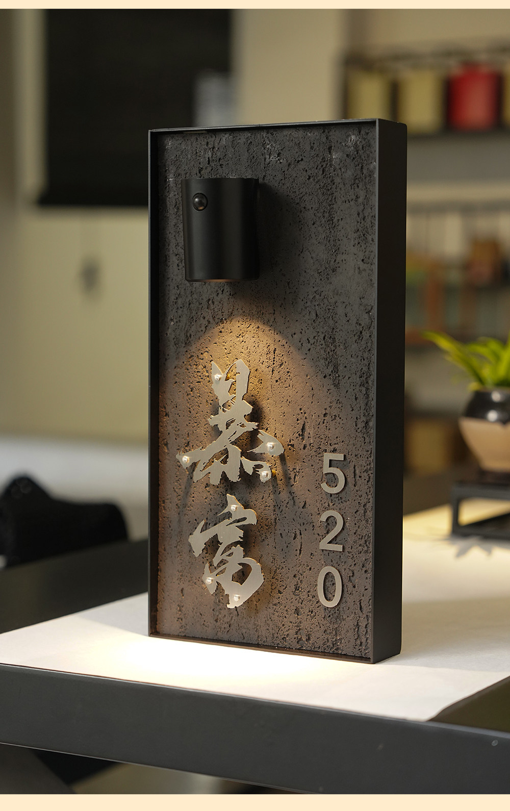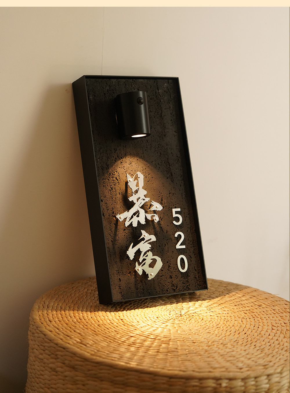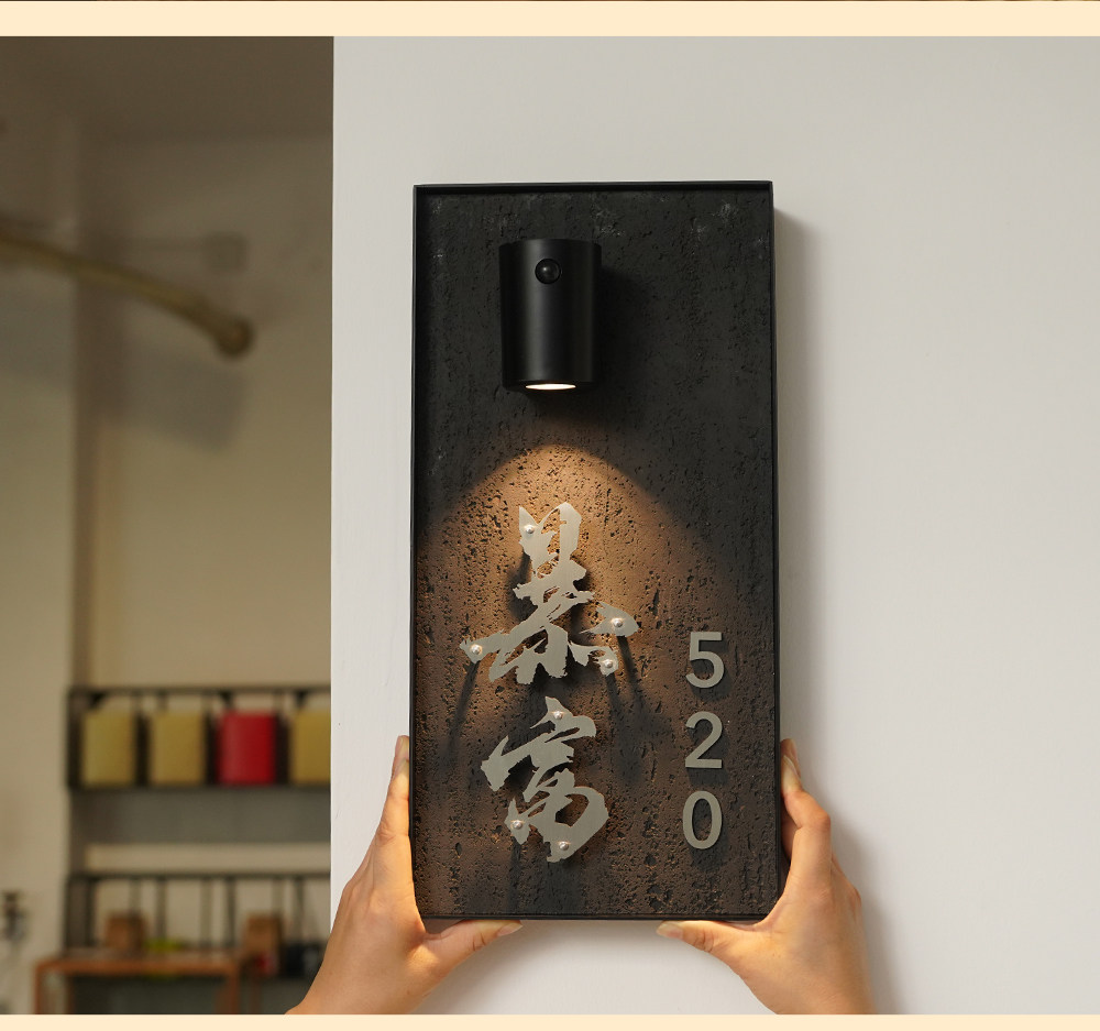 Charging induction light luminous house number creative cave stone slate floating word hotel box private room house number