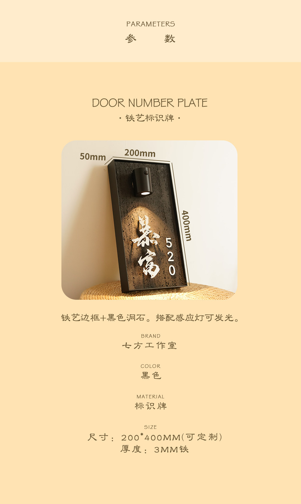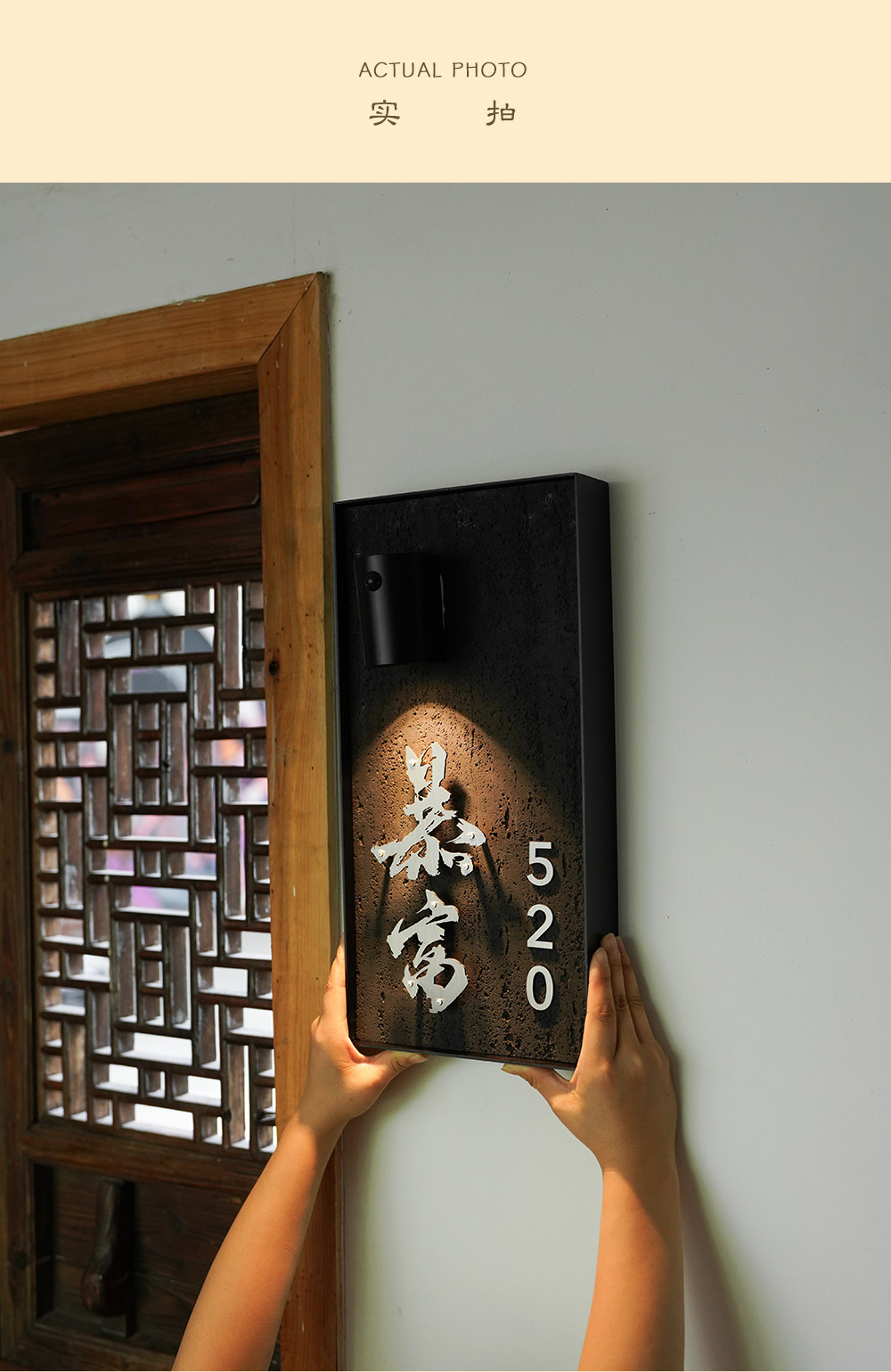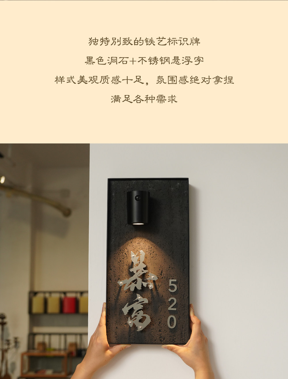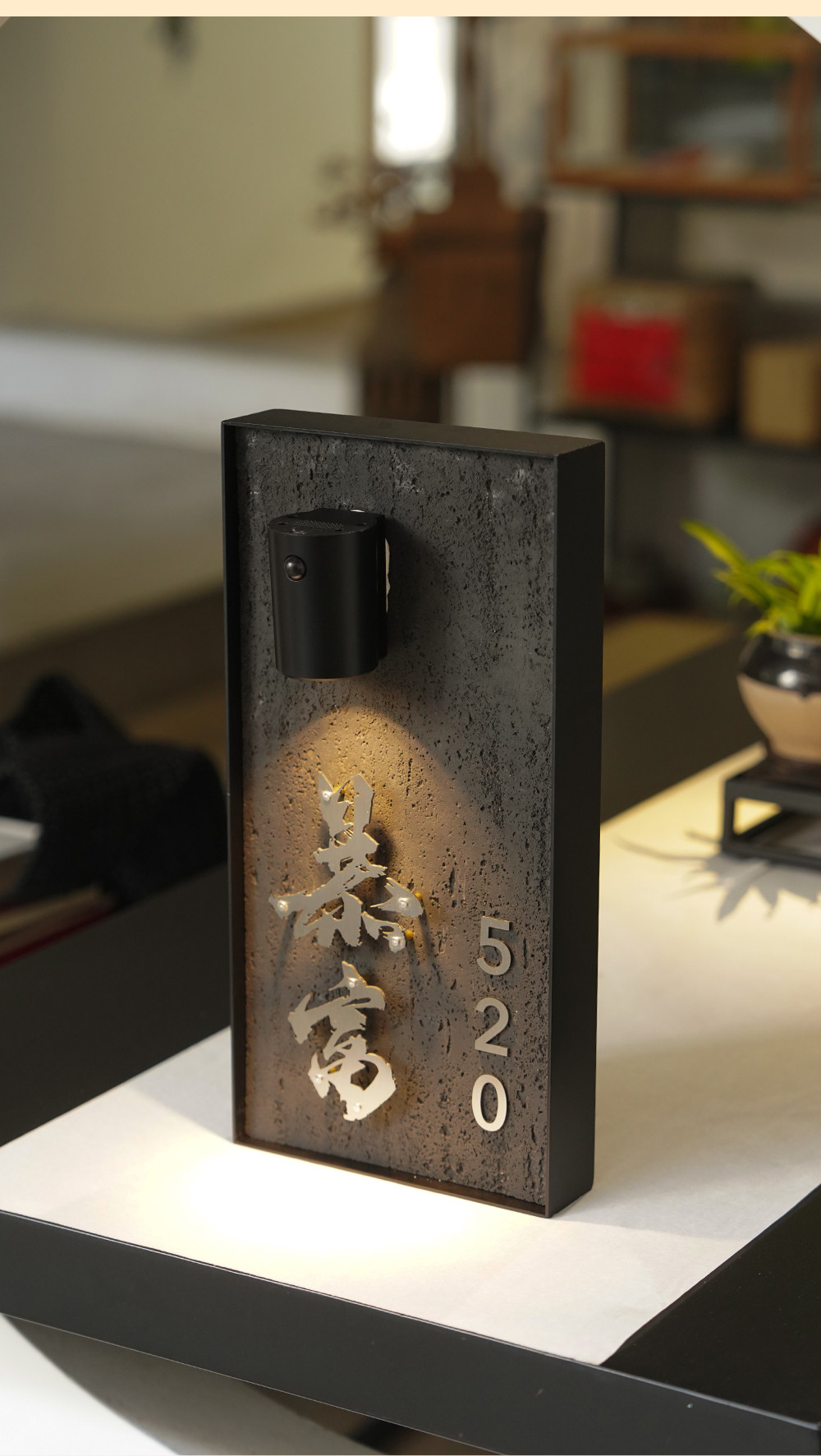 Charging induction light luminous house number creative cave stone slate floating word hotel box private room house number
