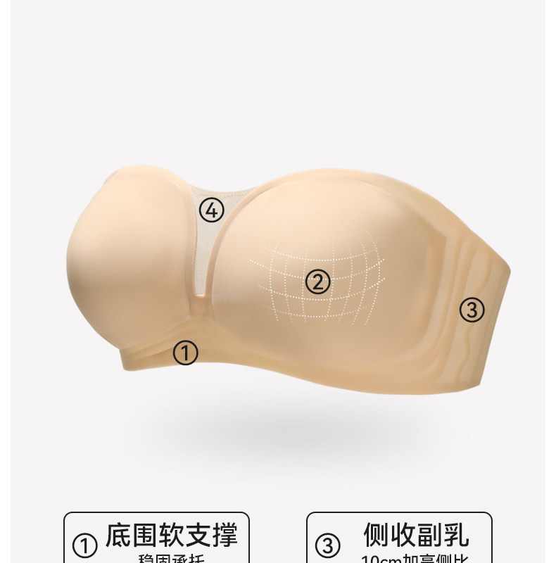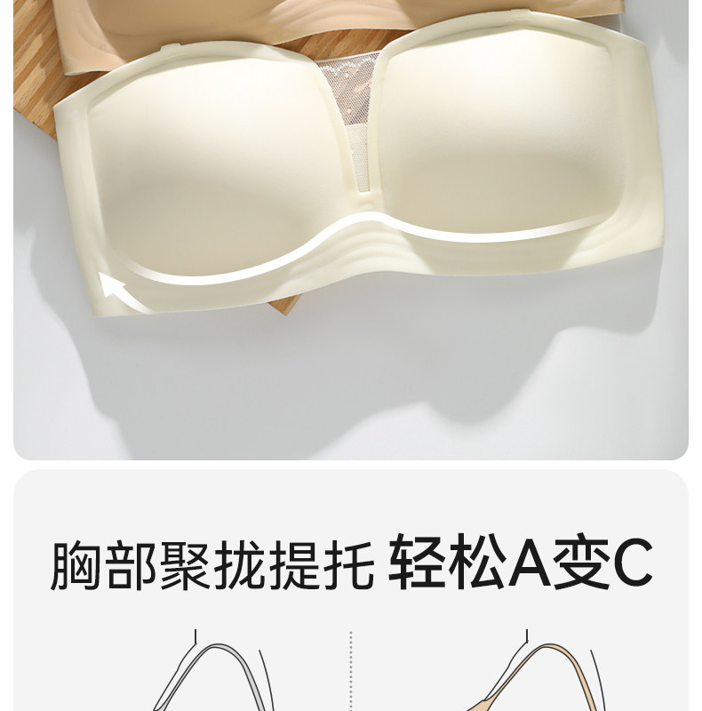 Strapless Bandeau Bra for Women, Anti-Bump, Strapless, Summer Thin, Seamless, Non-Slip, Push-Up, Anti-Exposure, Cool-Feeling Bra