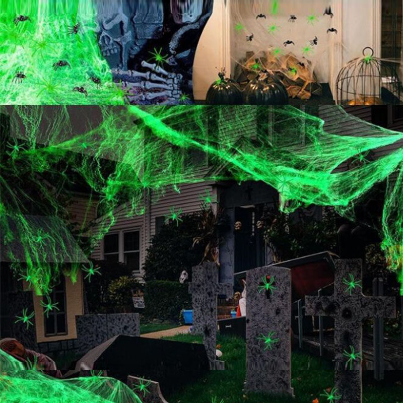 Halloween Decoration Colorful Spider Cotton Luminous Small Spider Props Spider Web Arrangement Haunted House Horror Scene Supplies