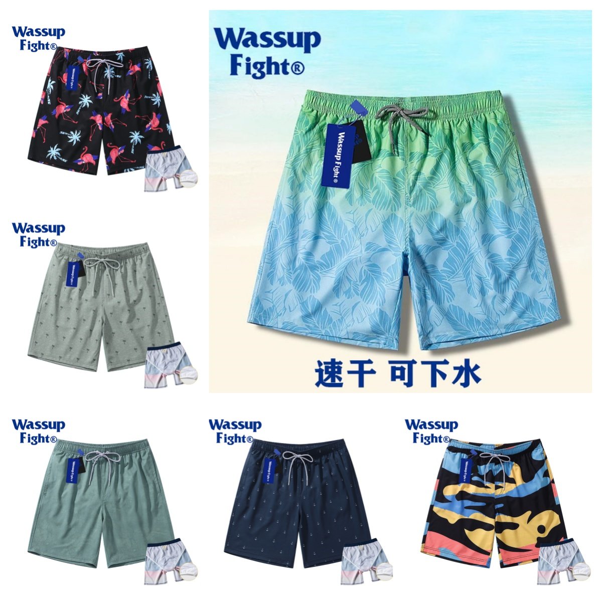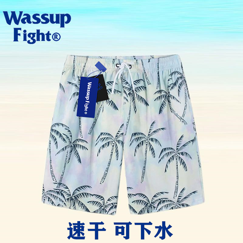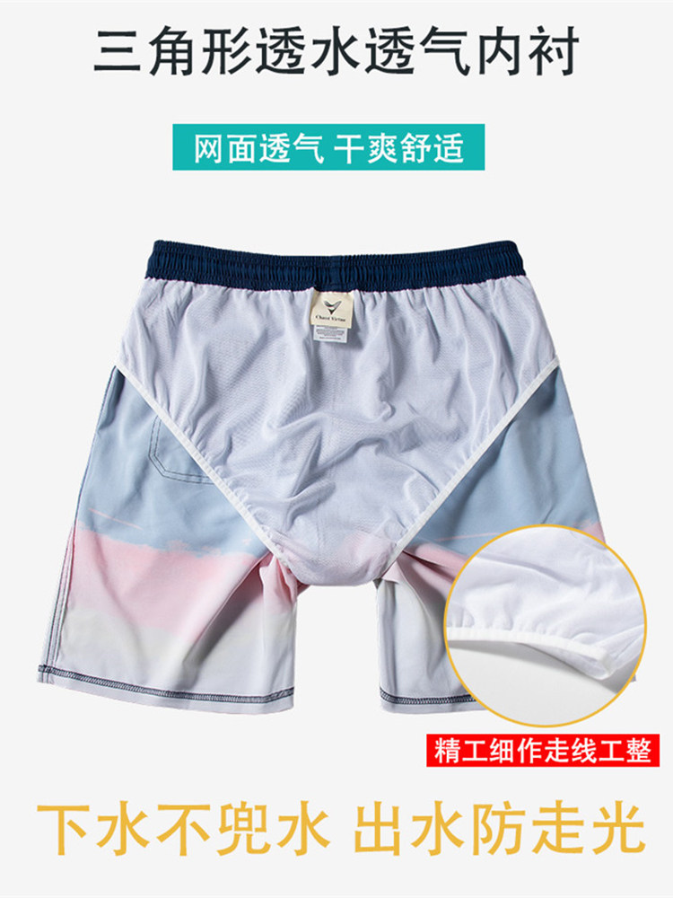 Quick-drying beach pants for men in the water, summer beach surfing pants, loose large size five-point shorts, seaside resort swimming trunks