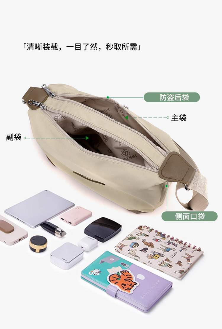 Large capacity lightweight oxford cloth commuter crossbody bag