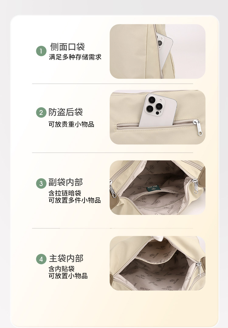 Internal structure Main bag,multi-layered,Zippered hidden bag,Mezzanine Zipper Bag,With inner pocket,Side bag